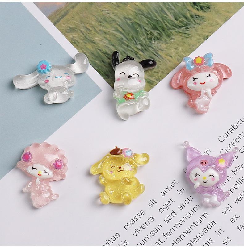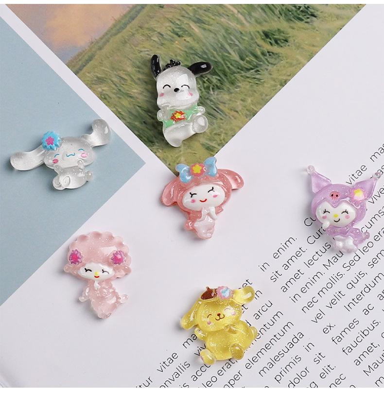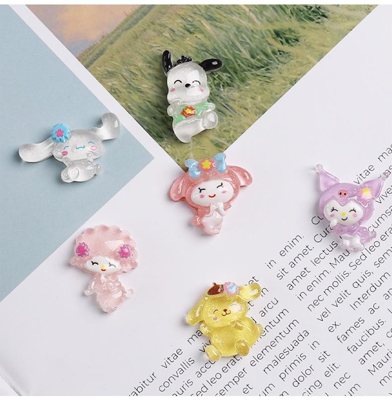Accesorios de resina de Sanrio con forma de cordero sonriente, transparente, fino y brillante, para hacer tú mismo, horquilla para el pelo, funda para teléfono móvil, parche
