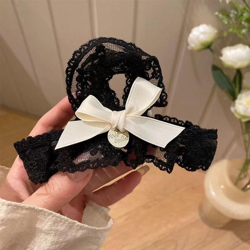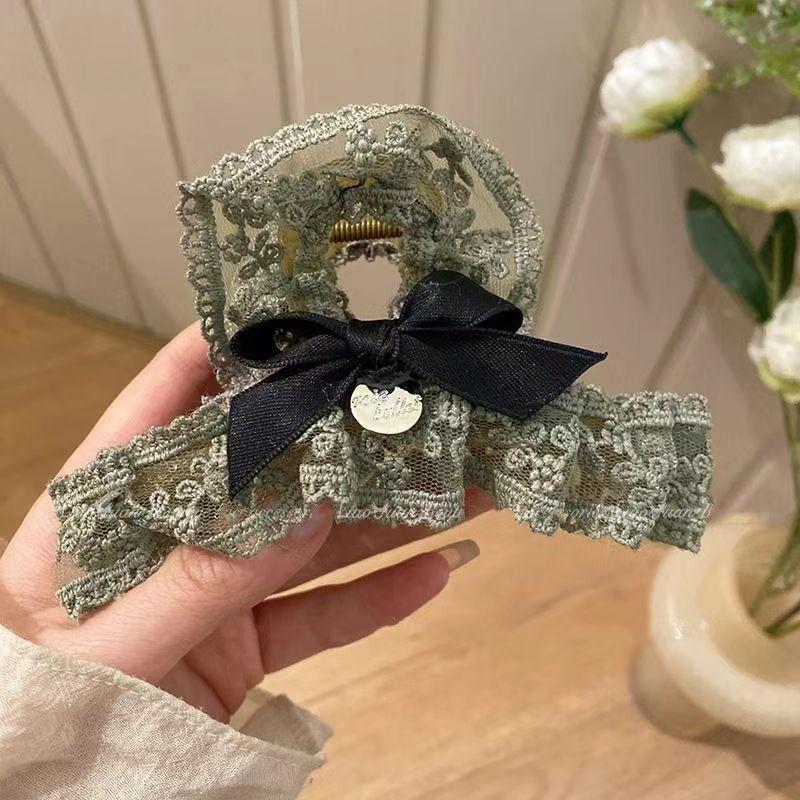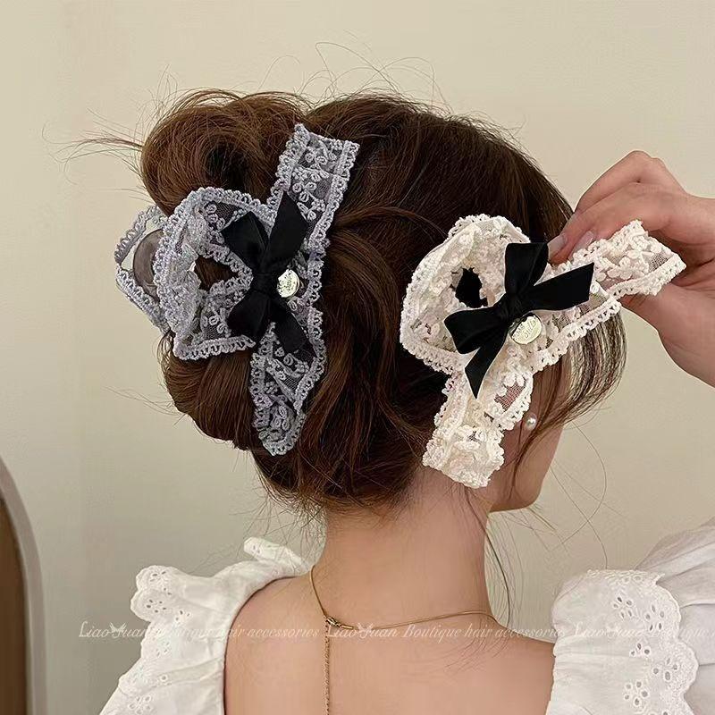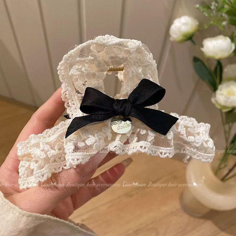 Horquilla con lazo de encaje, estilo coreano, accesorios para el cabello, tocados, novedad de 2024, para celebridades de Internet, horquilla de tela, clip de tiburón para la parte posterior de la cabeza.