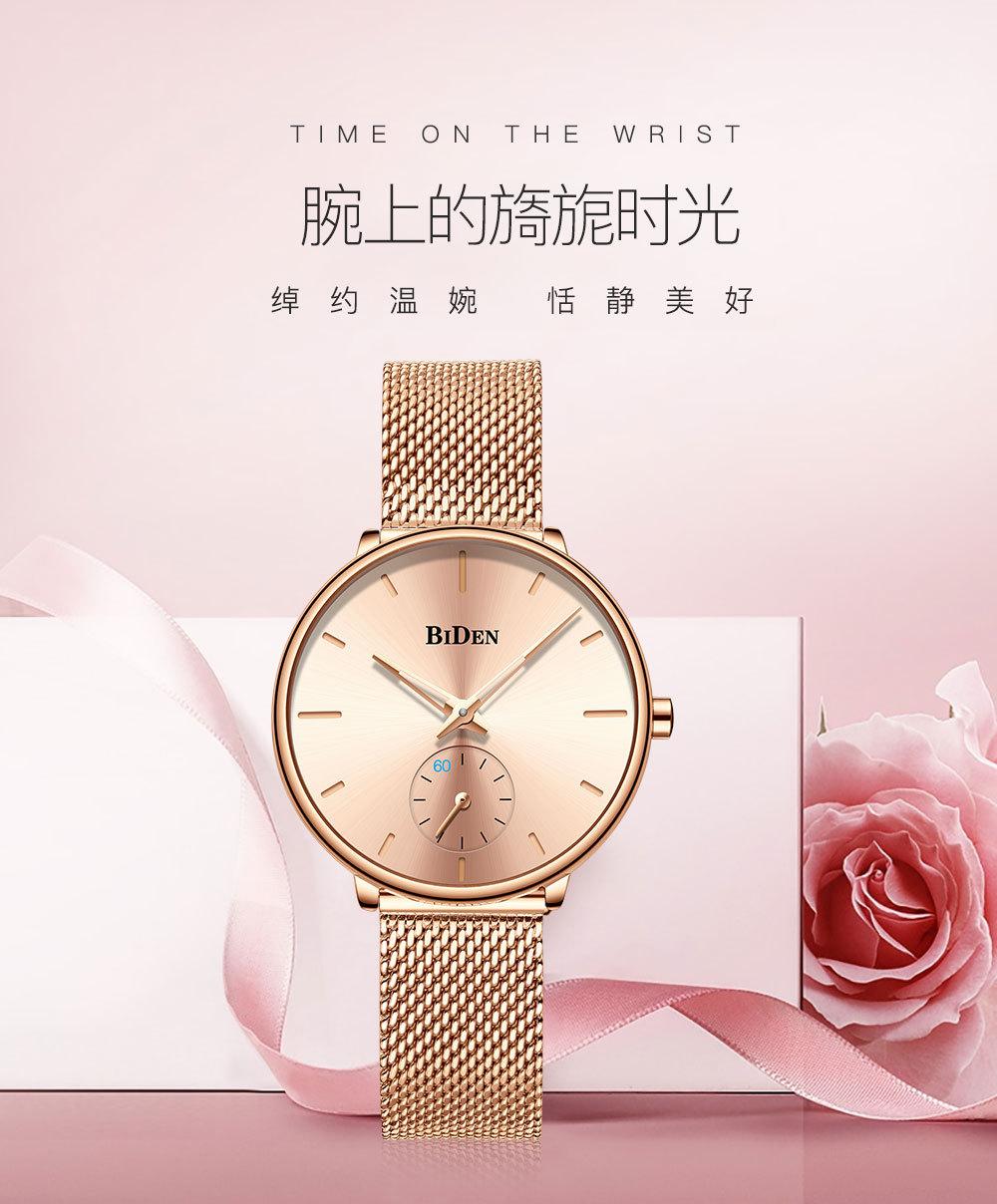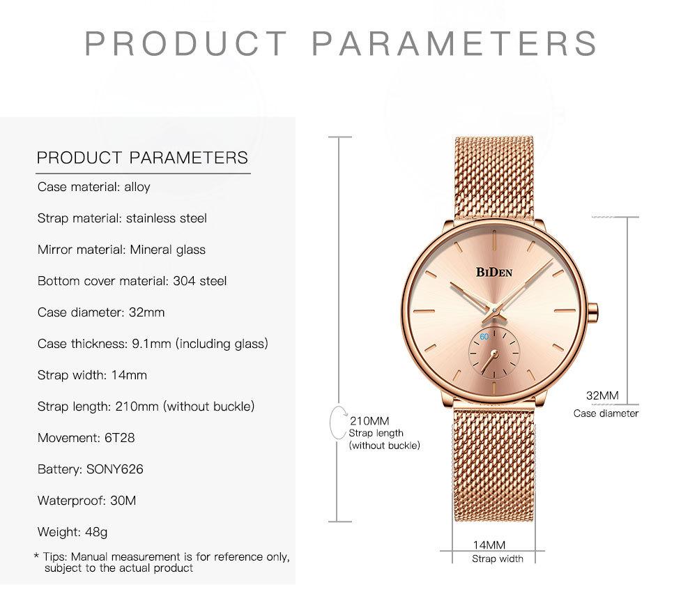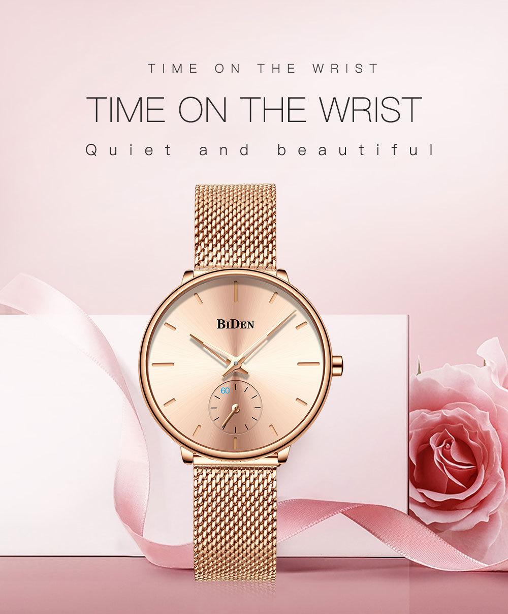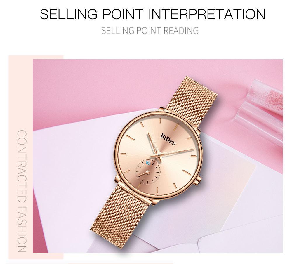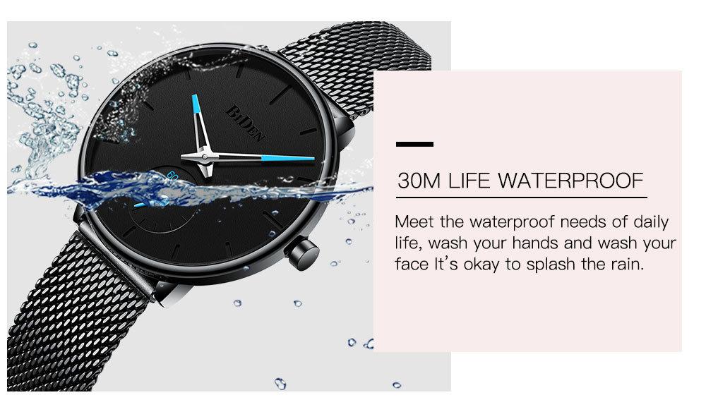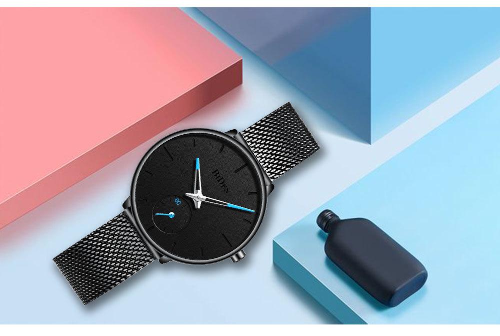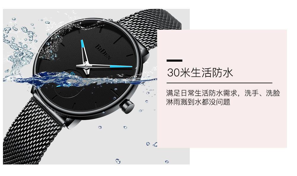 Reloj de Cuarzo para Hombre Biden con Correa de Malla de Acero Inoxidable, Calendario Simple, Resistente al Agua, Venta al por Mayor, Reloj de Pulsera