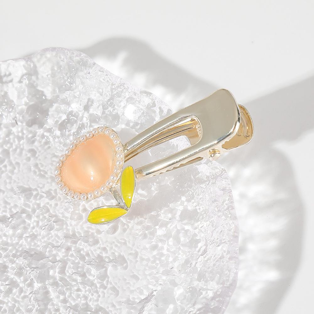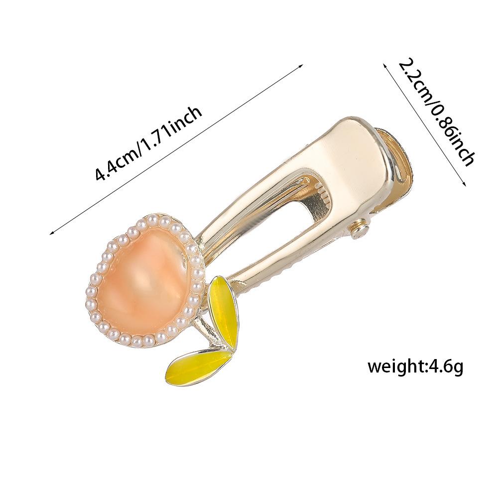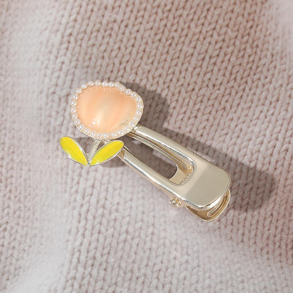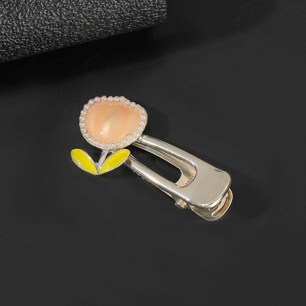 Nueva y linda horquilla con forma de flor de tulipán, estilo niña, con flequillo de perla, exquisita y pequeña pinza para el cabello rota.