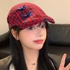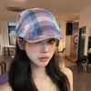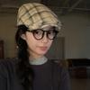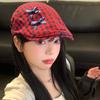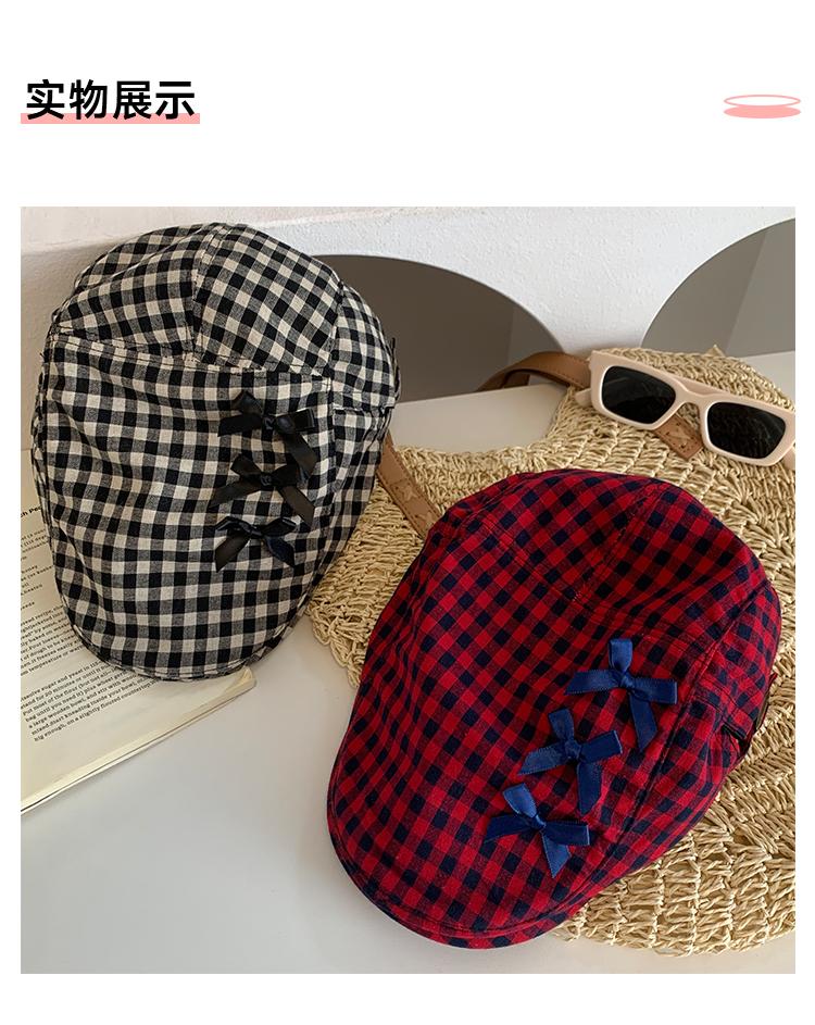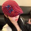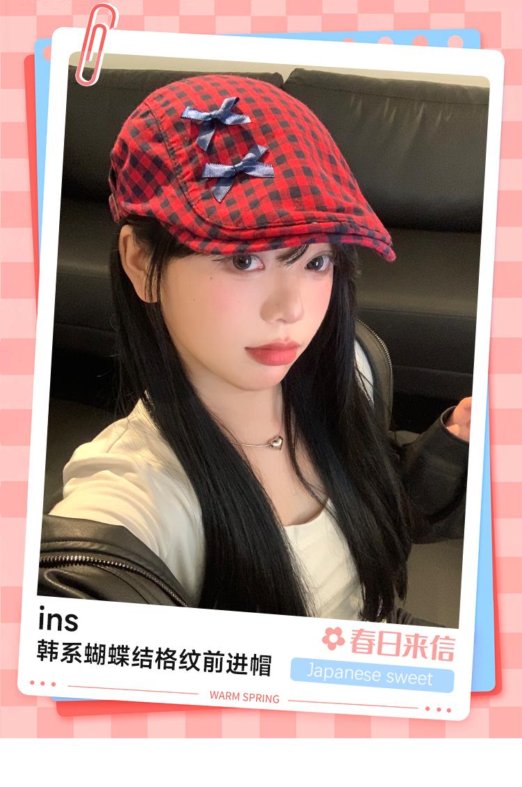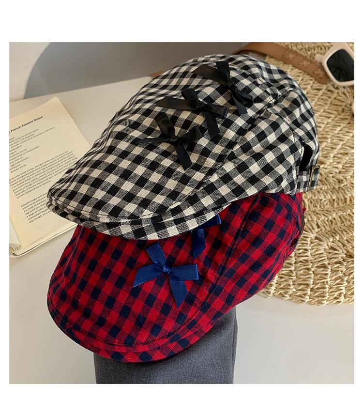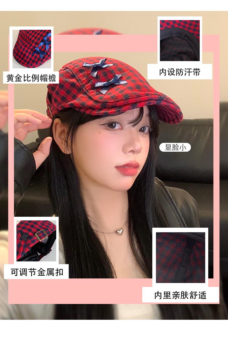 Sombrero de cuadros rojos con lazo hacia adelante para mujer, estilo coreano, boina pequeña que deja ver el rostro, sombrero retro combinable de nicho, moderno