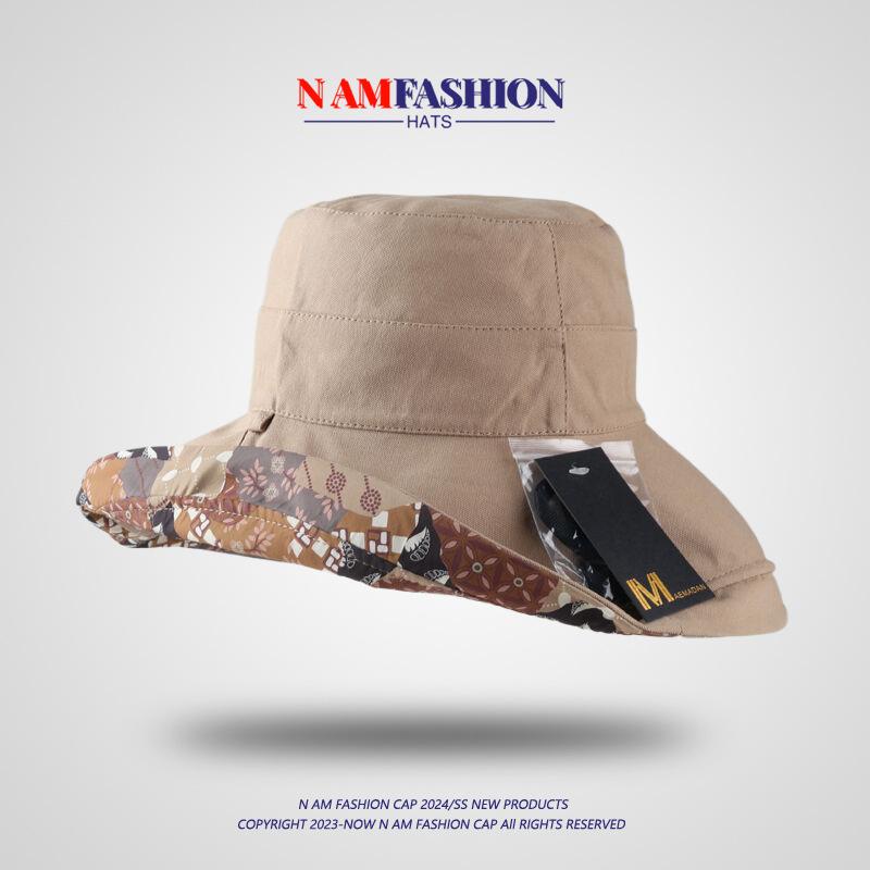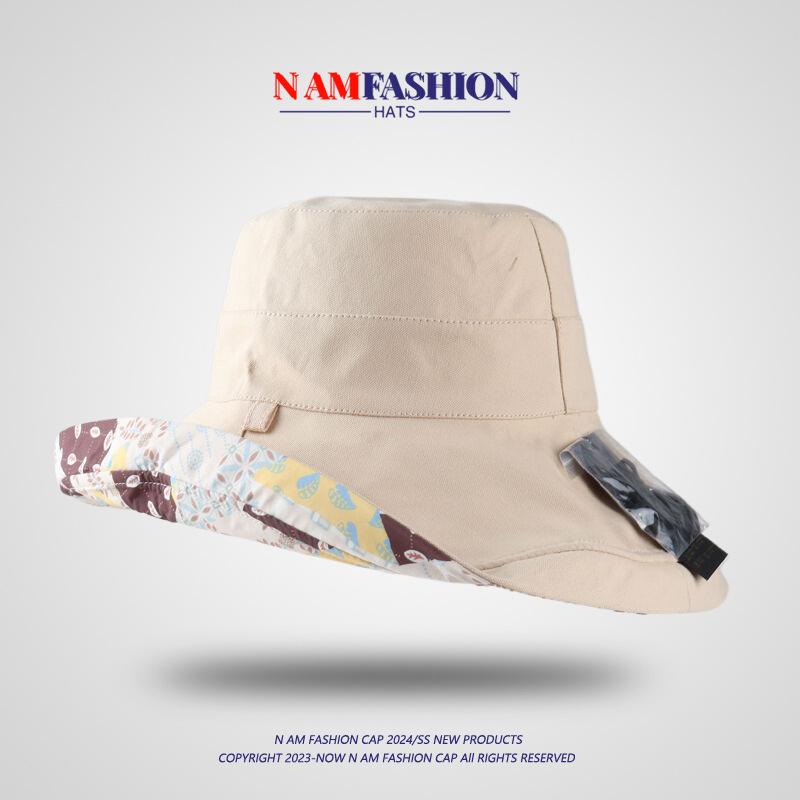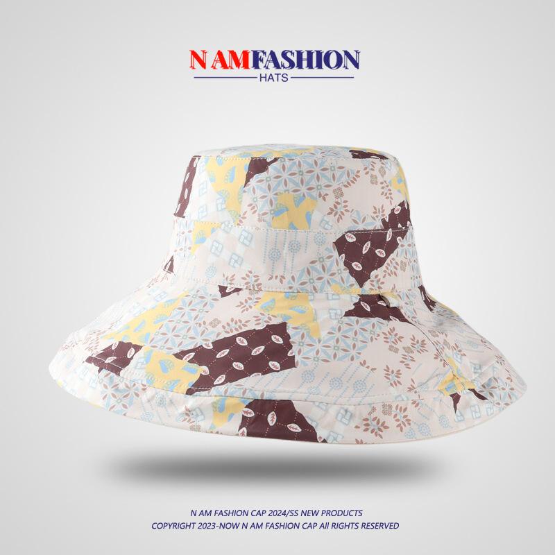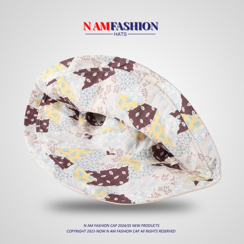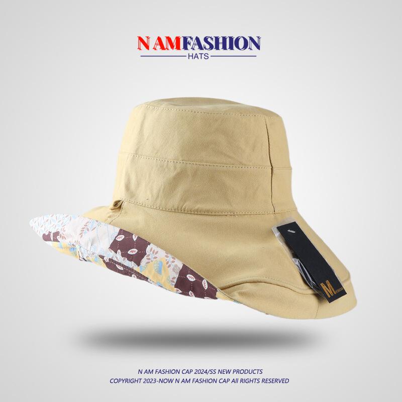 Large eaves double-sided pattern fisherman hat beige, Large eaves double-sided pattern fisherman hat yellow, L...