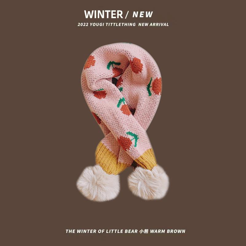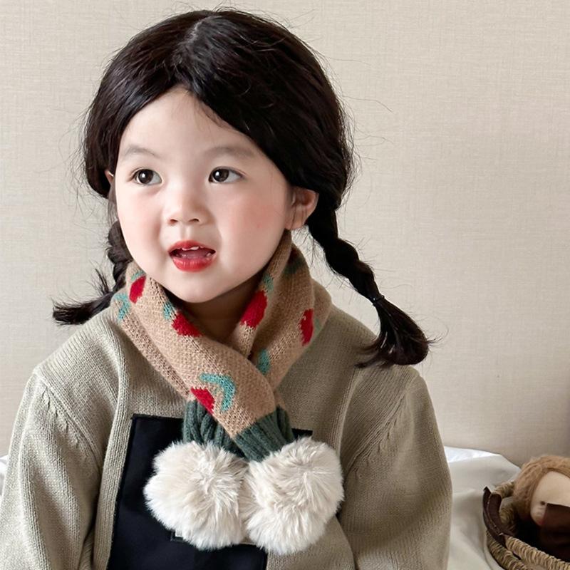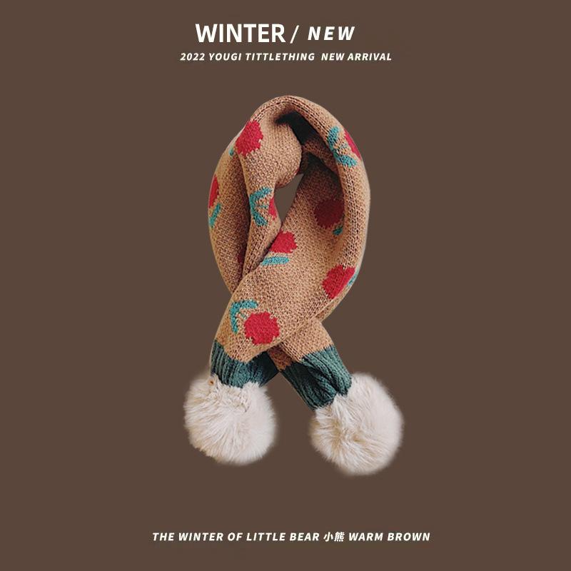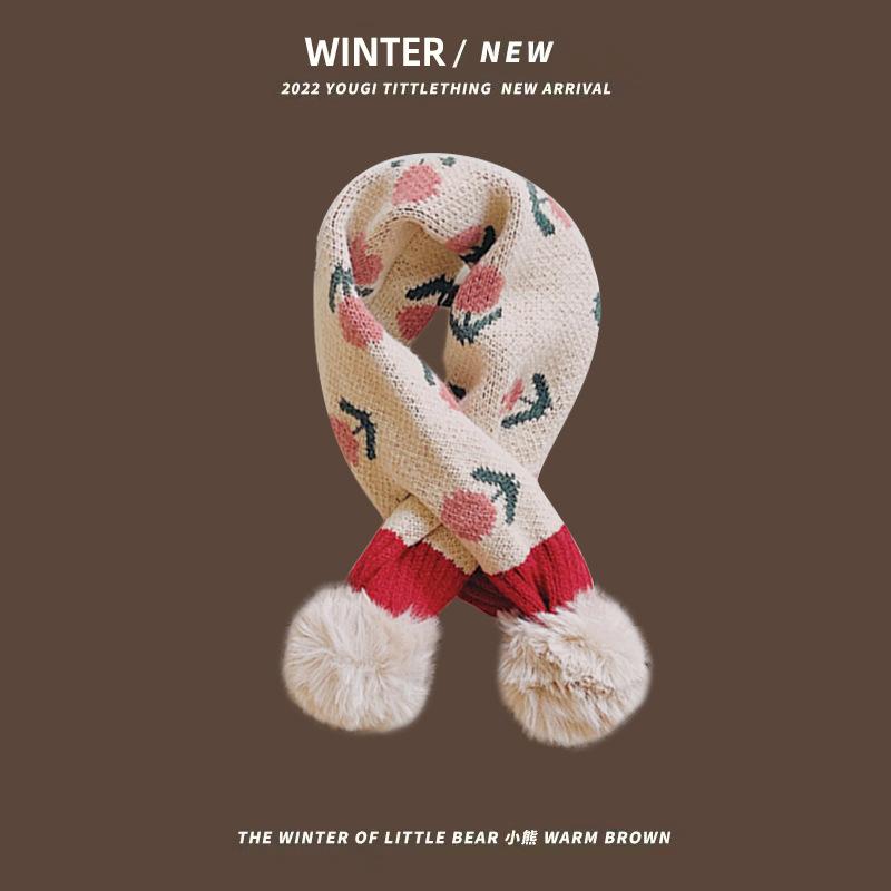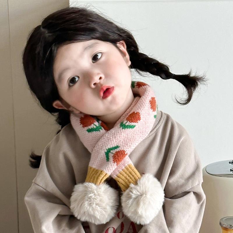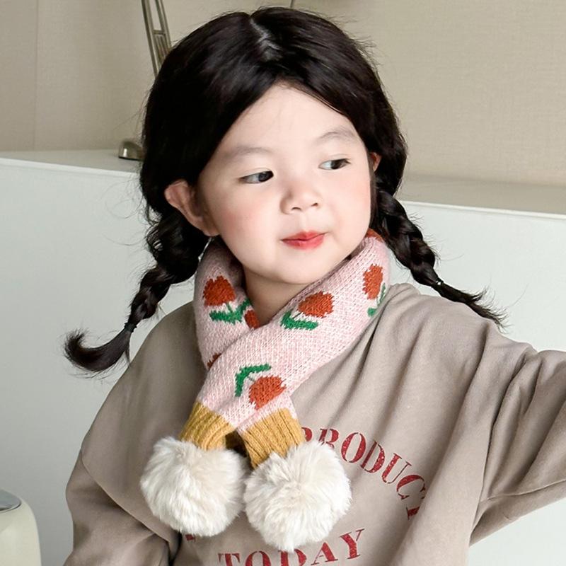 Bufanda infantil de estilo coreano para otoño e invierno, nueva y bonita bufanda tejida con flores pequeñas y cálida para bebés, con cuello cruzado y mangas para niños y niñas.