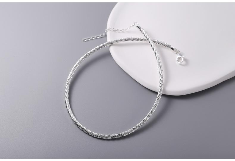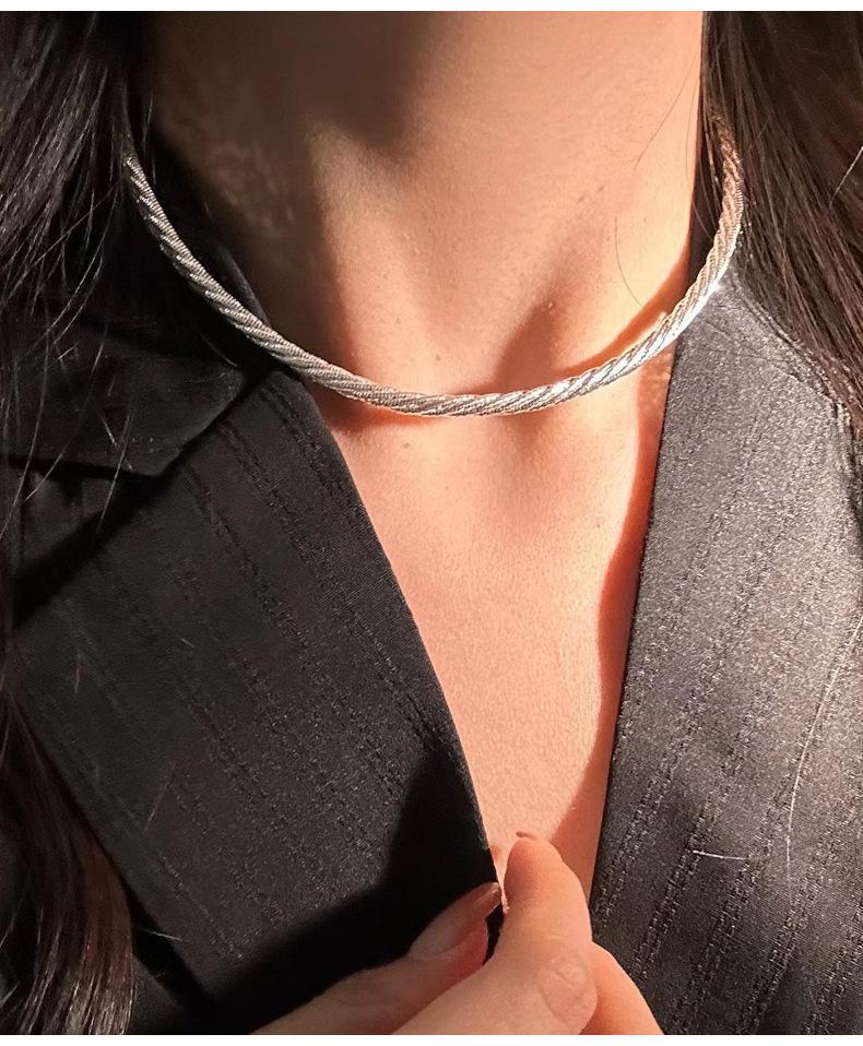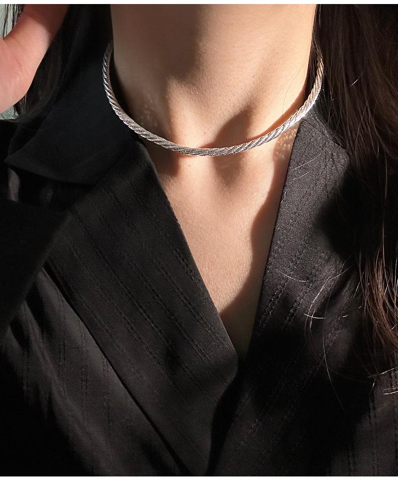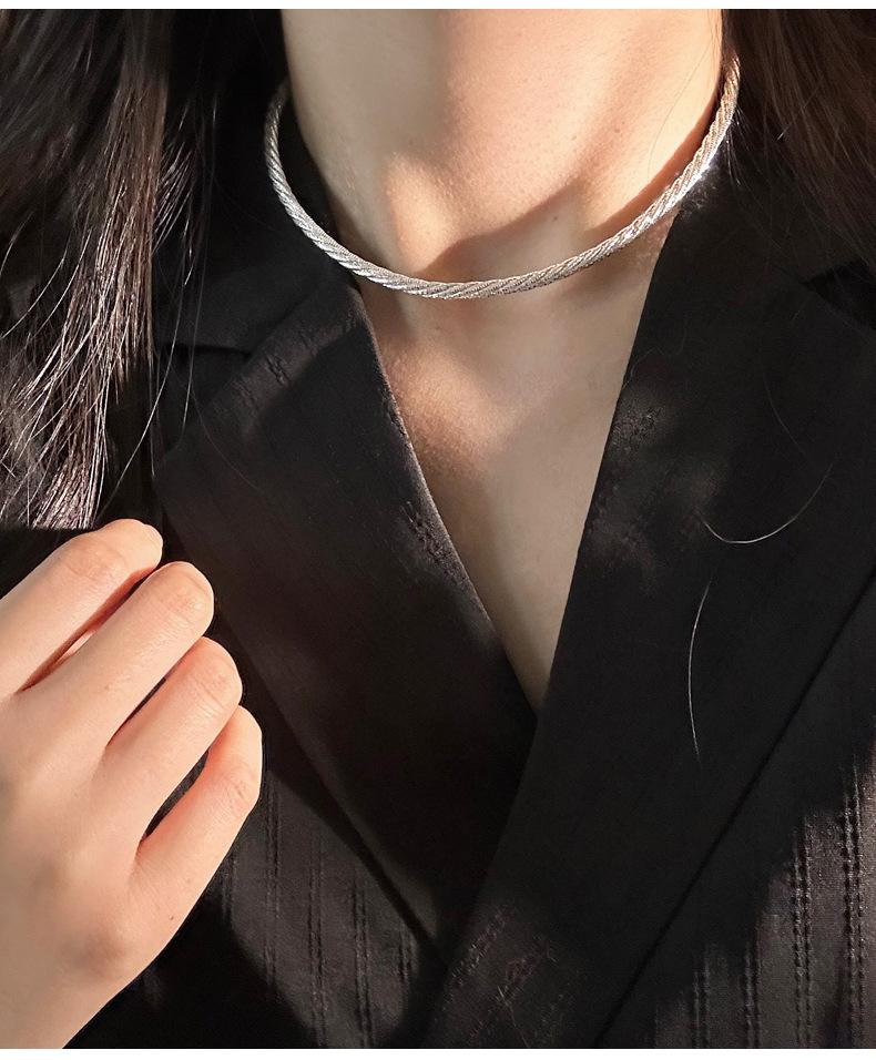 Collar de cuerda trenzada de plata de ley 925, importado de Italia, para mujer, corto, resistente, moderno, cadena de clavícula pequeña y fresca N0917