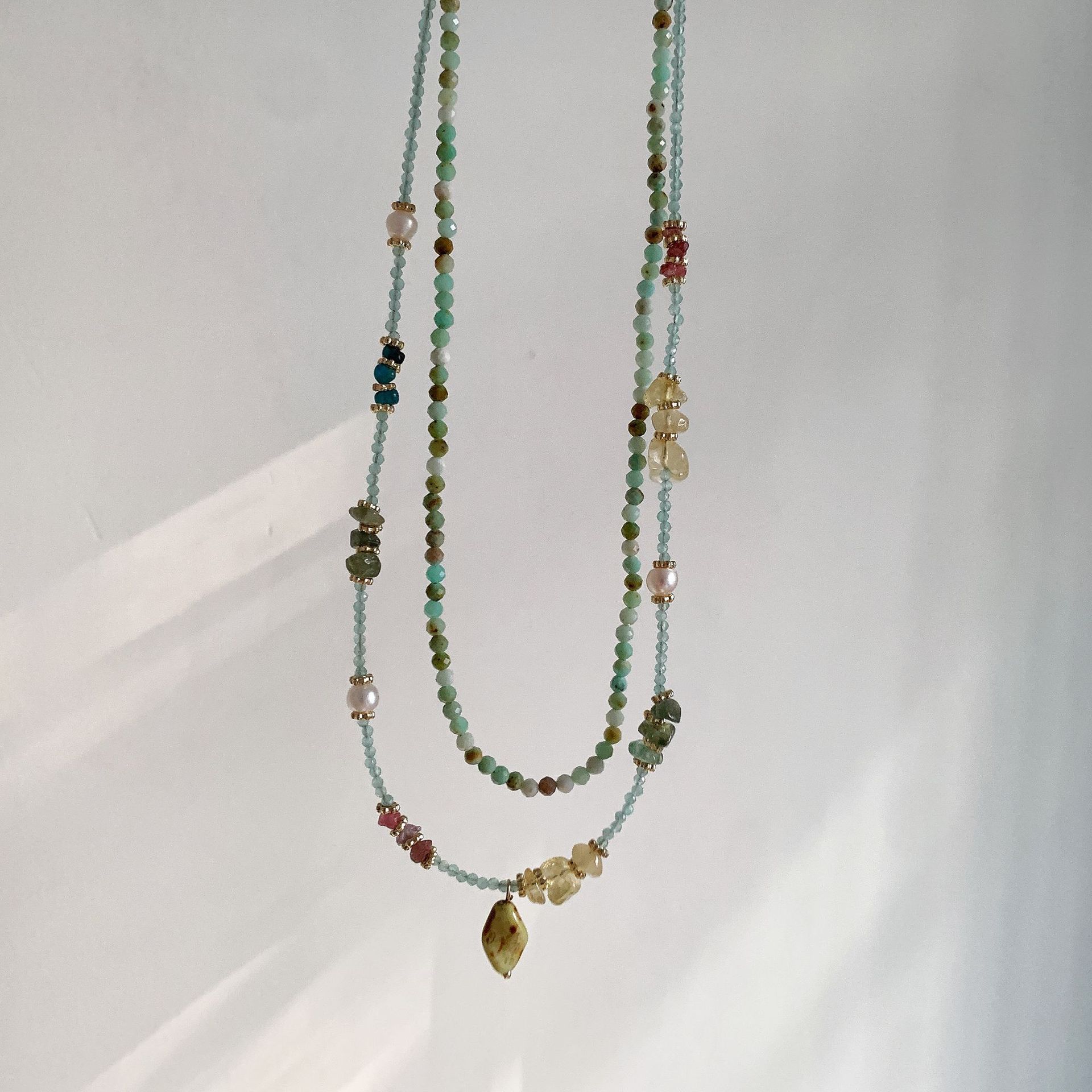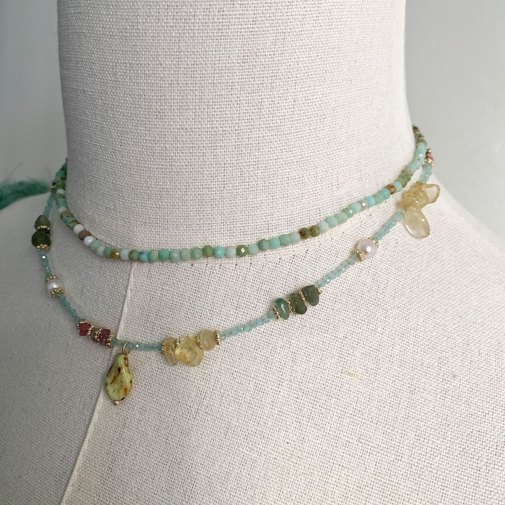 Collar de cuentas superpuestas de piedra natural de verano, accesorios de collar de grado gargantilla, cadena de clavícula de nicho de lujo ligero para mujer