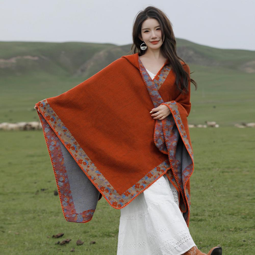 • Nuevo chal dividido cálido de moda de estilo étnico europeo y americano de otoño e invierno, capa de cachemira de imitación, bufanda floral, chal femenino