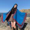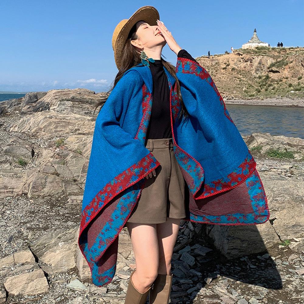 Suéter de color sólido, estilo étnico, capa gruesa y cálida, chal para habitación con aire acondicionado, foto de pastizales y desierto, con bufanda.
