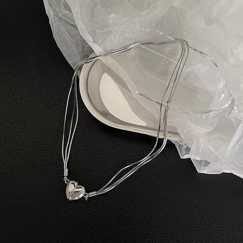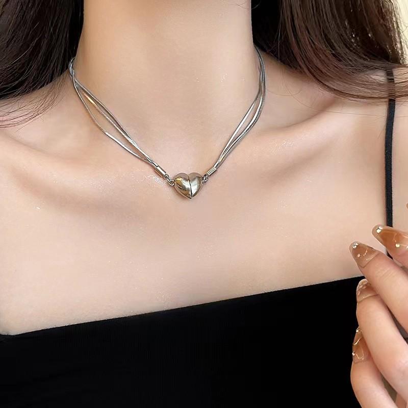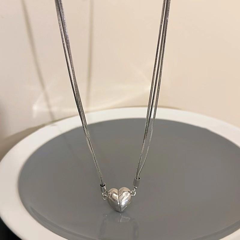 Collar con colgante de amor magnético de doble capa para mujer, sencillo, elegante, ligero, de lujo, de alta gama, cadena de collar con nicho que combina con todo.