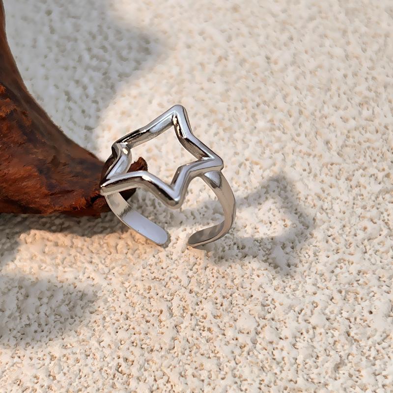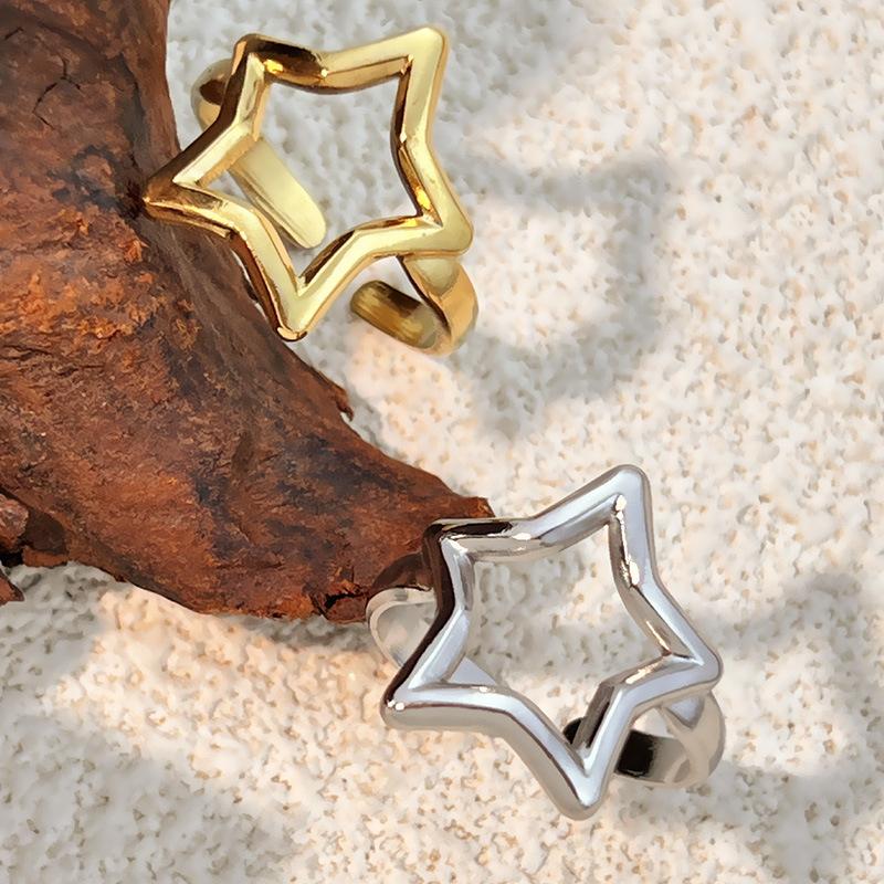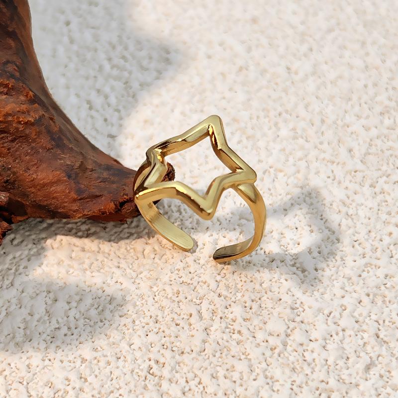 Anillo de Estrella Hueca de Personalidad de Estilo Cool Dorado Ins Estilo Simple Japonés y Coreano Anillo Libre de Color de Acero de Titanio Accesorios de Joyería