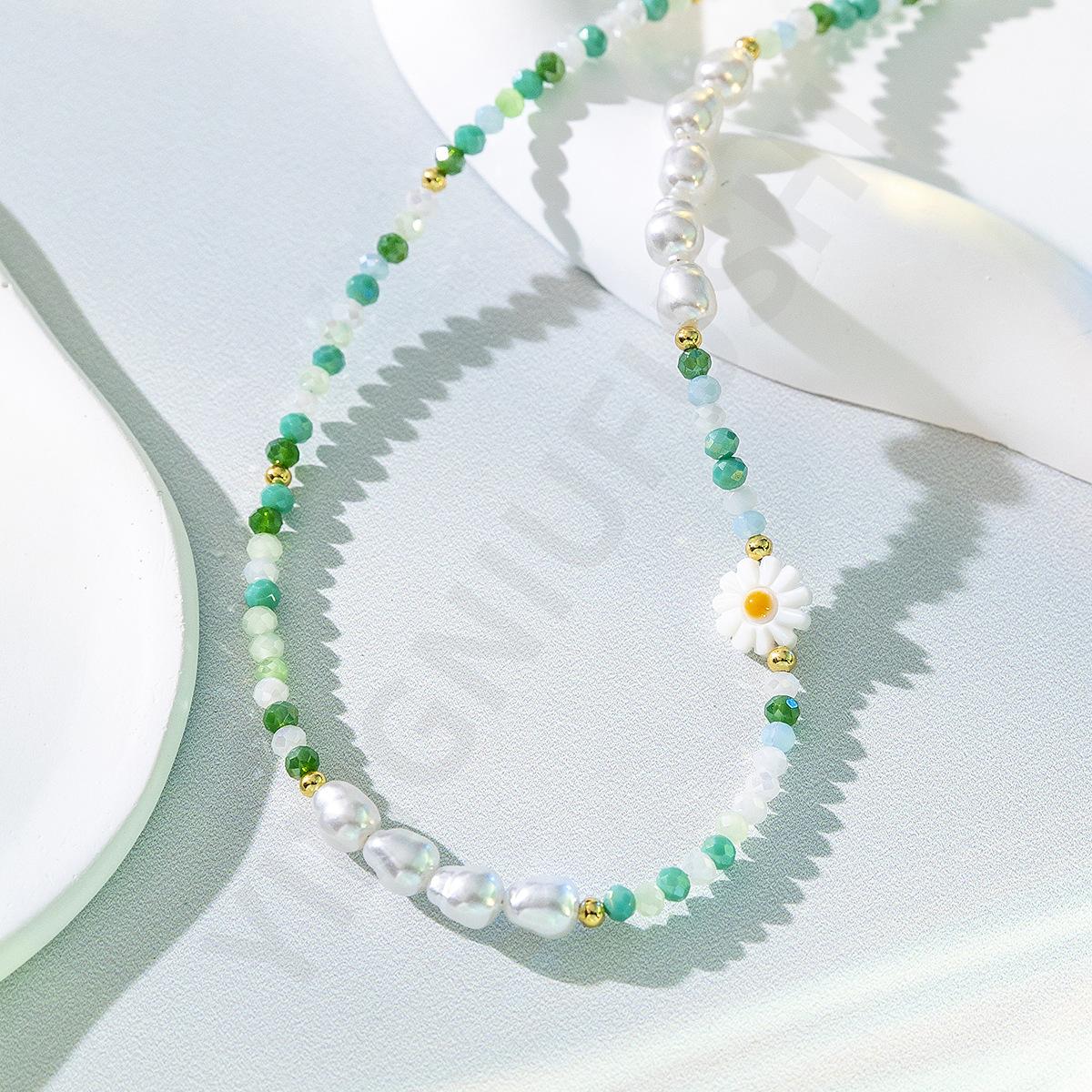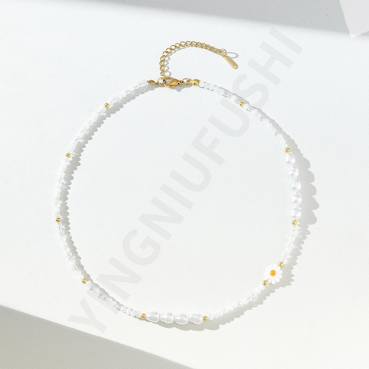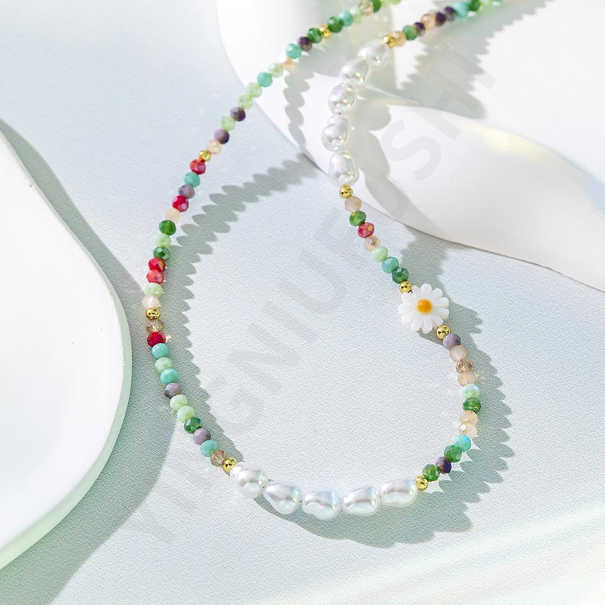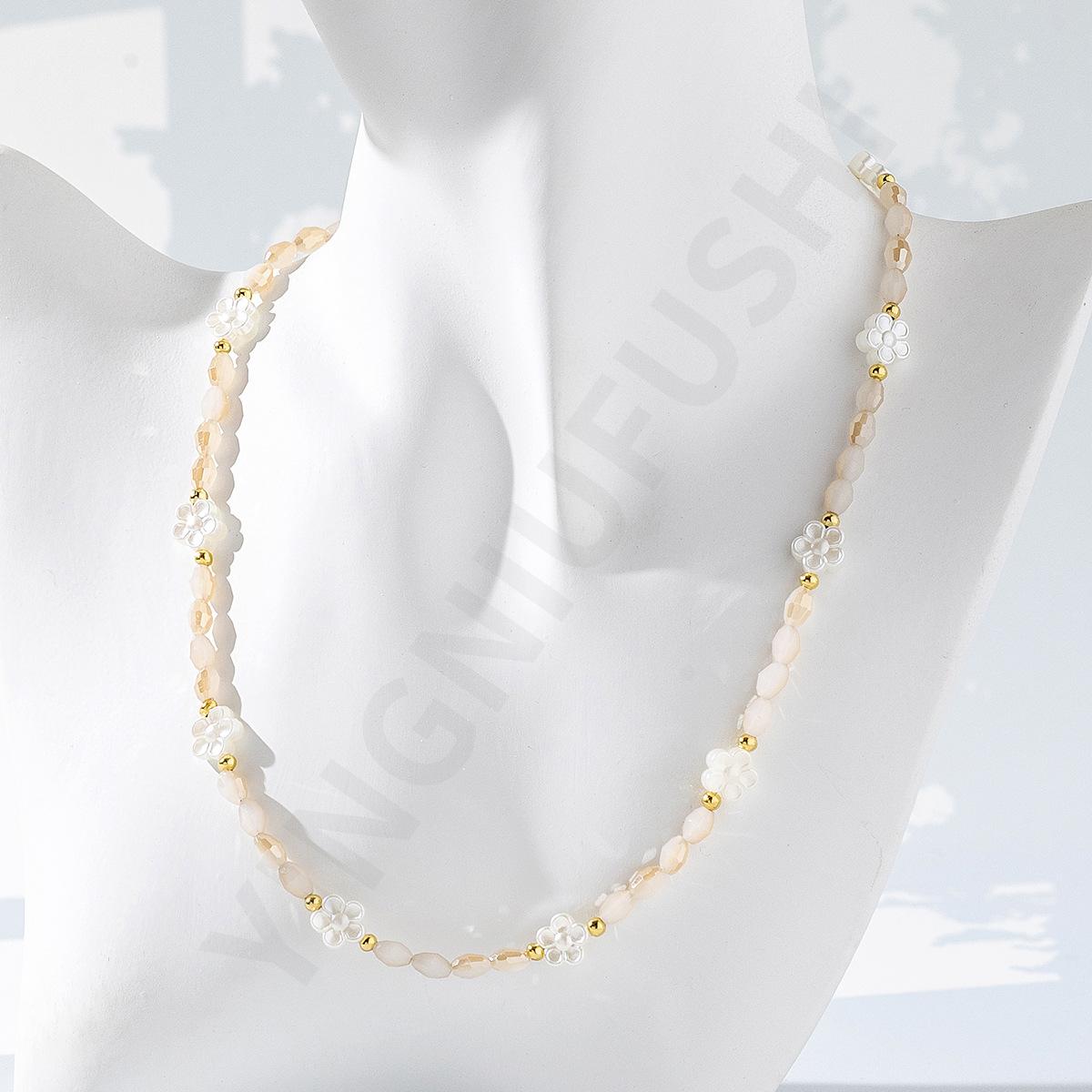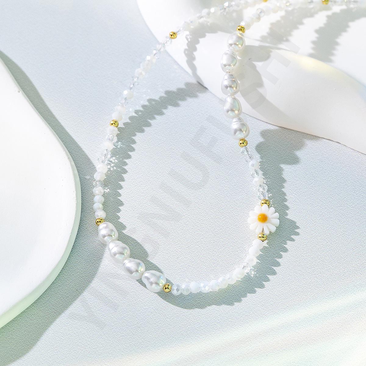 Collar de perlas de color dopamina con diseño de flor, estilo veraniego, cadena de clavícula ligera y de lujo, elegante, para mujer, 2023