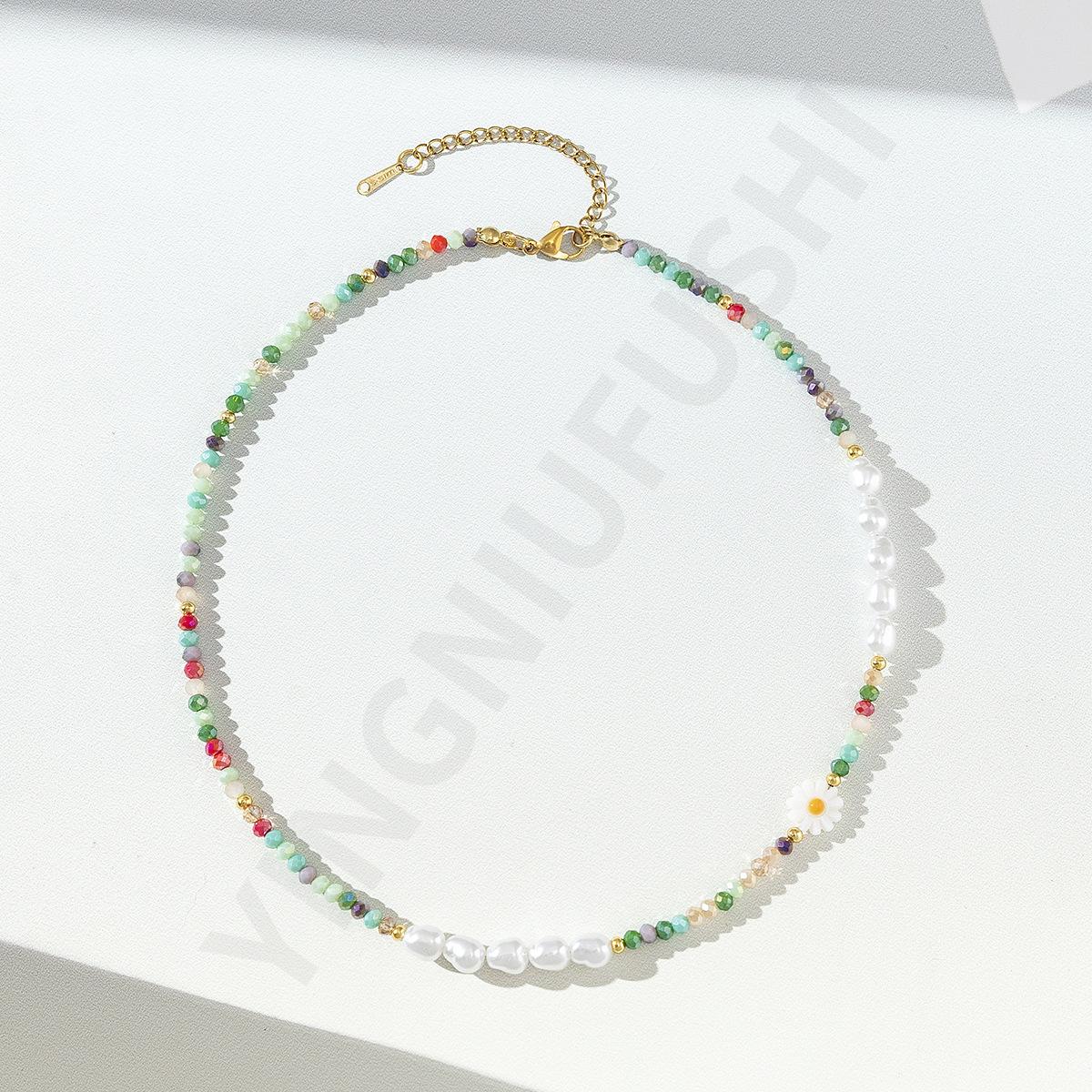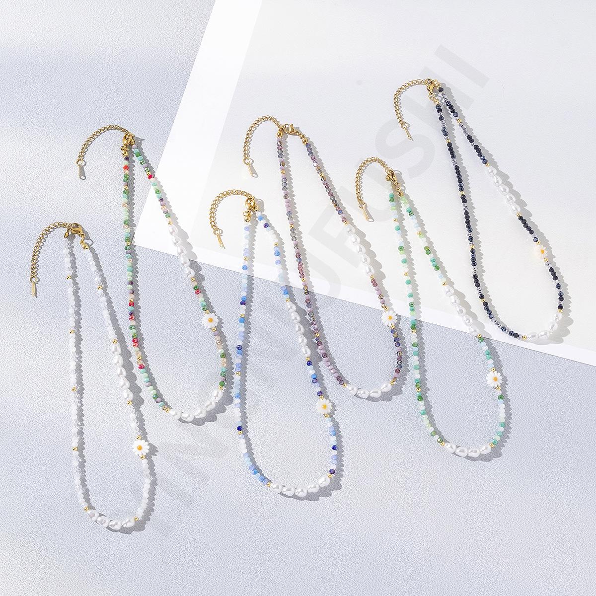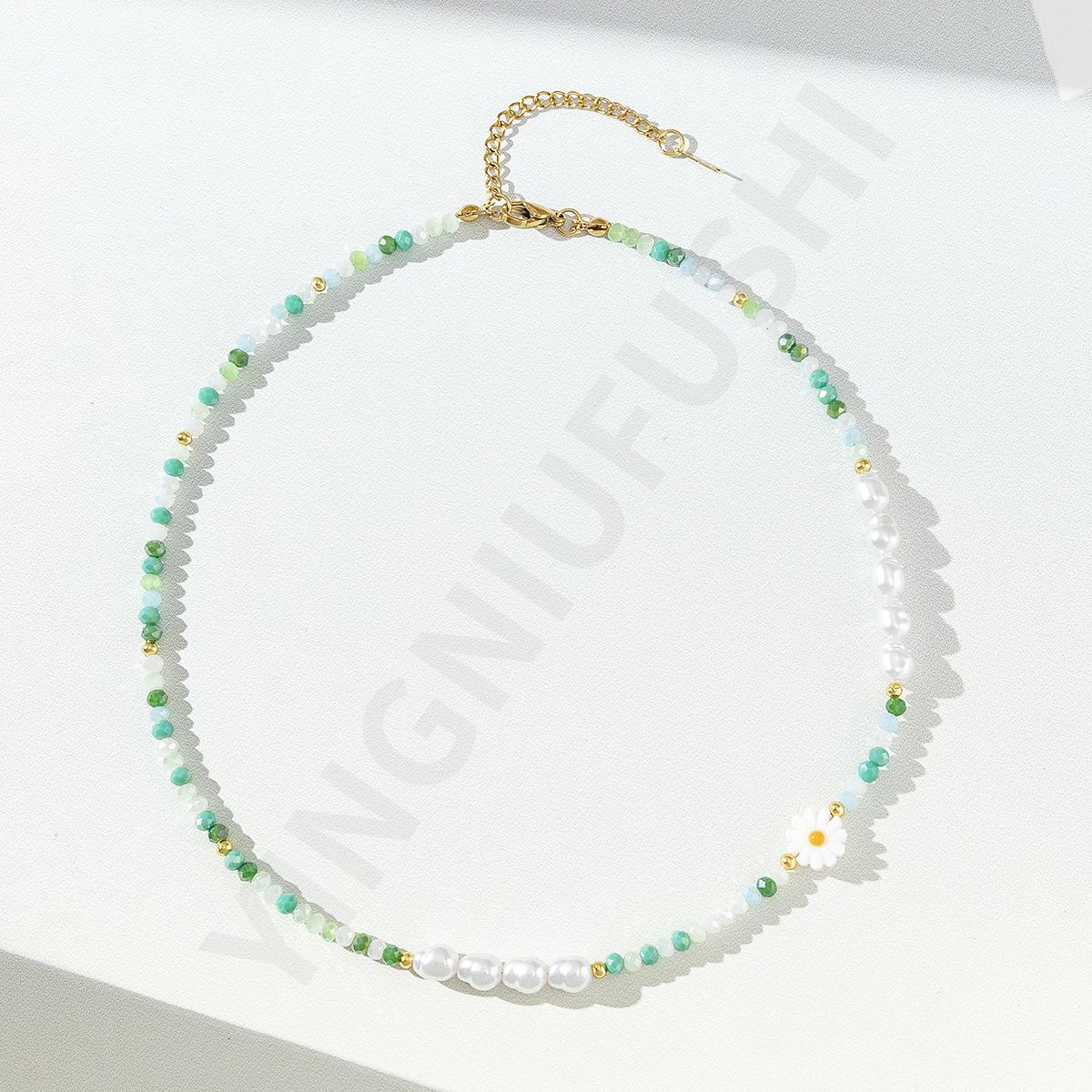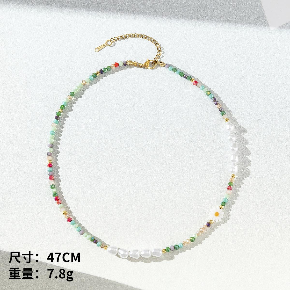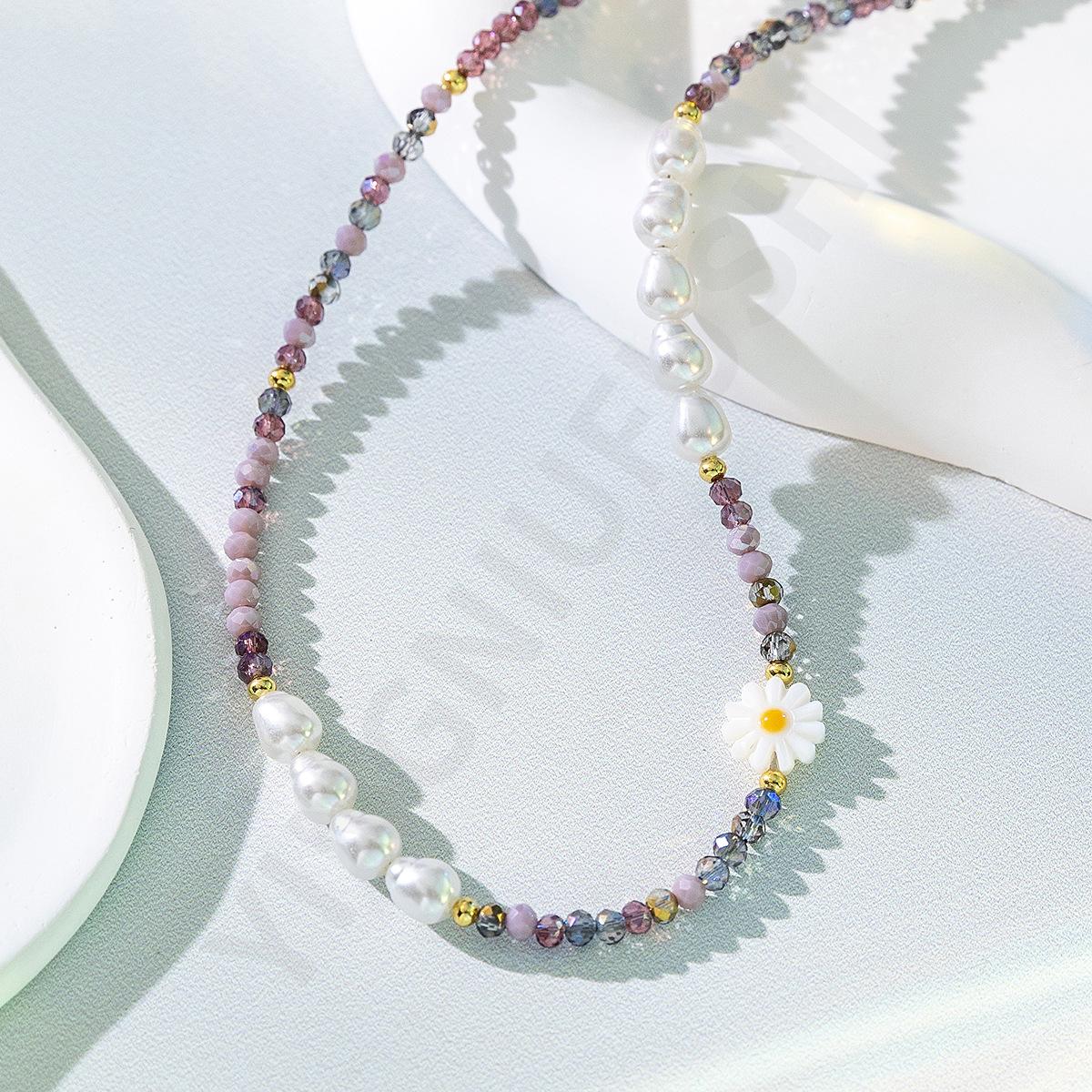 Collar de perlas de color dopamina con diseño de flor, estilo veraniego, cadena de clavícula ligera y de lujo, elegante, para mujer, 2023