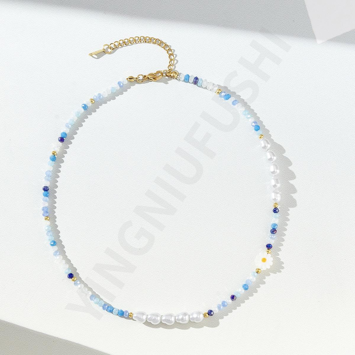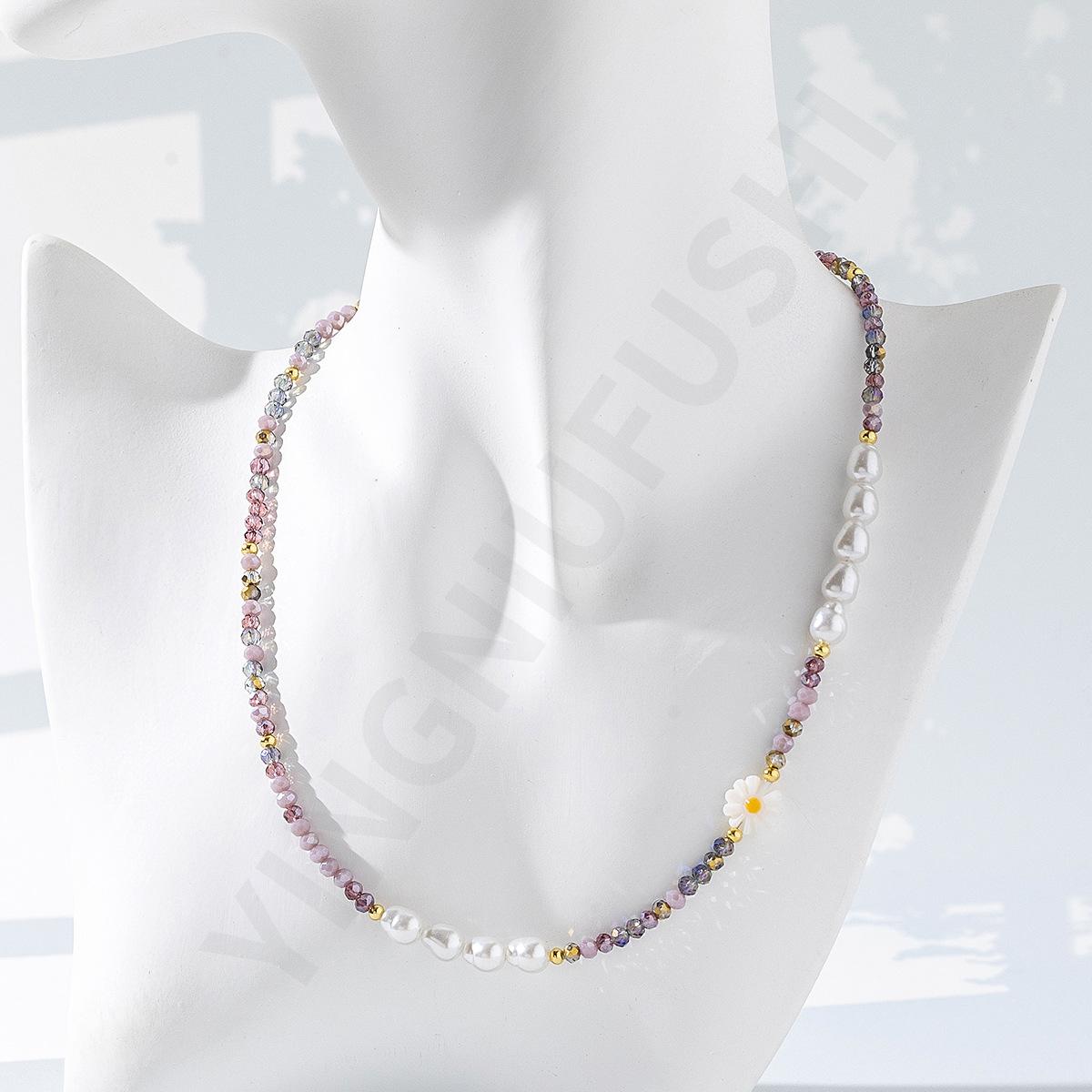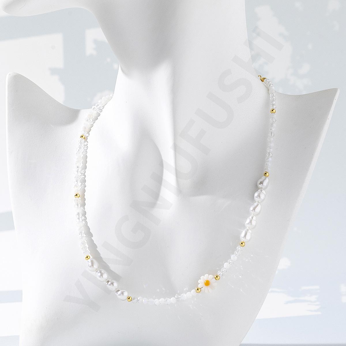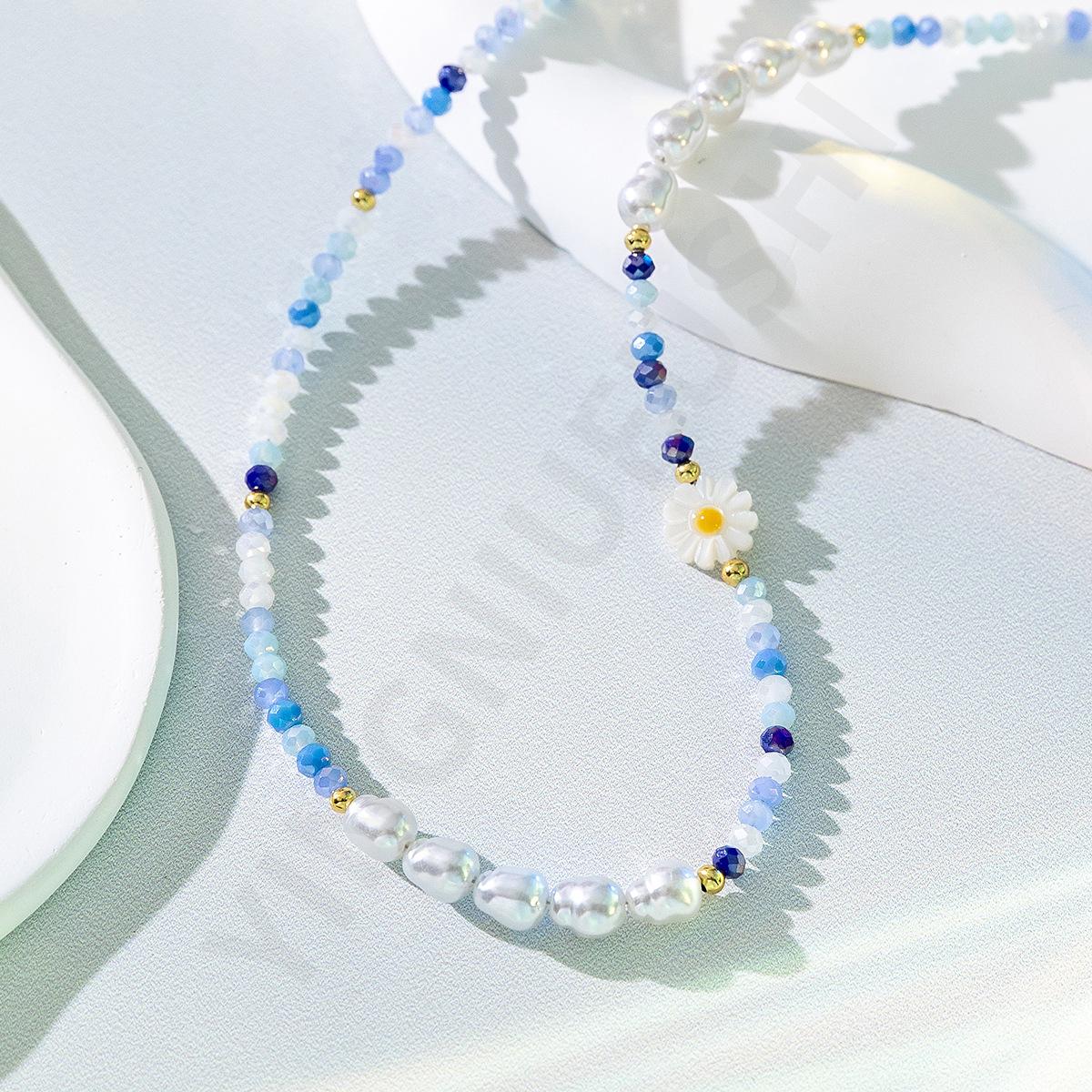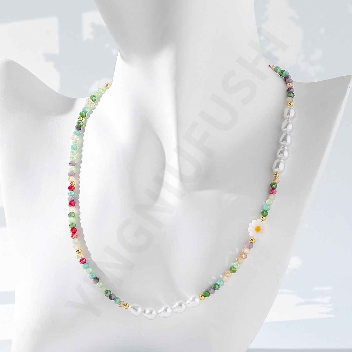 Collar de perlas de color dopamina con diseño de flor, estilo veraniego, cadena de clavícula ligera y de lujo, elegante, para mujer, 2023