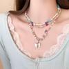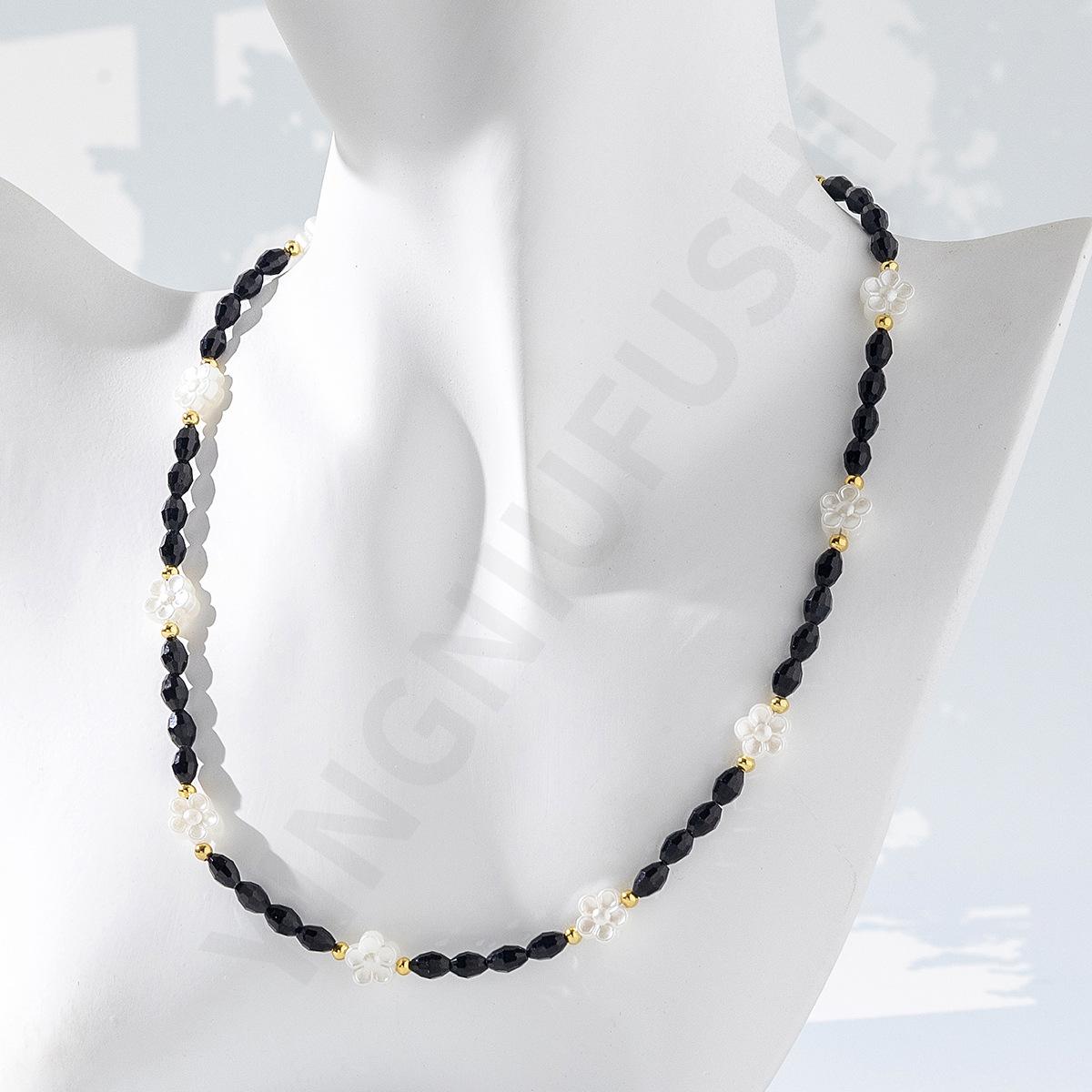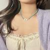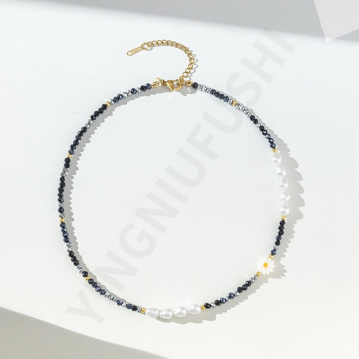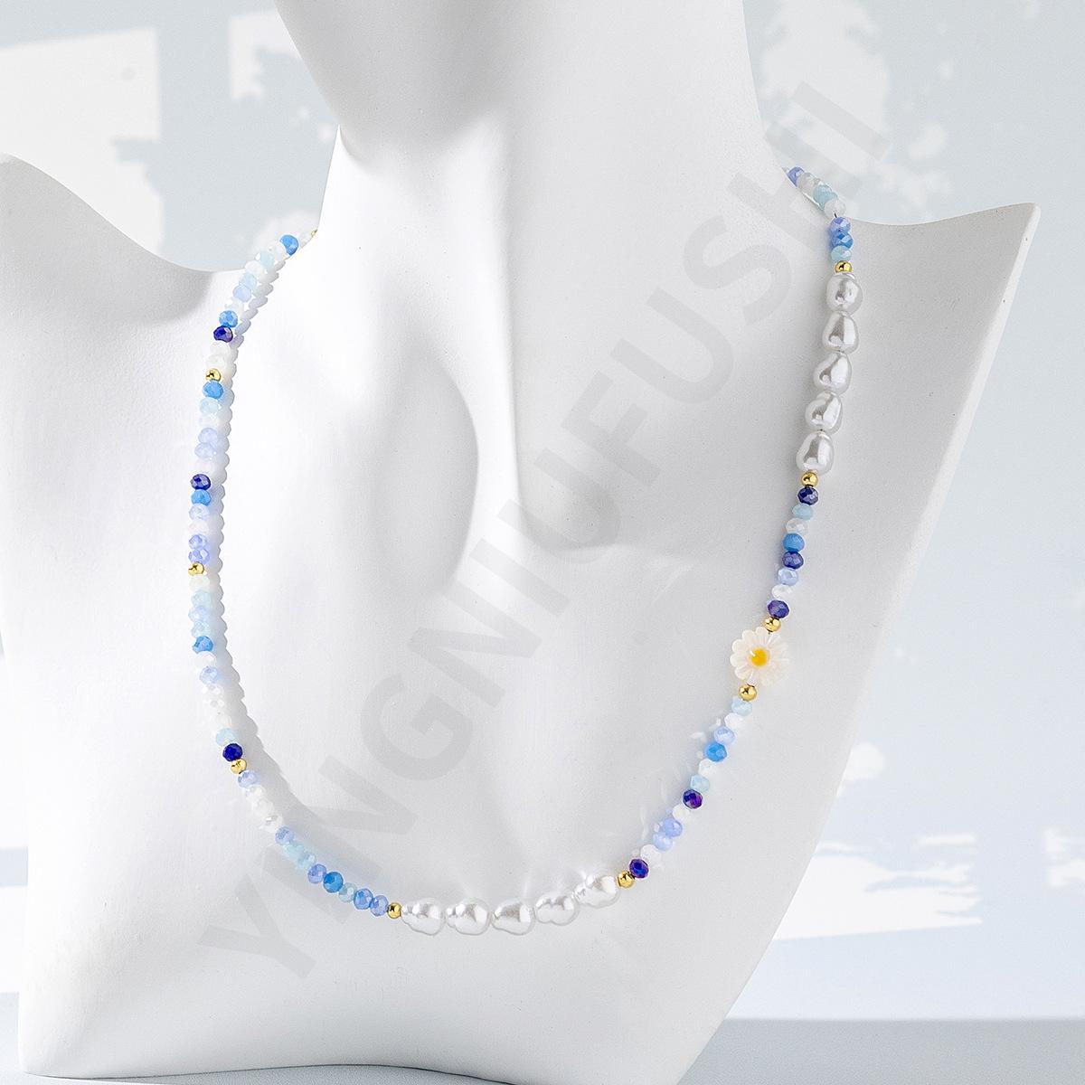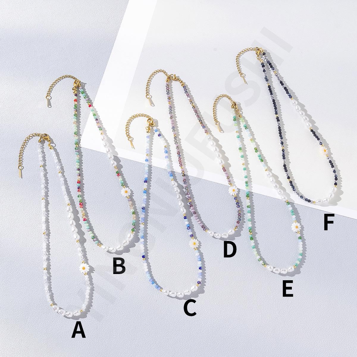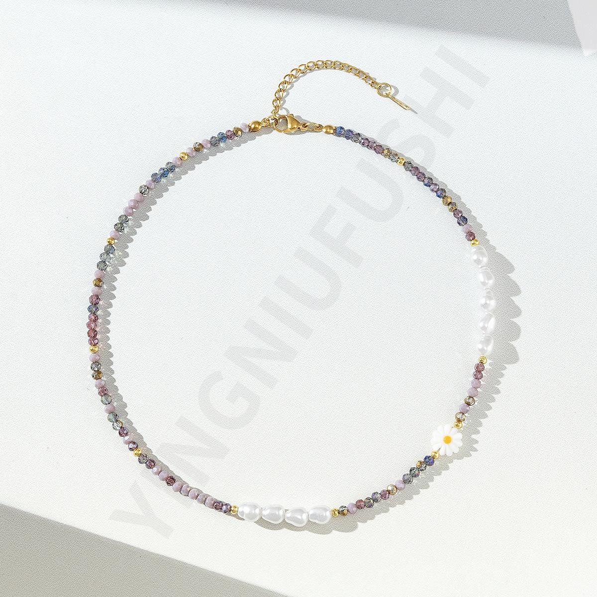 Collar de perlas de color dopamina con diseño de flor, estilo veraniego, cadena de clavícula ligera y de lujo, elegante, para mujer, 2023