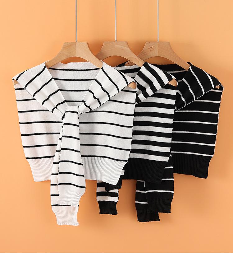 Knitted shawl (white stripes), Knitted shawl (black pinstripes), Knitted shawl (black thick stripes), Knitted ...