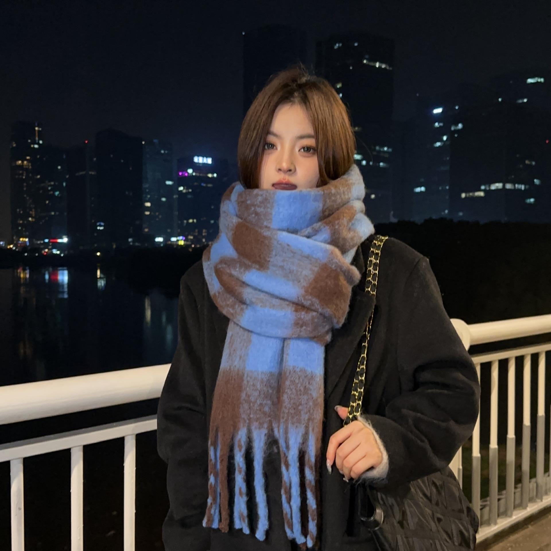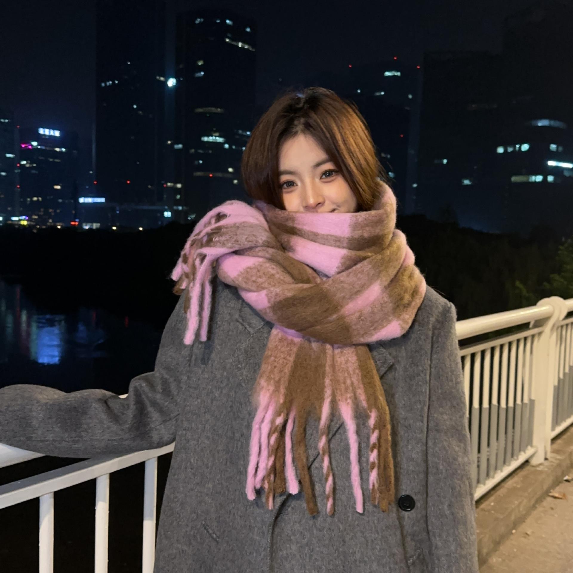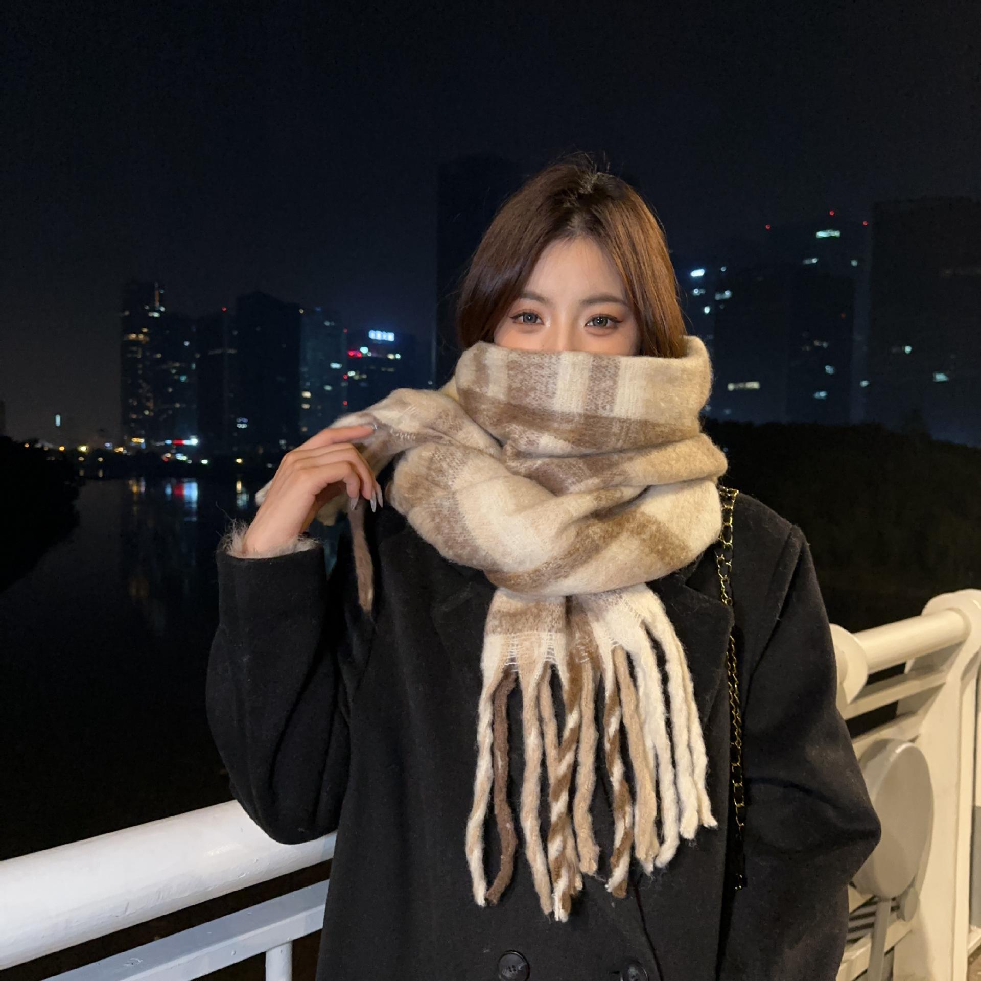 Bufanda de cachemir a cuadros Maillard para mujer, chal de alta gama que combina con todo, cálida y gruesa, para otoño e invierno.