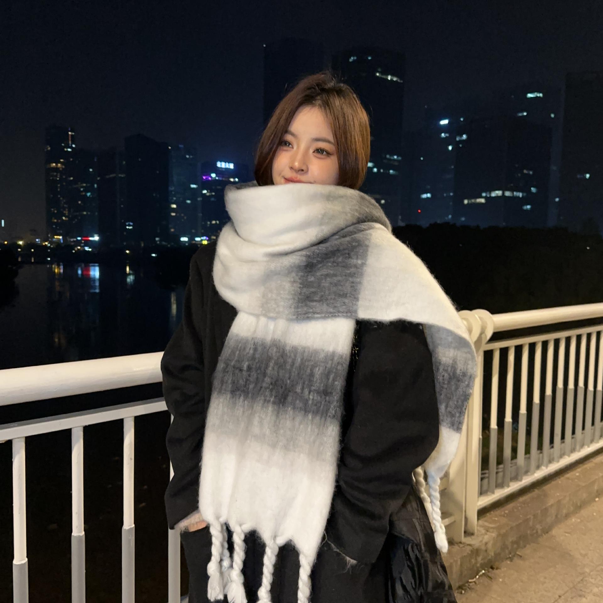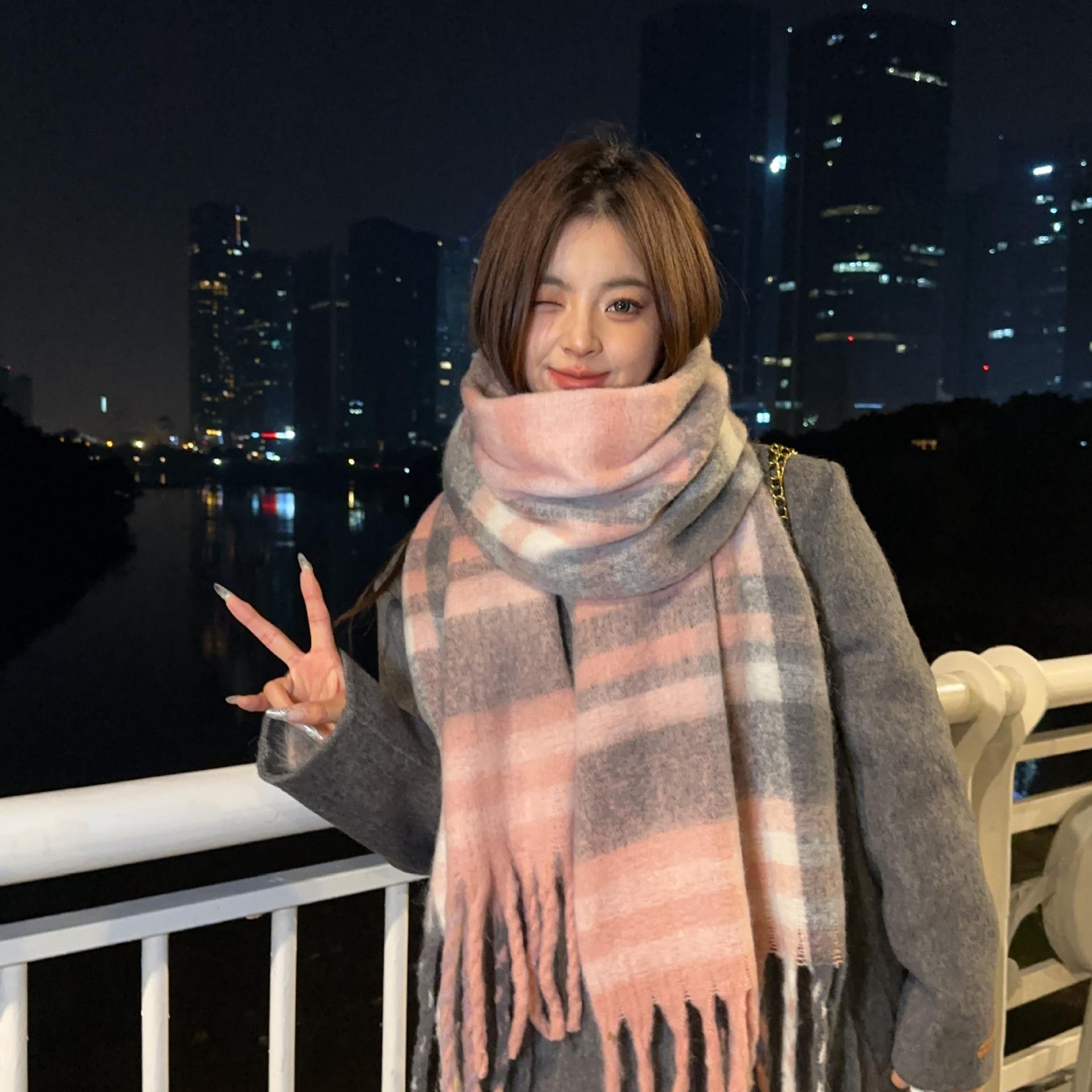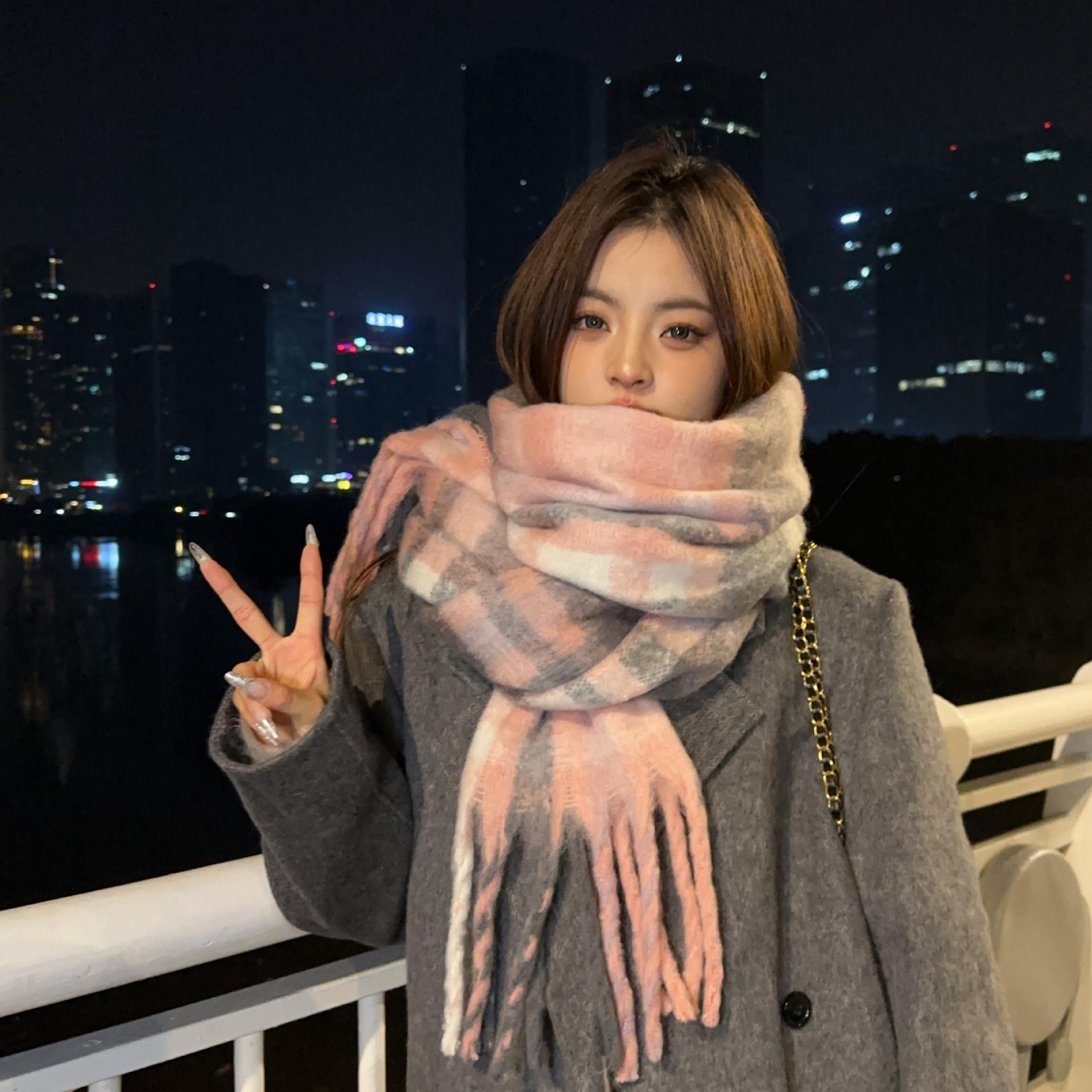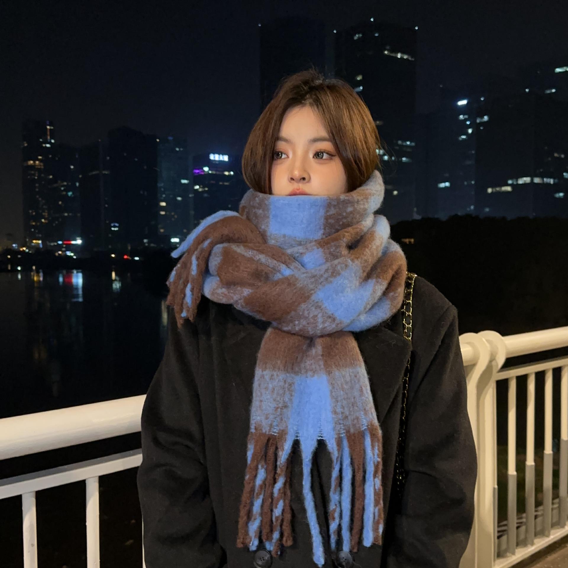 Bufanda de cachemir a cuadros Maillard para mujer, chal de alta gama que combina con todo, cálida y gruesa, para otoño e invierno.