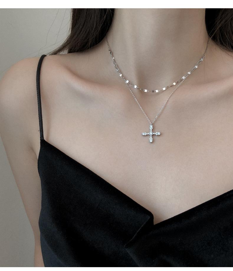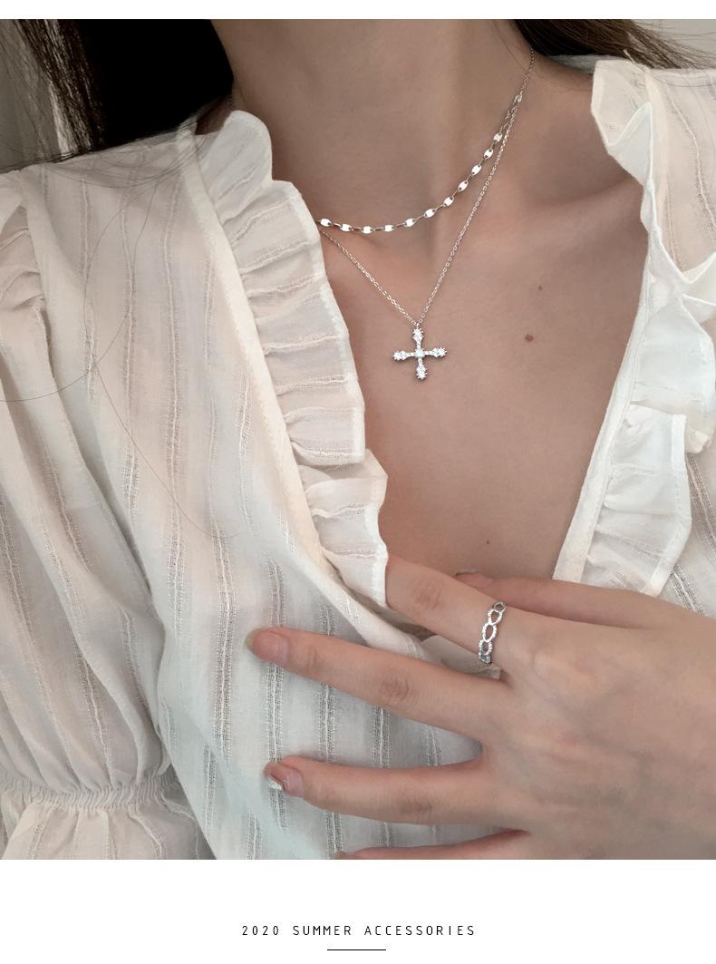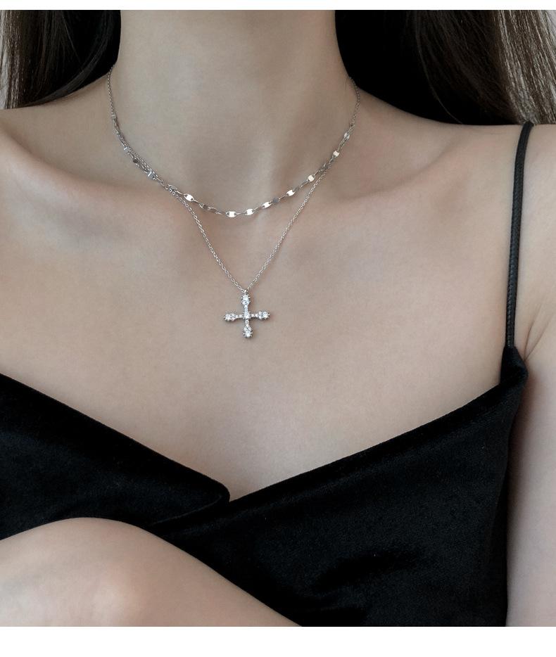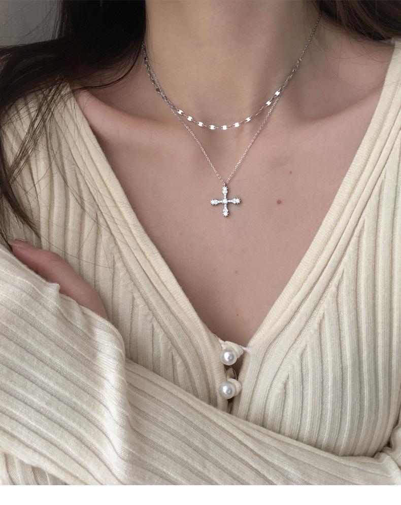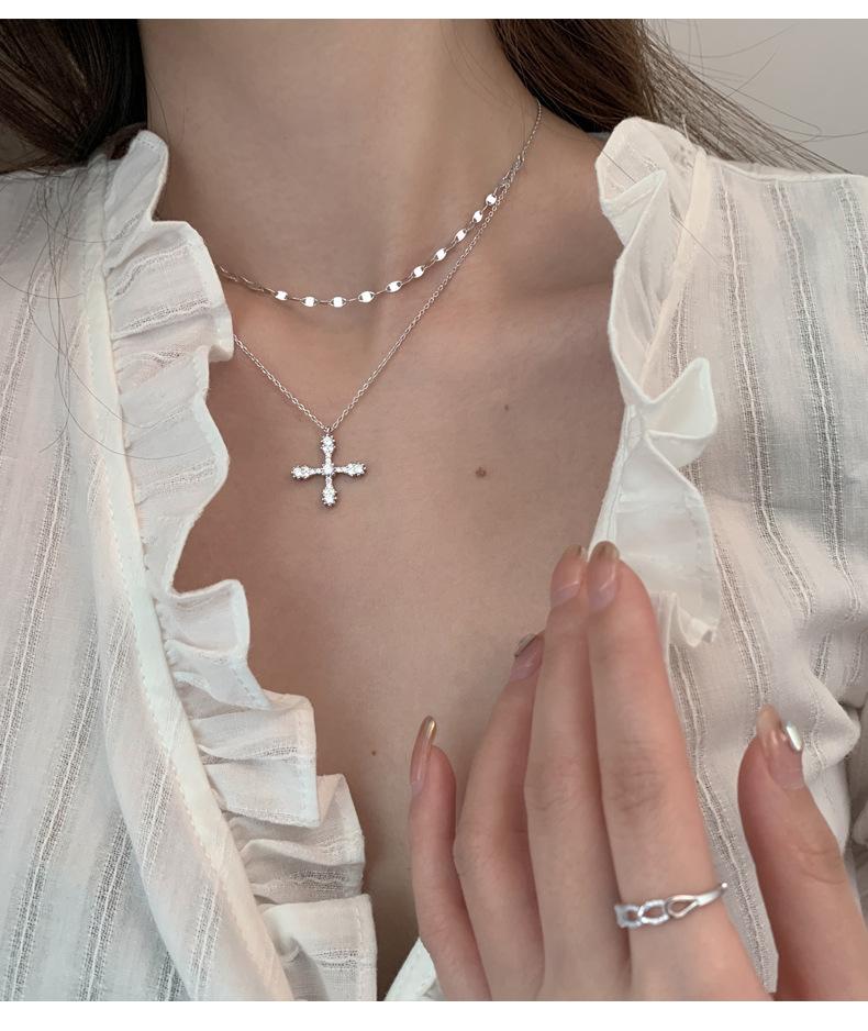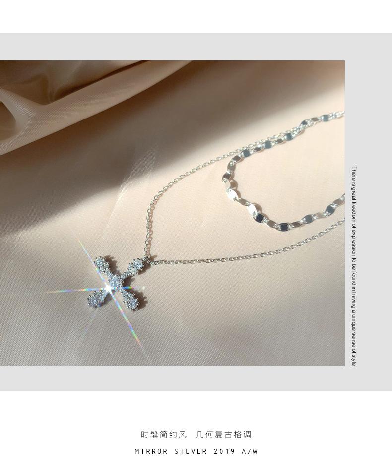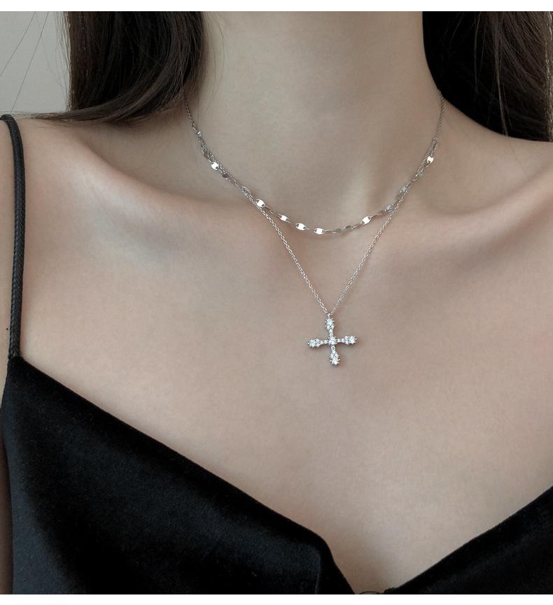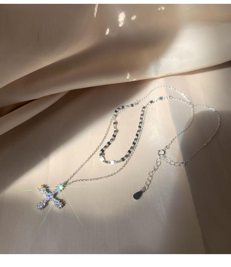 Collar cruzado de doble capa, diseño de nicho femenino, cadena de clavícula de celebridades en línea, joyería de plata de estilo frío y temperamento simple a la moda.