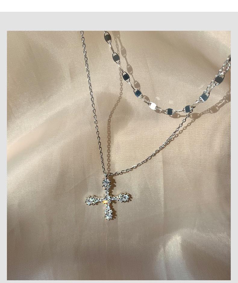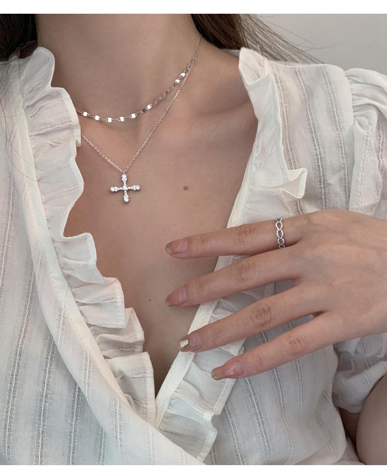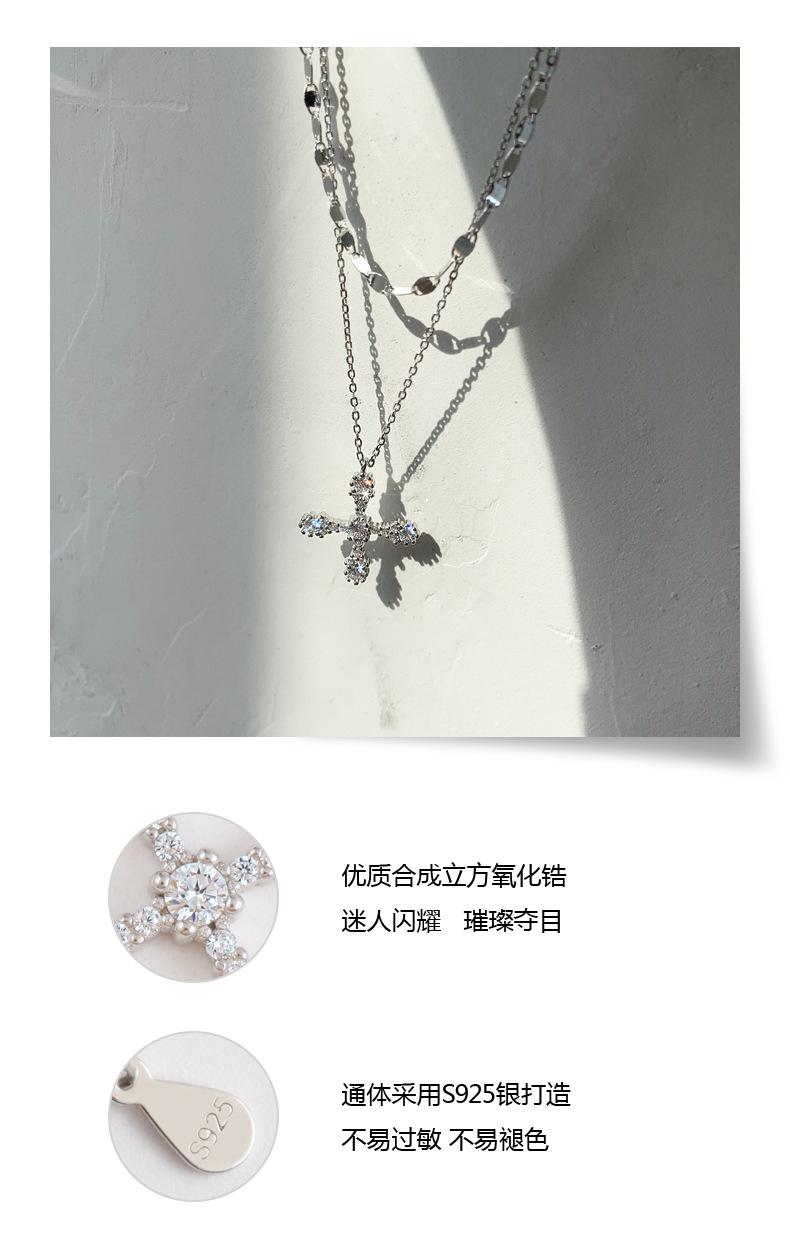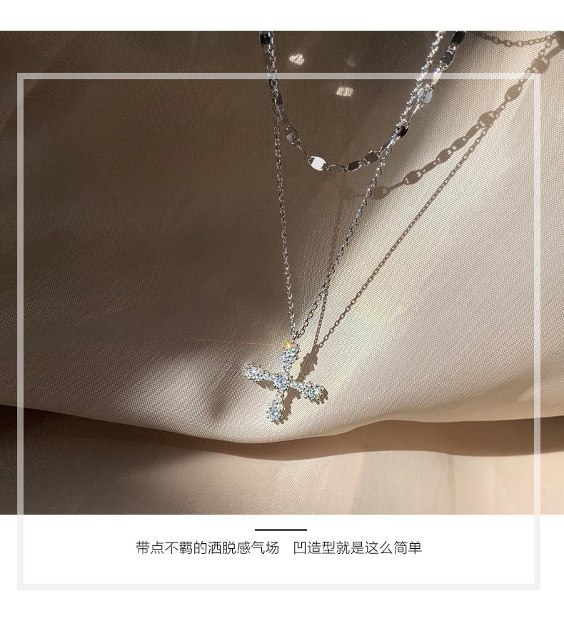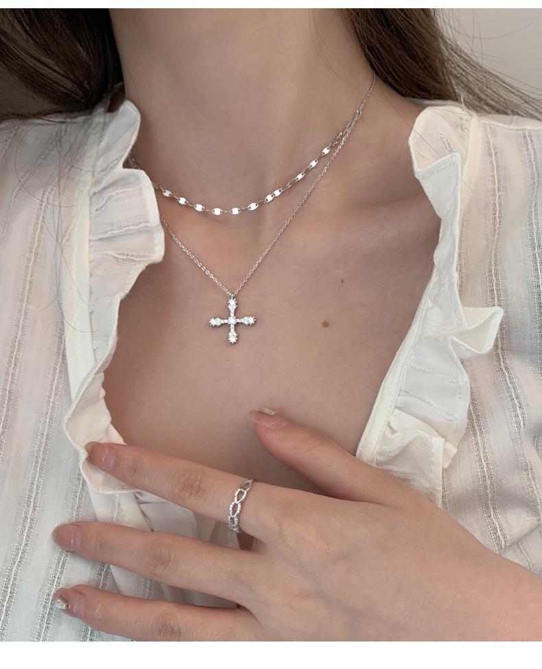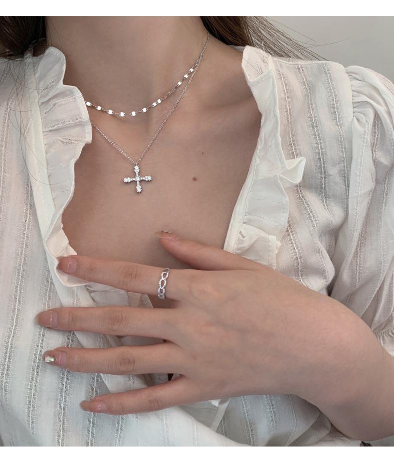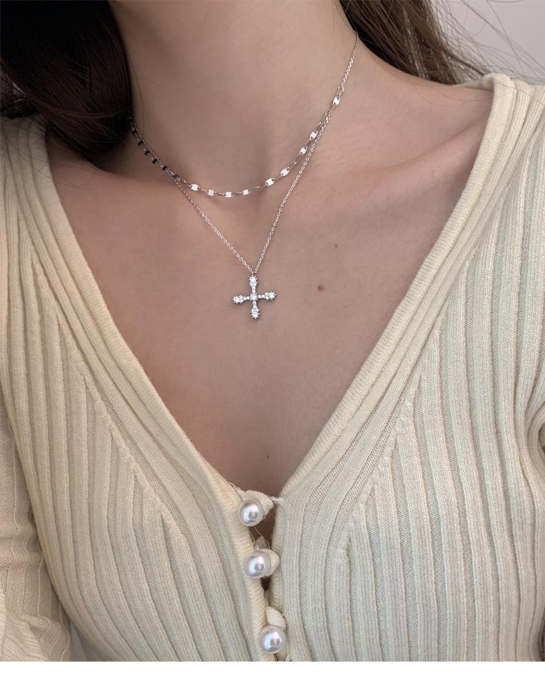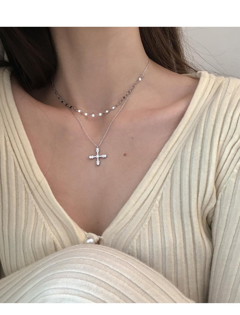 Collar cruzado de doble capa, diseño de nicho femenino, cadena de clavícula de celebridades en línea, joyería de plata de estilo frío y temperamento simple a la moda.