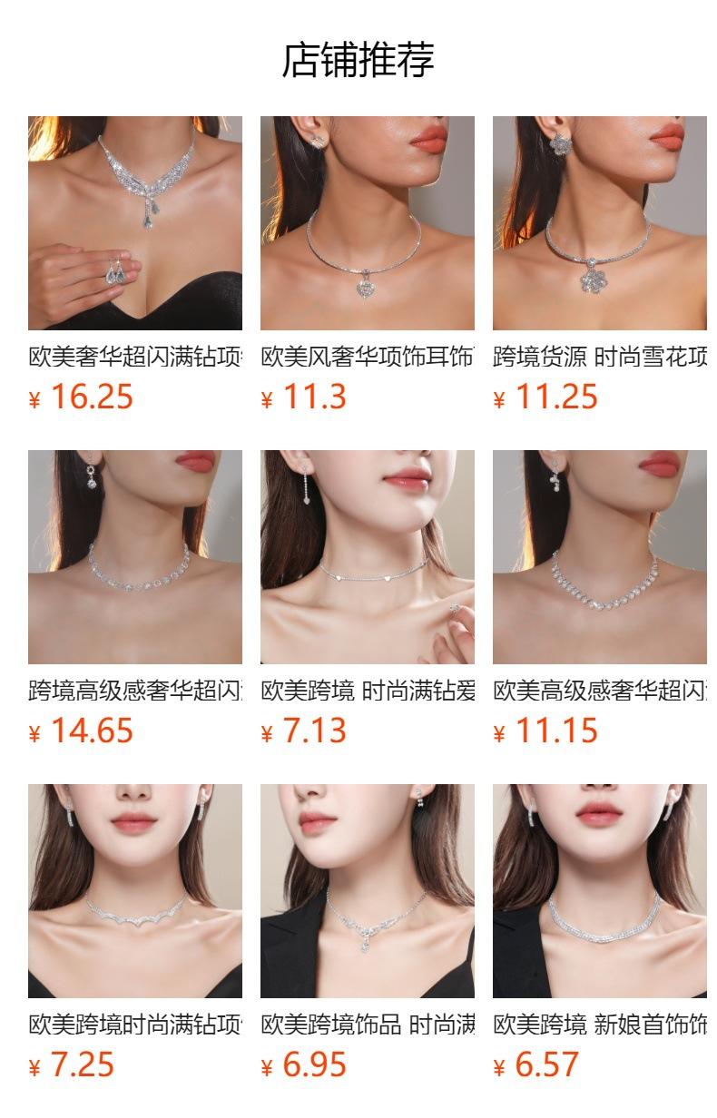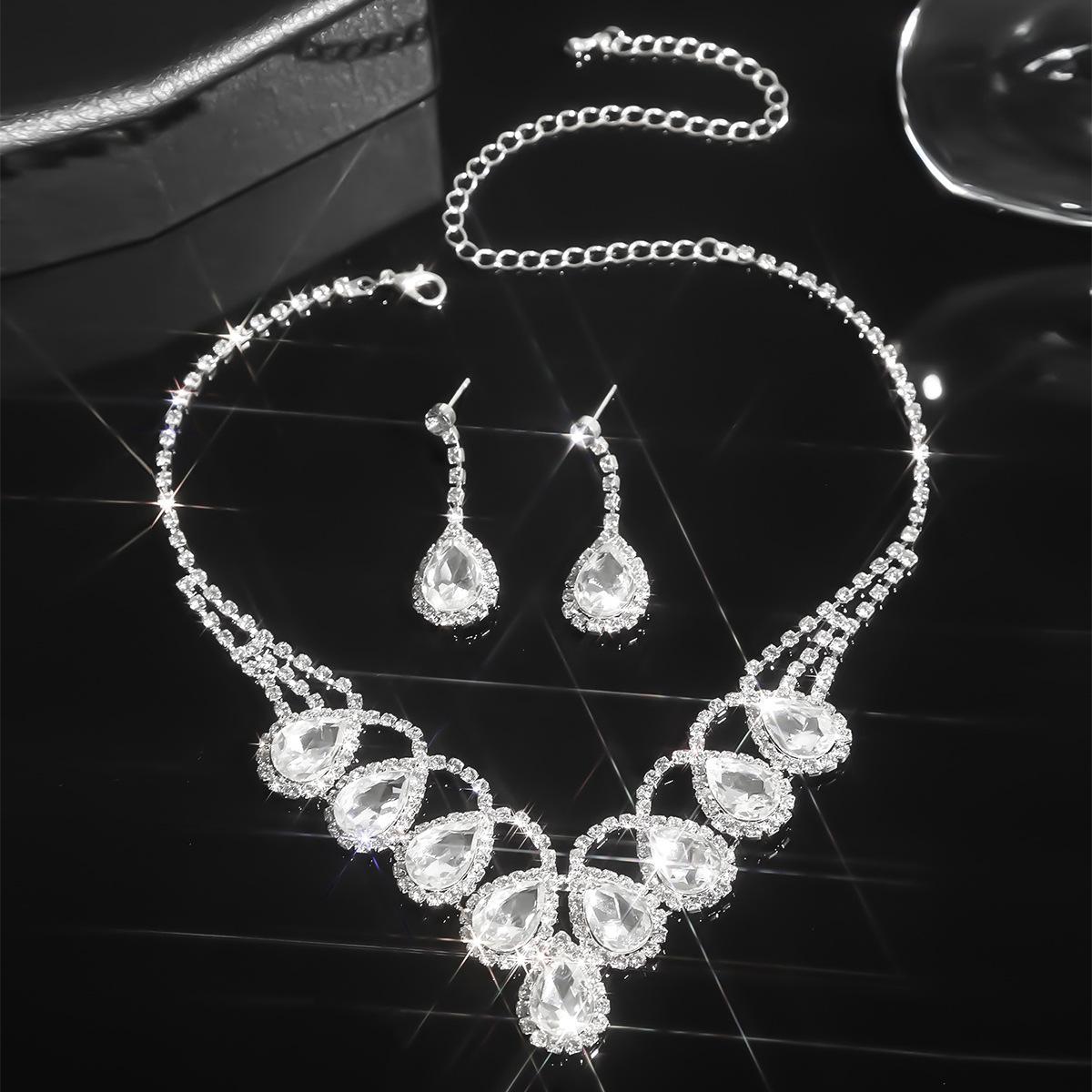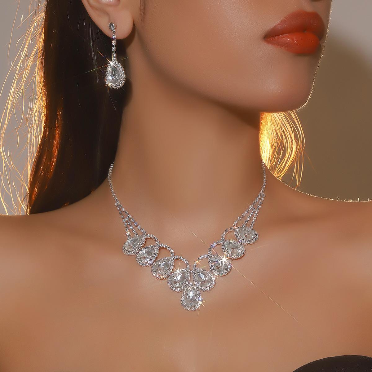 Conjunto de dos piezas europeo y americano de Amazon, collar de diamantes de imitación y conjunto de aretes, collar de circonita de moda, aretes, joyería nupcial