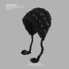 Gorro de protección auditiva cálido para mujer, de otoño e invierno, con punta de punto pequeña que muestra la cara, estilo coreano, gorro de punto que combina con todo, moderno.