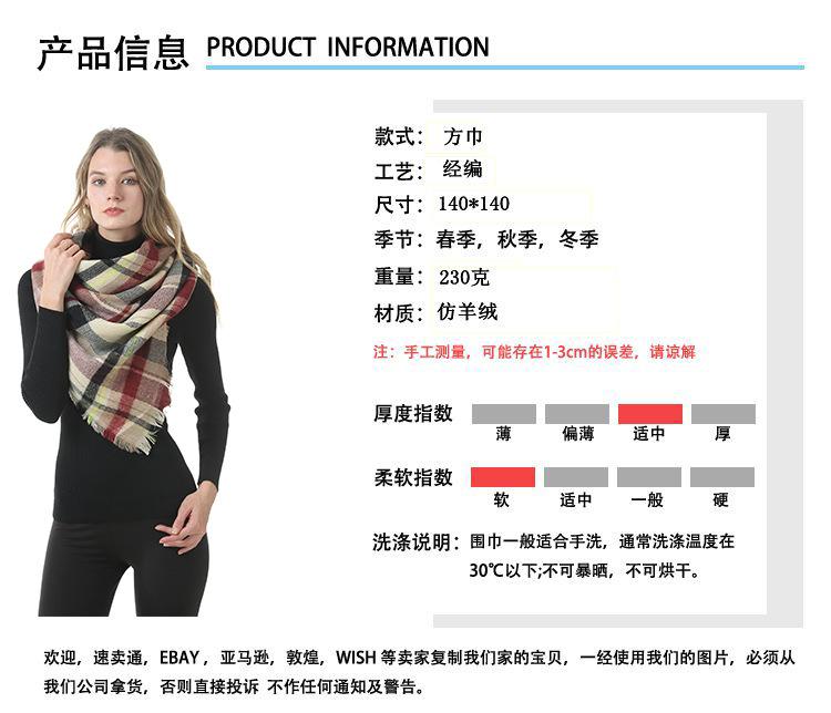 Nombre del producto: Nueva bufanda cuadrada grande a cuadros de cachemira de imitación colorida europea y americana, bufanda popular, chal |