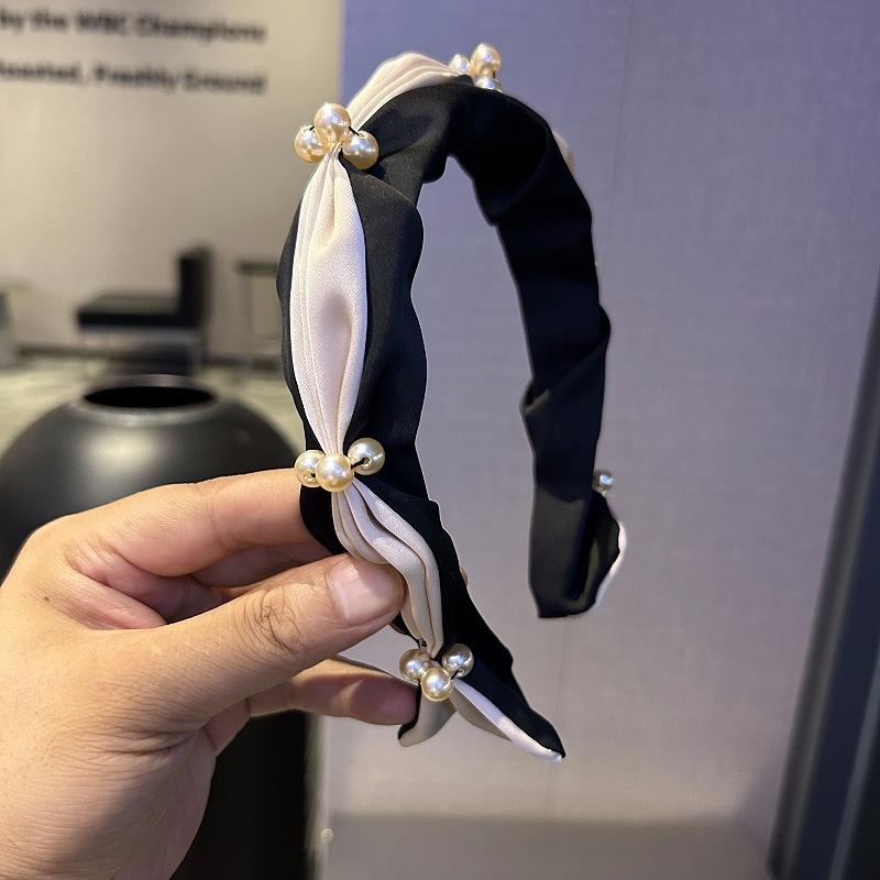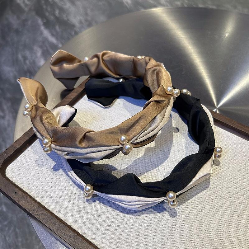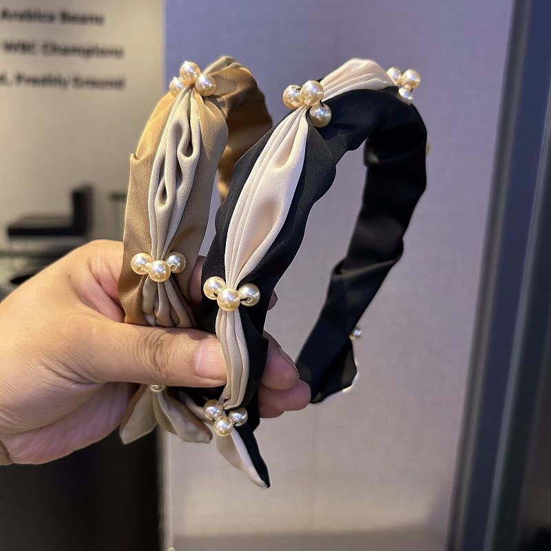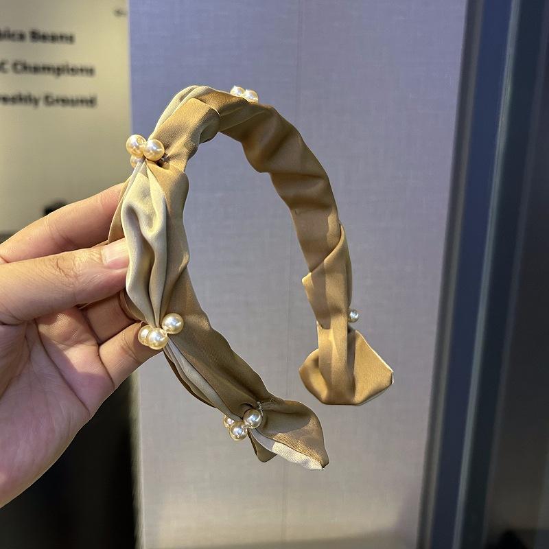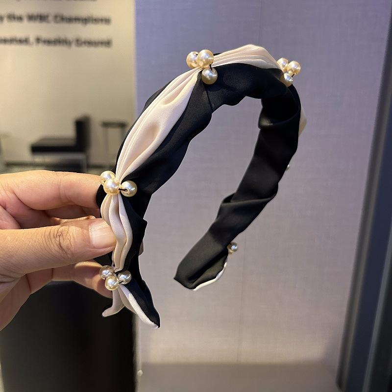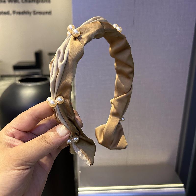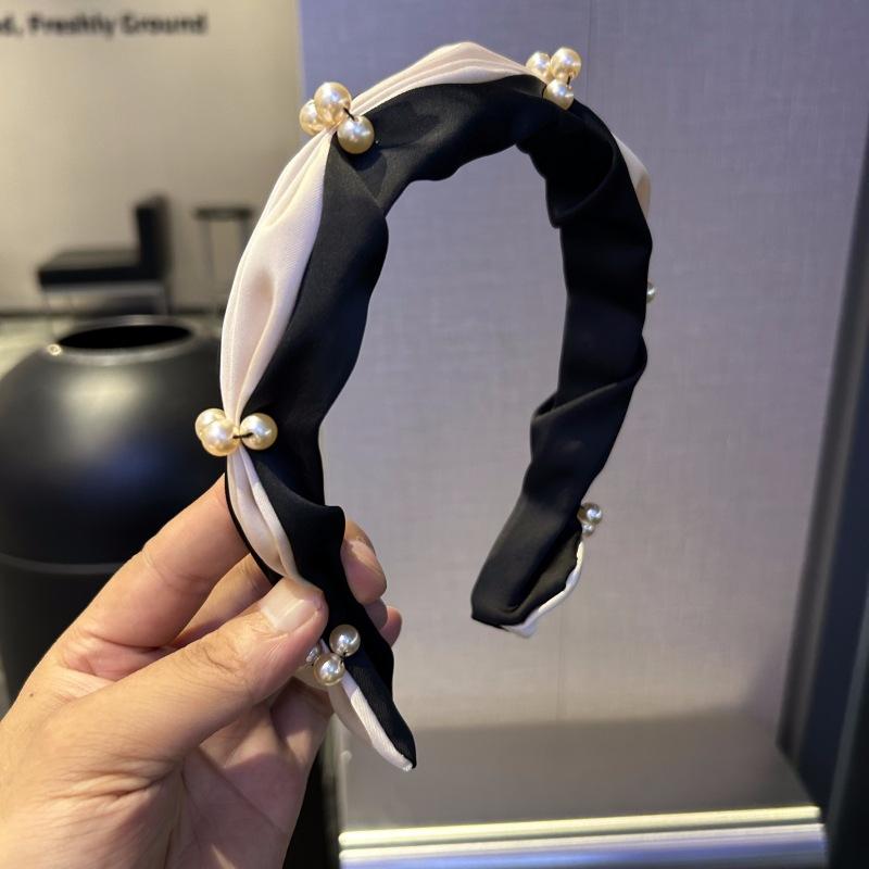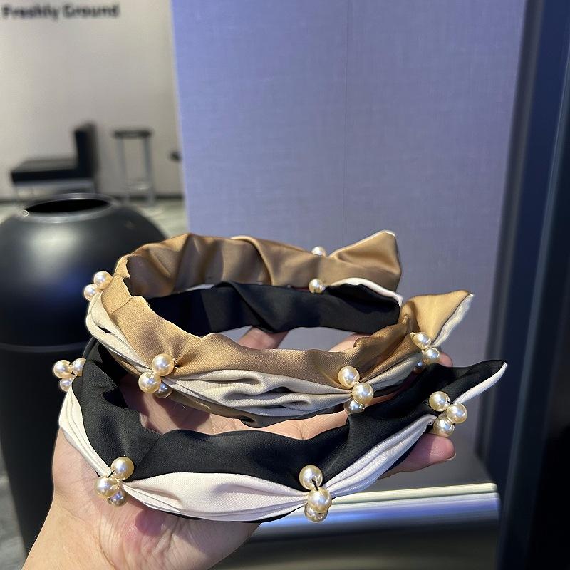 Diadema de Perlas Pequeñas Fragantes de Satén de Estilo Coreano con Sensación de Alta Gama Parte Superior Craneal Alta Combinable Diadema para Salir Sello de Cabello Exquisito Elegante