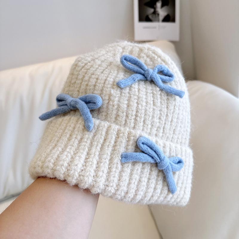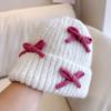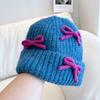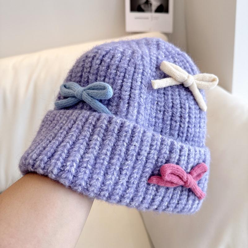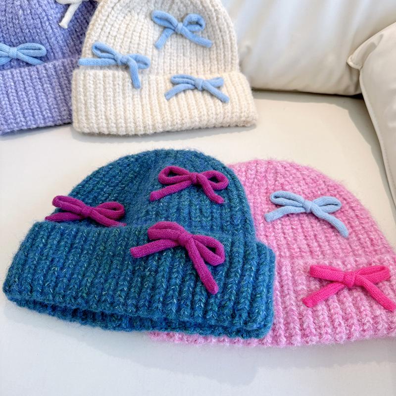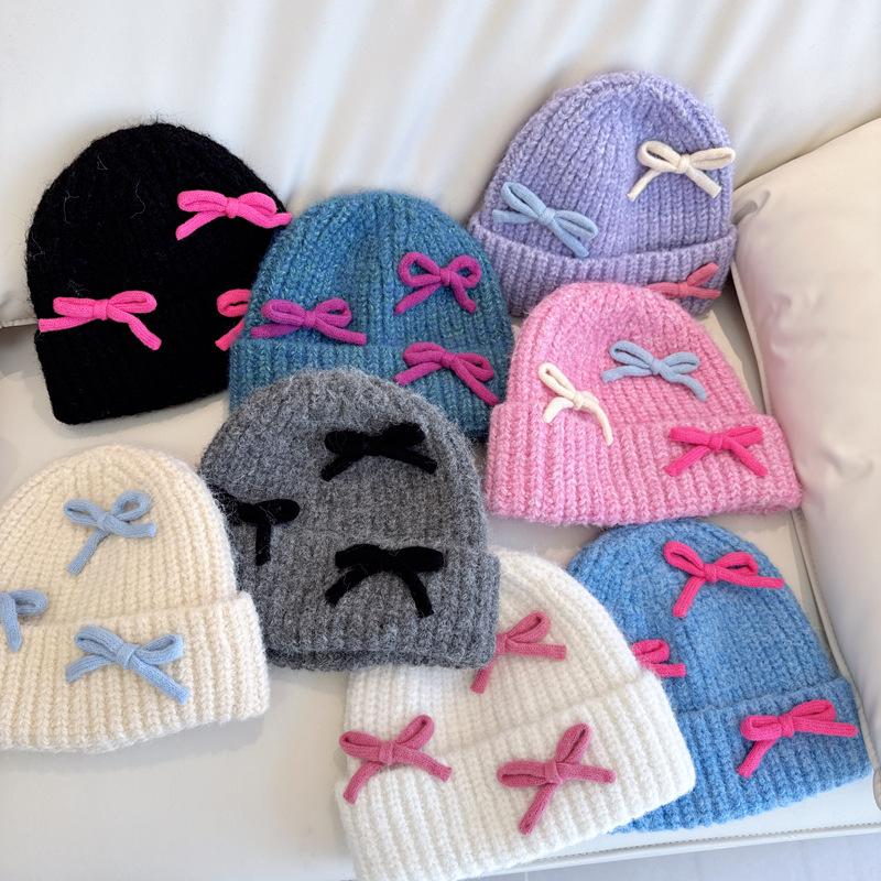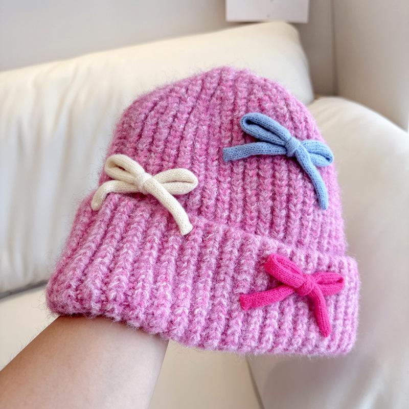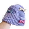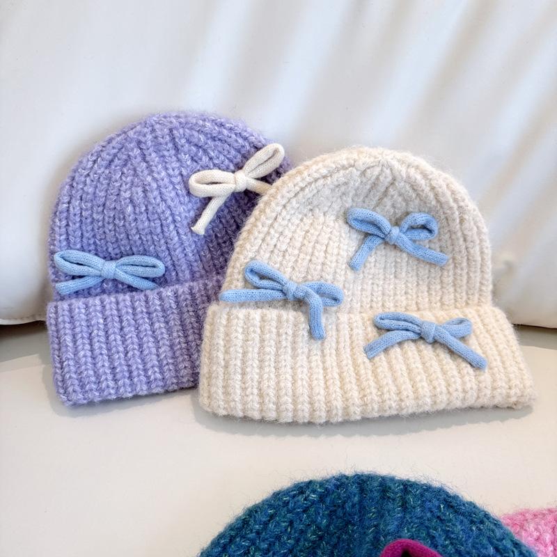 Sombrero de Punto Dulce con Lazo Estilo INS para Niños Otoño e Invierno Cálido Grueso de Lana Lindo Raya Vertical Dobladillo Gorro para el Frío