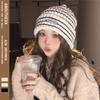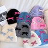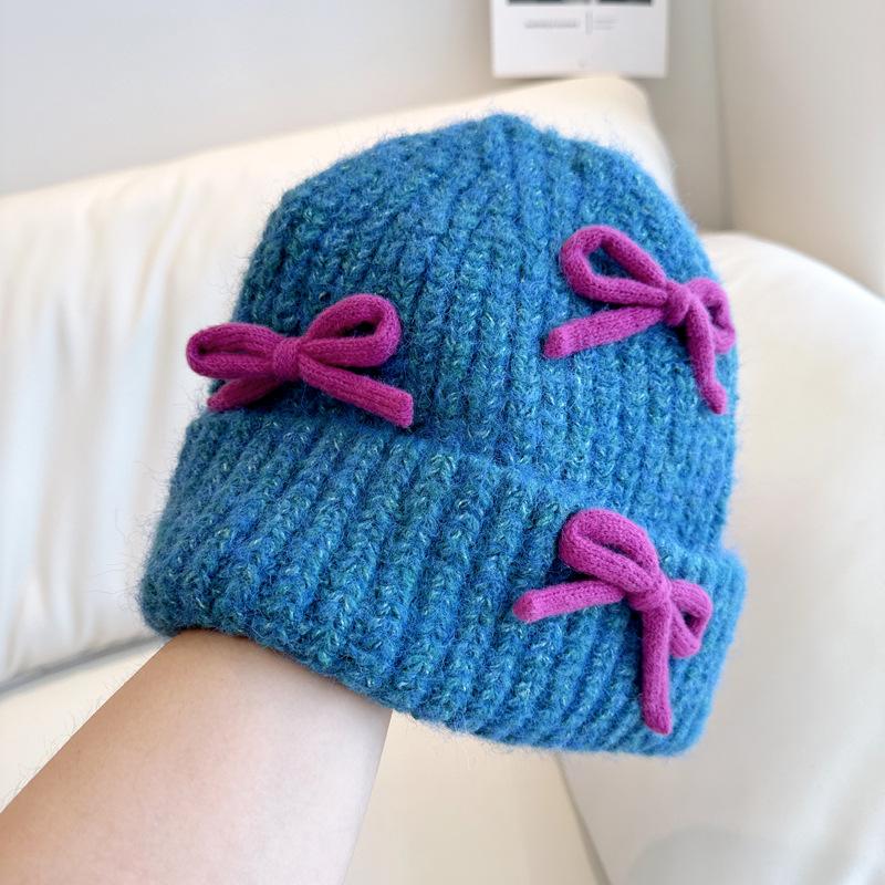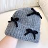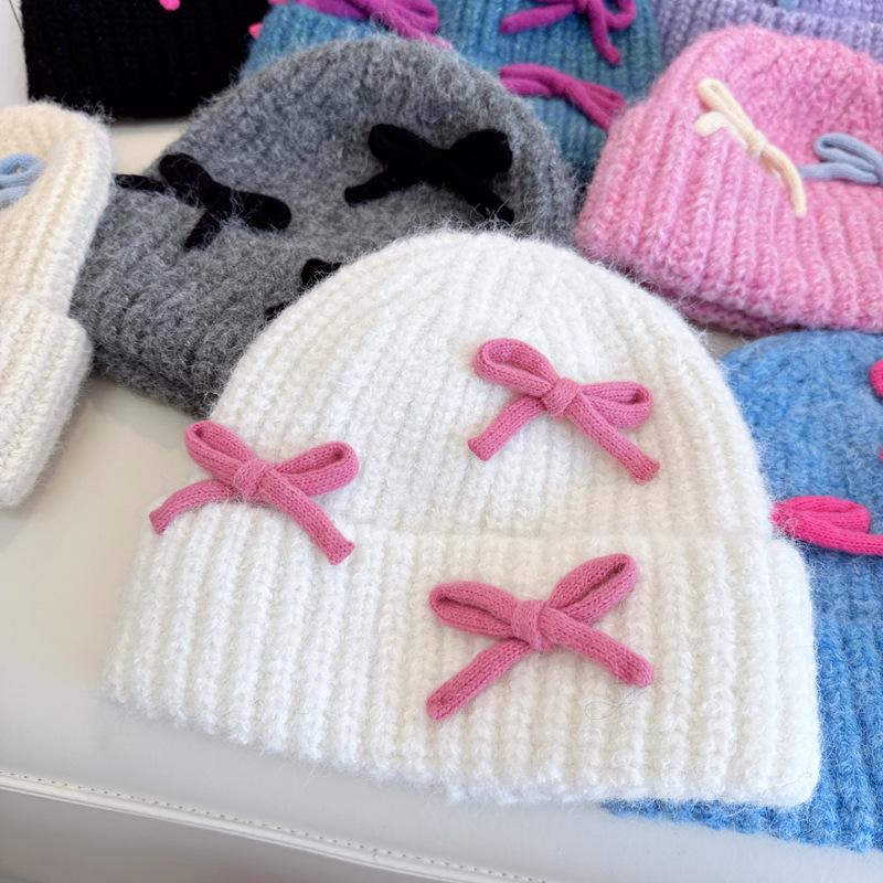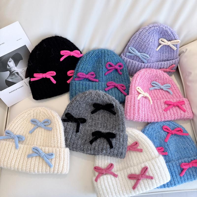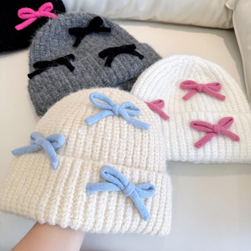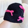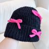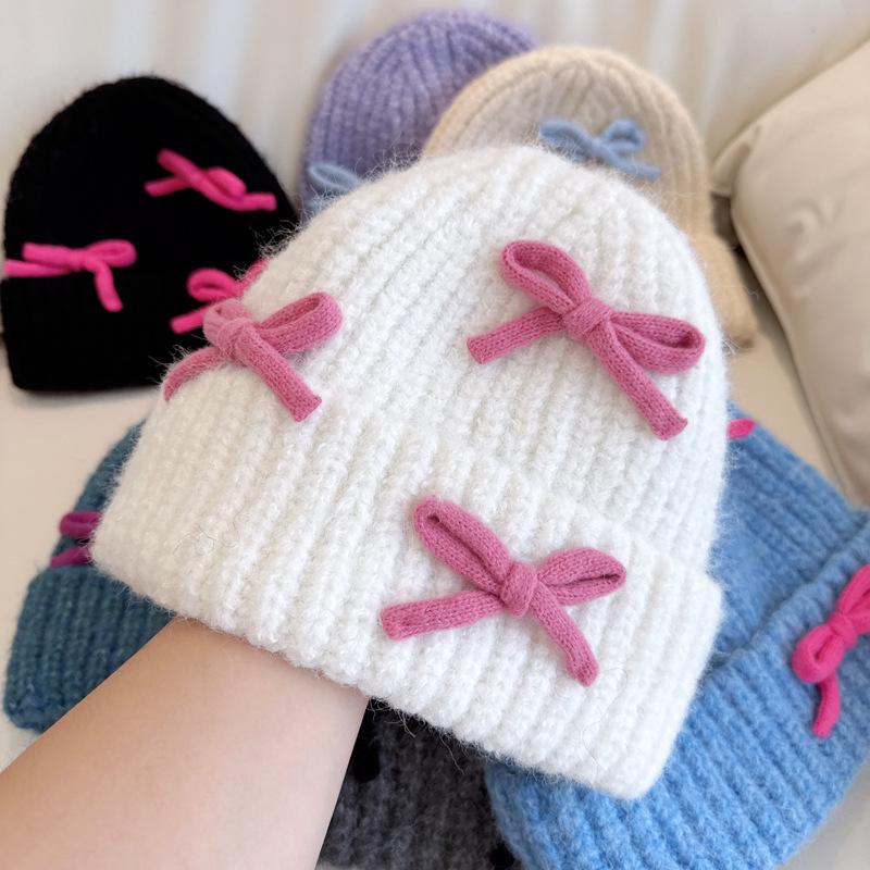 Sombrero de Punto Dulce con Lazo Estilo INS para Niños Otoño e Invierno Cálido Grueso de Lana Lindo Raya Vertical Dobladillo Gorro para el Frío