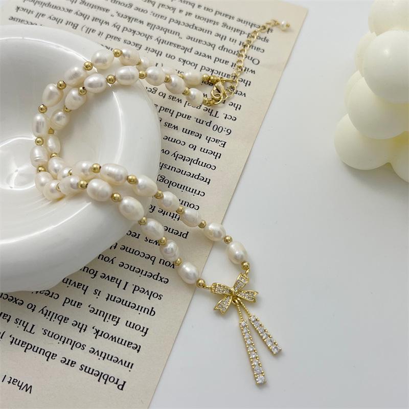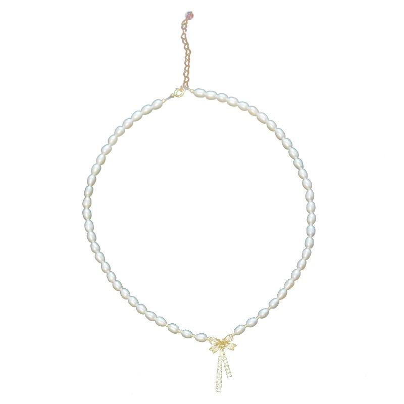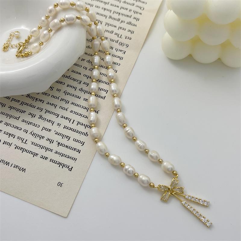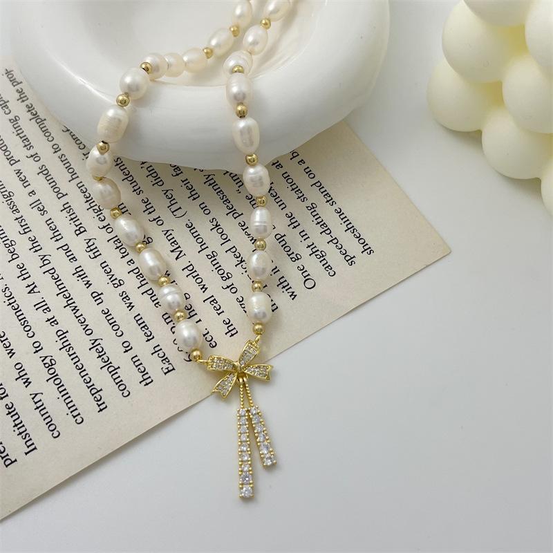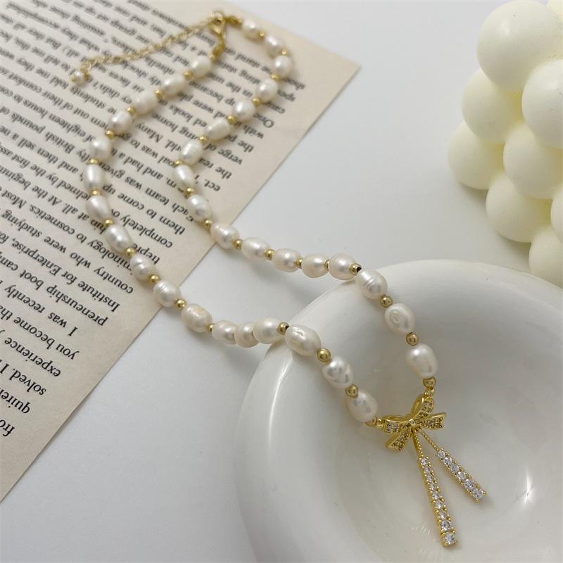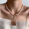 Hermoso collar de perlas naturales de agua dulce de perla real para mujer, cadena de clavícula de nicho de lujo ligera de verano para mujer, moda de alta calidad