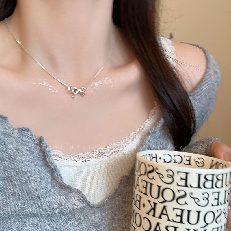 Collar de lazo estilo coreano para mujer, novedad de 2024, cadena de clavícula minimalista explosiva, accesorios de collar de alta gama que combinan con todo.