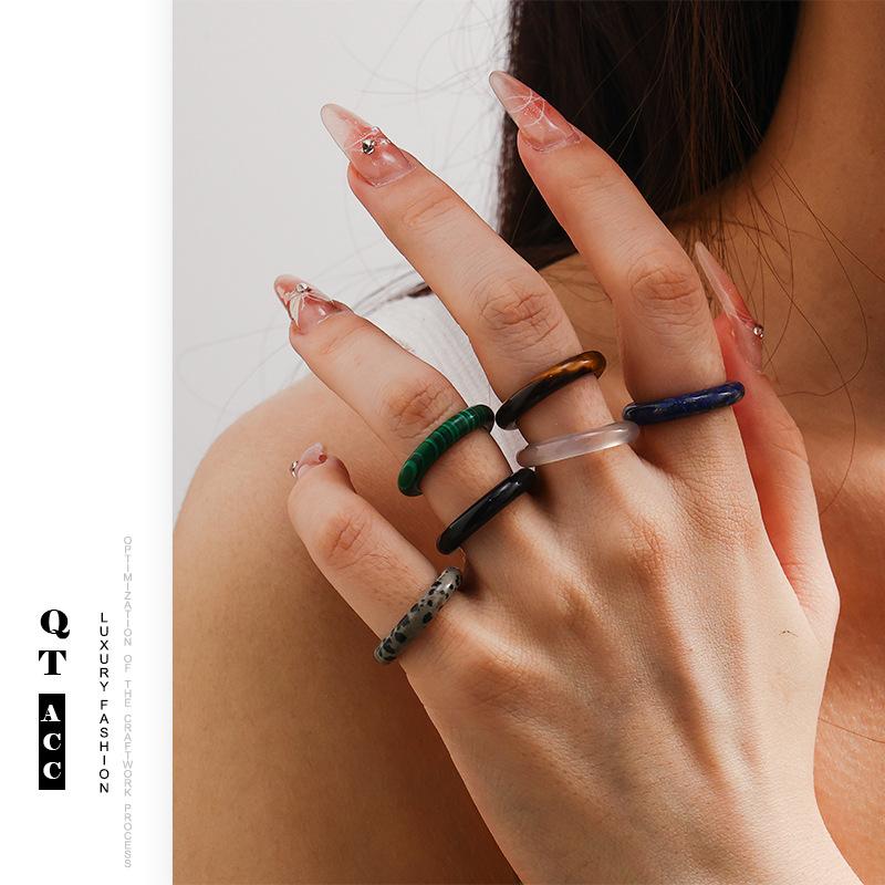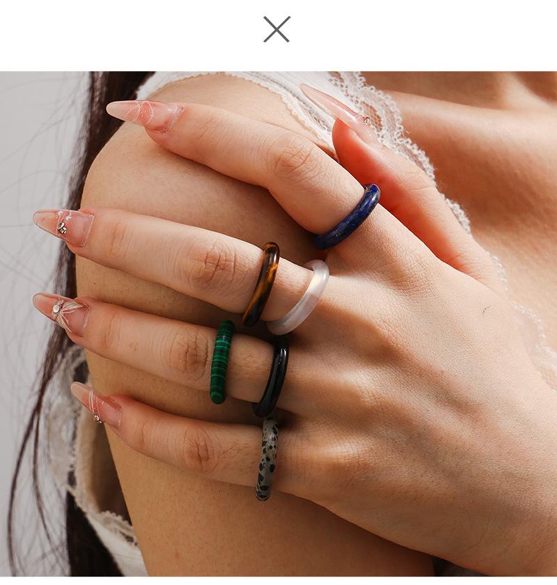 Anillo de piedra semipreciosa de ágata de cristal natural, anillo de jade con elemento energético, anillo versátil con personalidad, joyería sencilla.