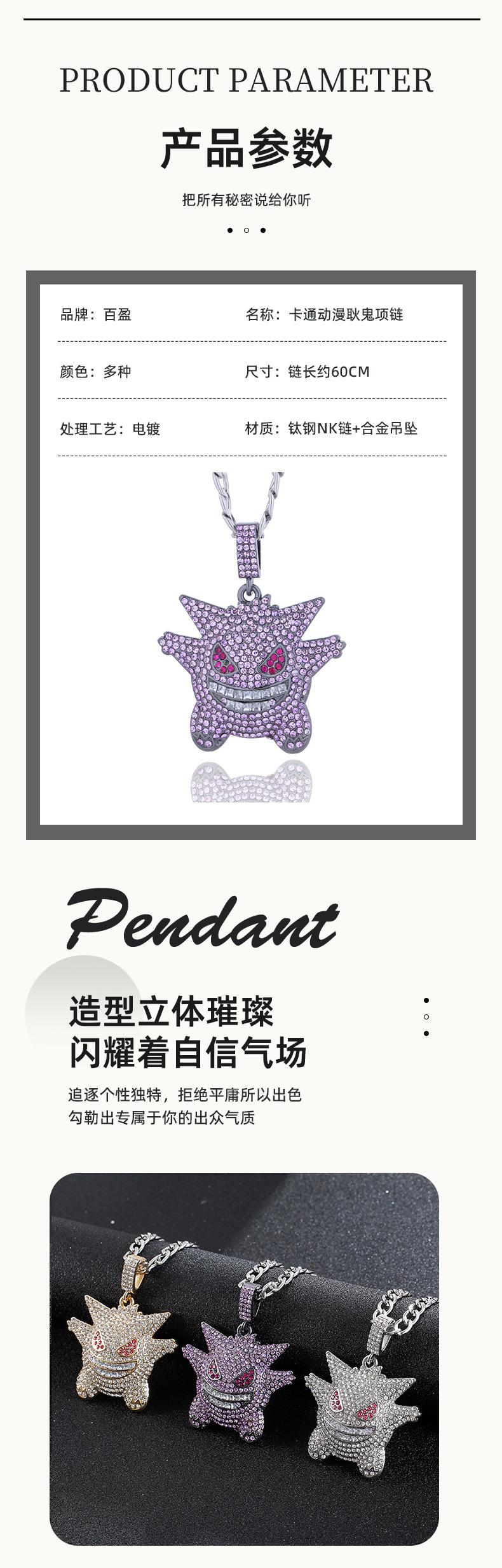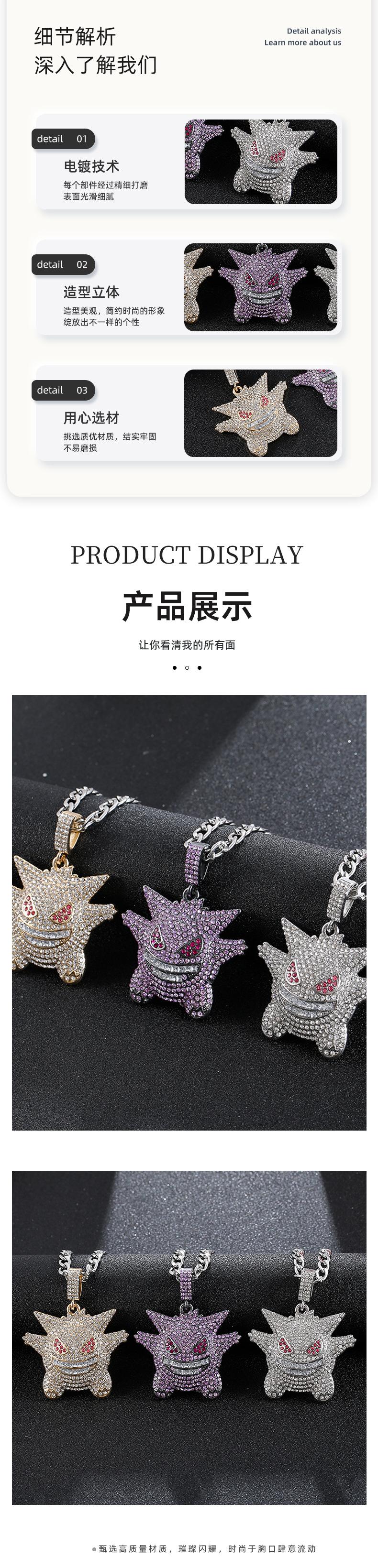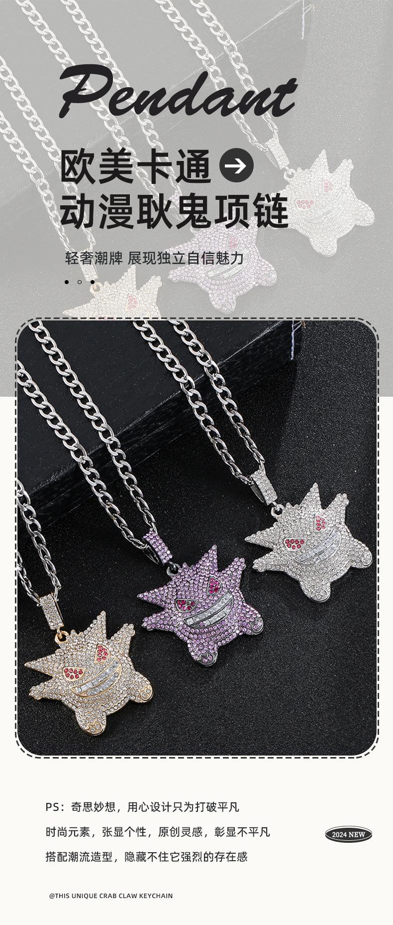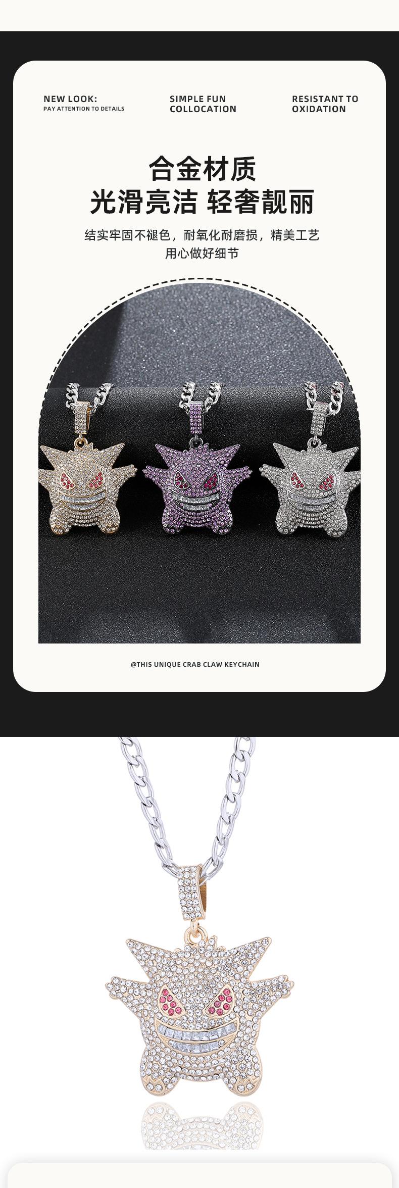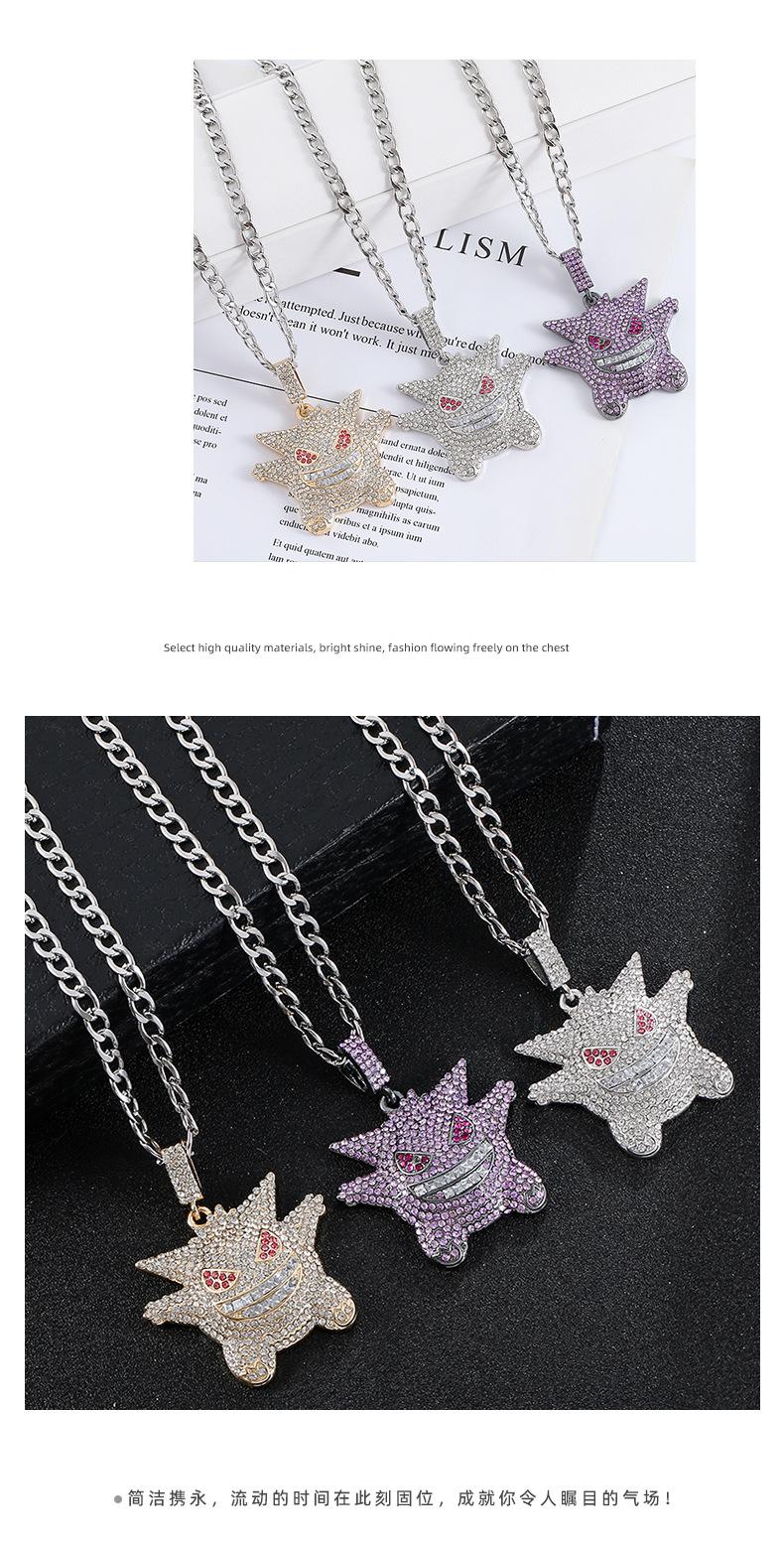 Colgante de personaje de dibujos animados de Geng Ghost, personalidad europea y americana, animación de Pokémon Genie, colgante moderno con diamantes, collar de hip-hop
