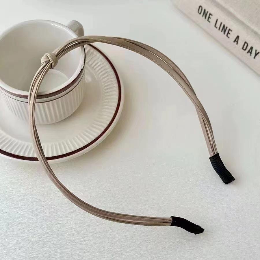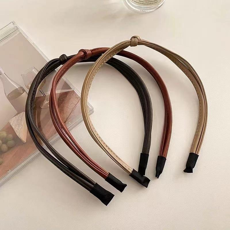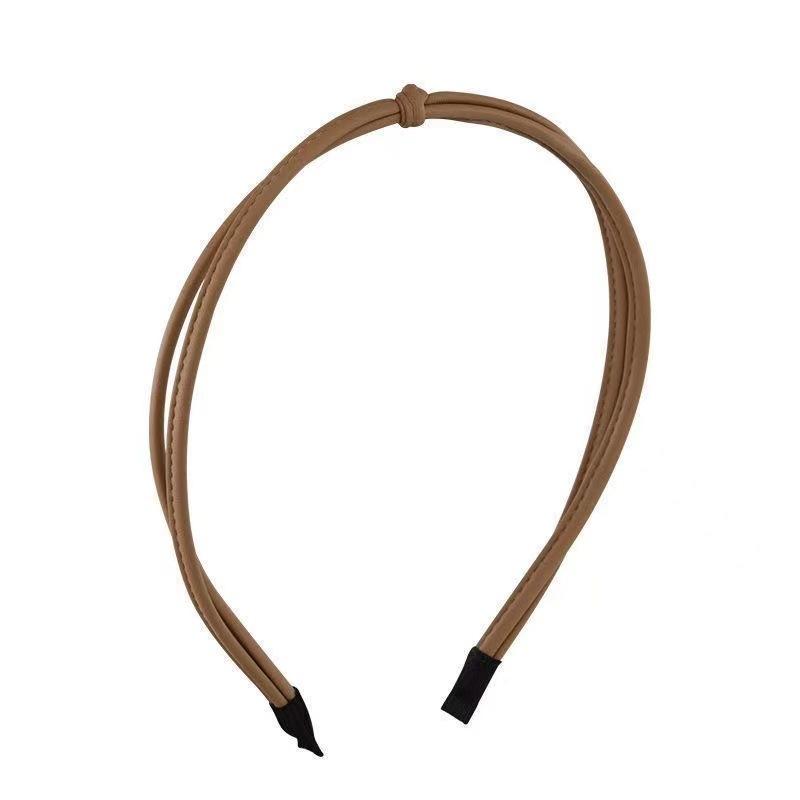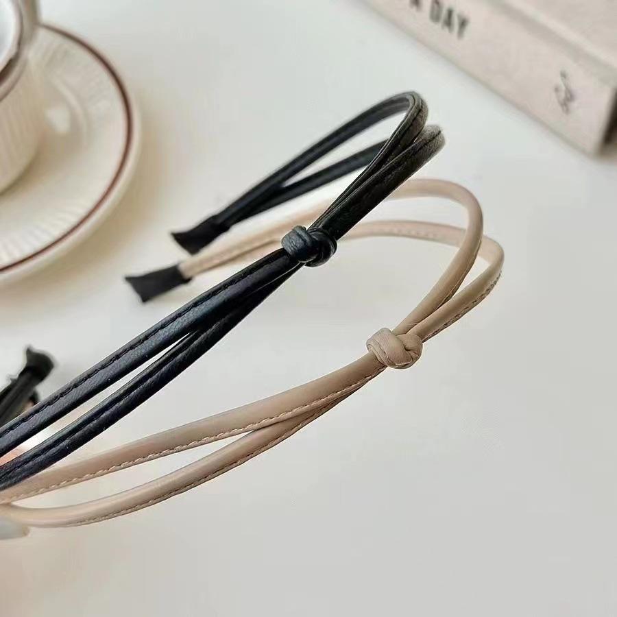 Diadema de cuero sintético anudada de doble hebra estilo coreano 2024, famosa en Internet, accesorios para el cabello, nuevo tocado de presión simple, horquilla