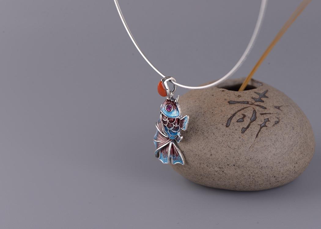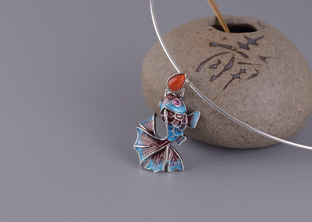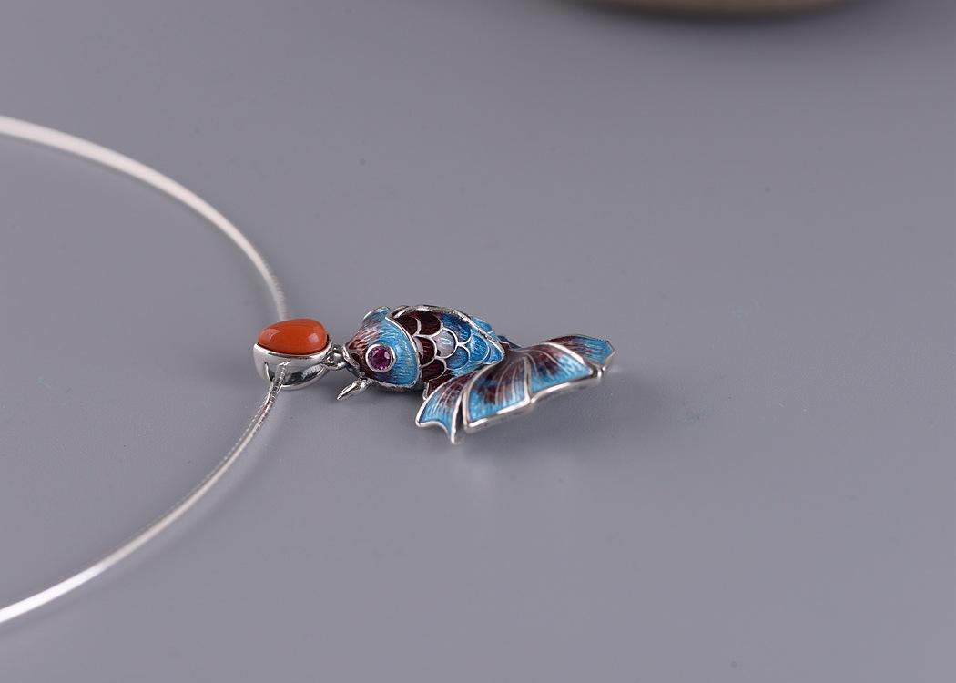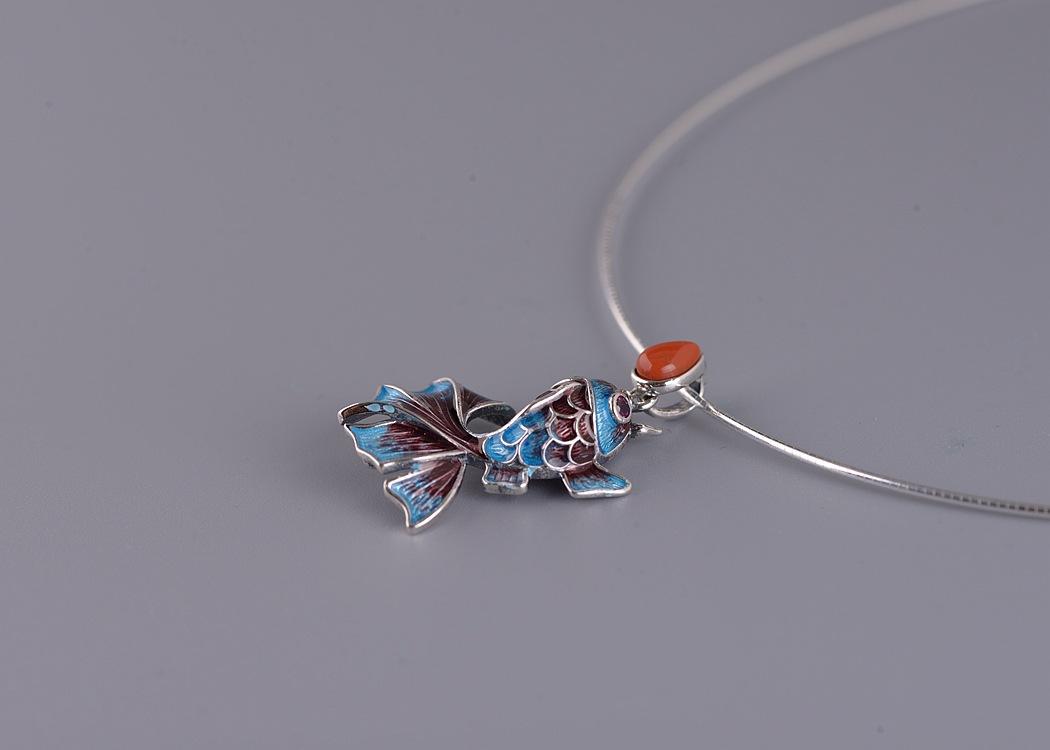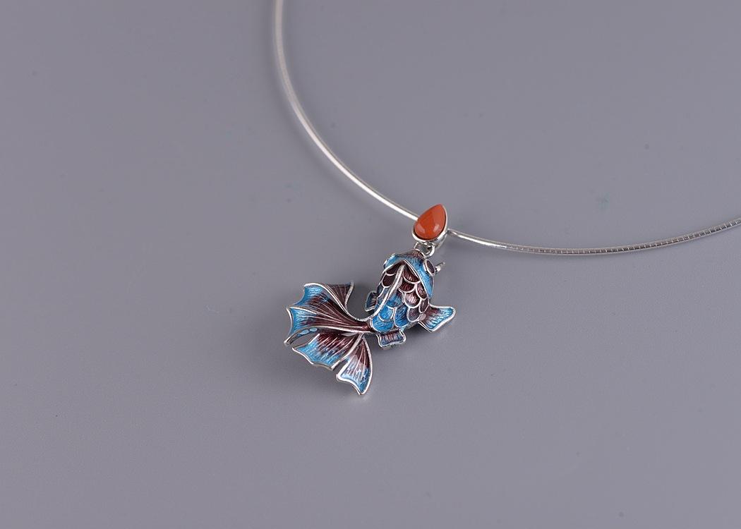 Colgante de pez koi azul quemado en plata S925 estilo retro para mujer, con temperamento de moda, joyería tailandesa de plata, venta al por mayor.