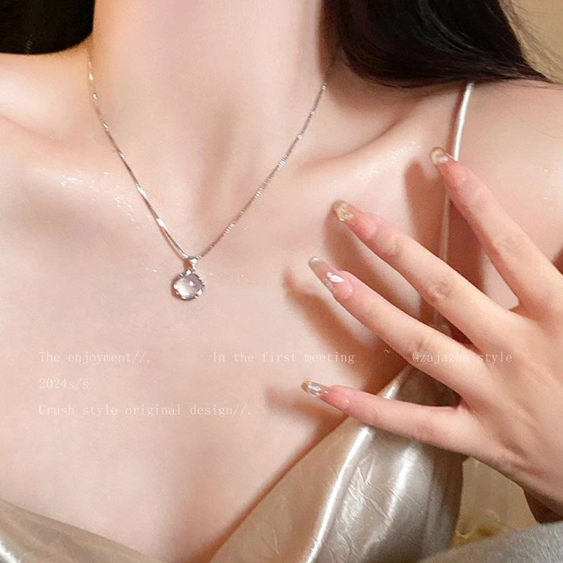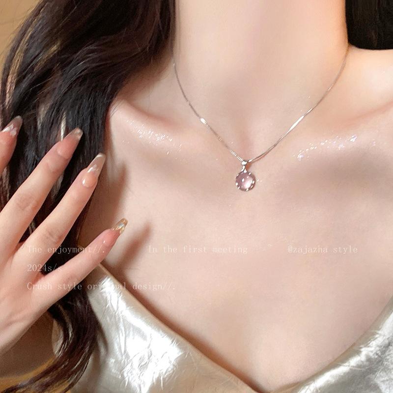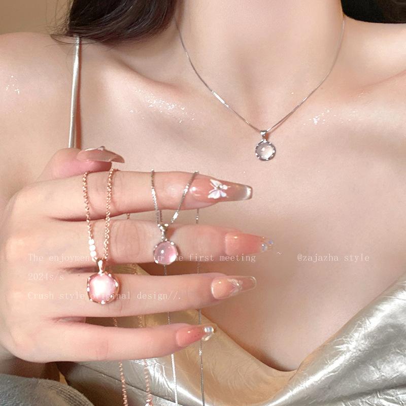 Collar de clavícula de círculo grande de piedra ojo de gato para mujer, collar súper hada dulce de alta gama, diseño nicho, accesorios de collar de lujo ligero