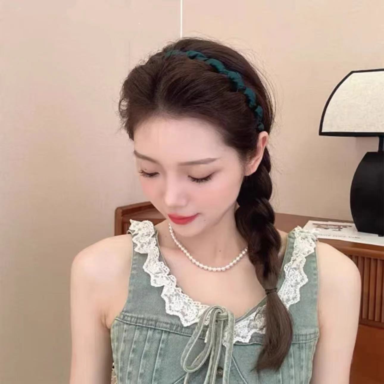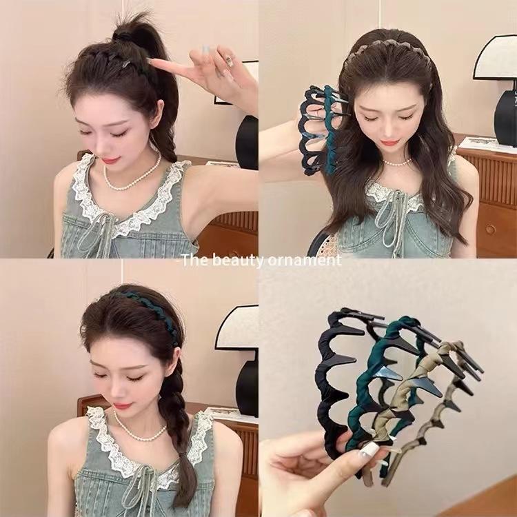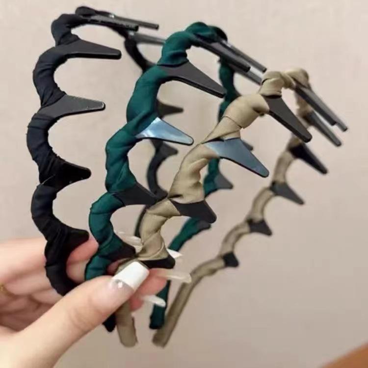 1 brown cloth wavy headband, 2 green wavy hairbands, 5 black wave headbands