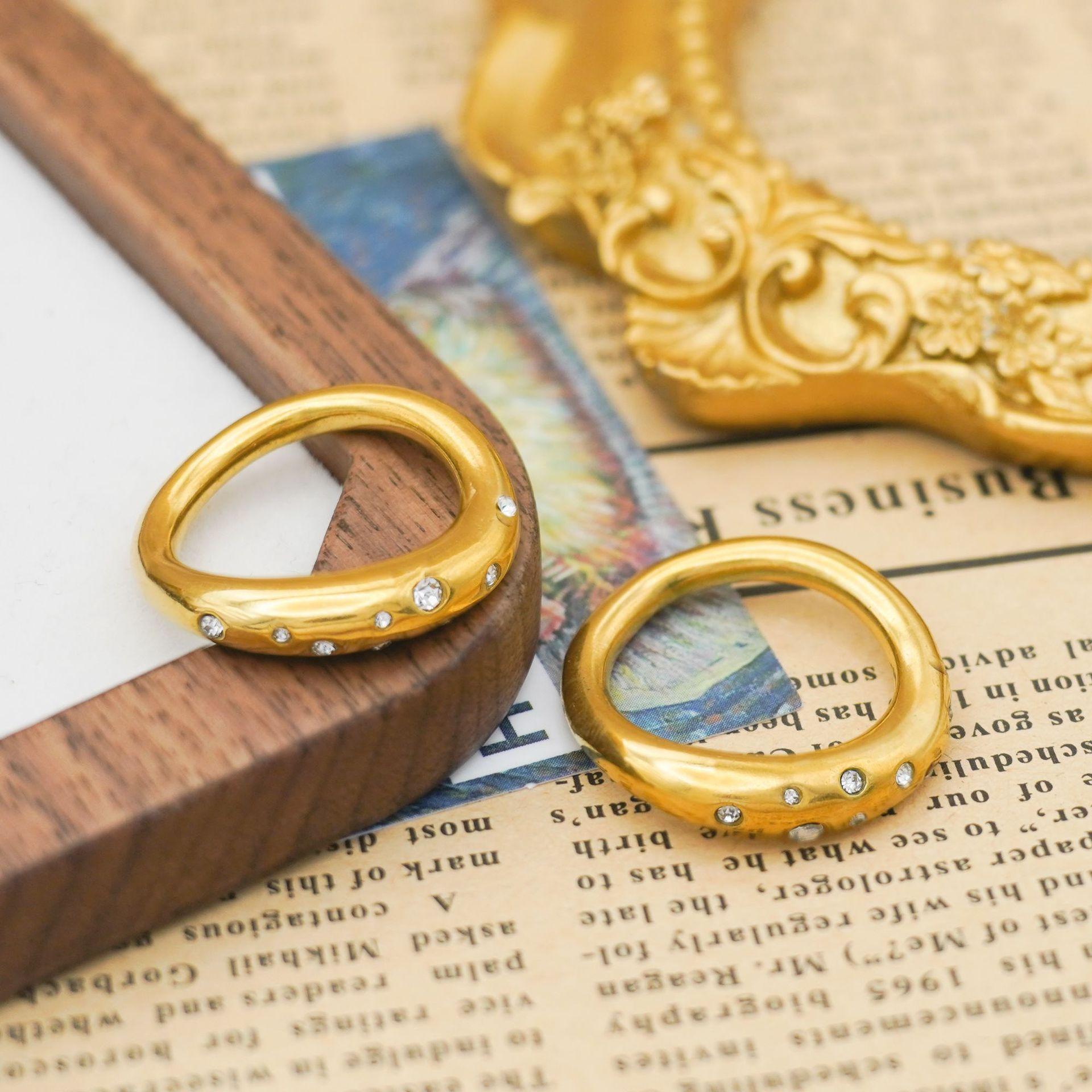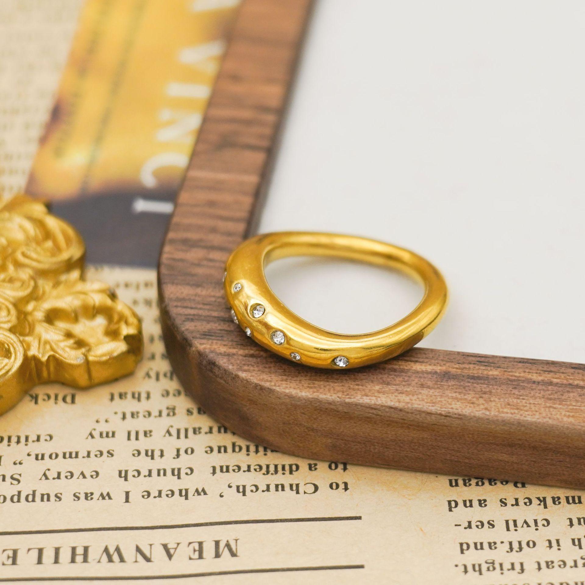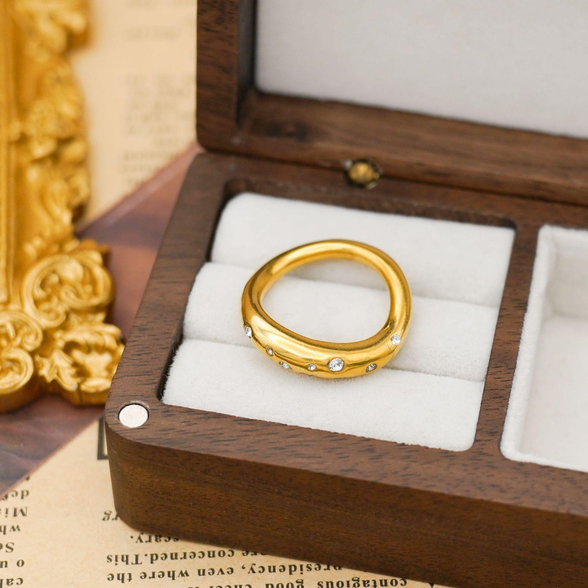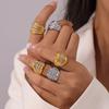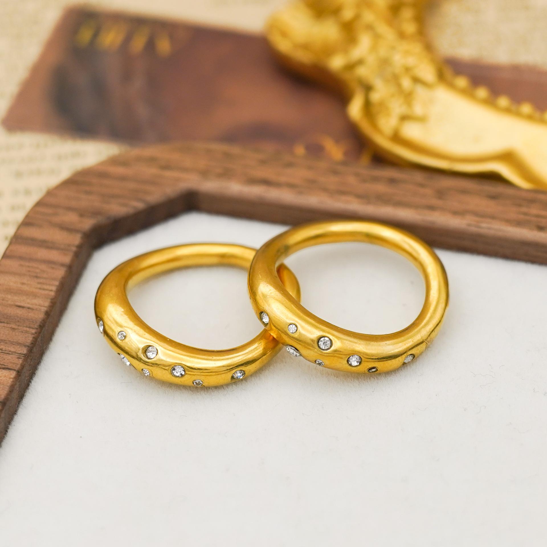 Anillo de acero de titanio con incrustaciones de circonita, personalizado, con diseño de nicho transfronterizo europeo y americano, chapado en oro de 18 quilates, de lujo ligero y combinable.
