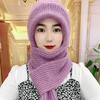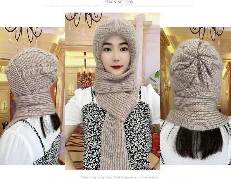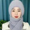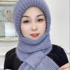Gorro de mujer nuevo con forro polar, bufanda gruesa, gorro de nieve integrado, gorro de punto cálido con hilo de pelusa de ardilla para otoño e invierno