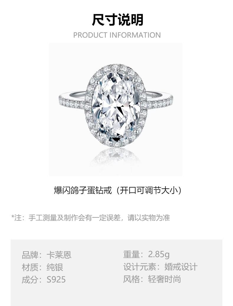 Anillo de plata de ley S925 con forma de huevo de paloma para mujer, con imitación de moissanita y diamantes, ligero, de lujo, con apertura ajustable y sensación avanzada.