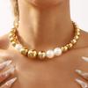 Collar con colgante de borla de cadena de cobre con costura de perlas de imitación, joyería transfronteriza de Europa y Estados Unidos, popular y creativa, para mujer, fotografía callejera
