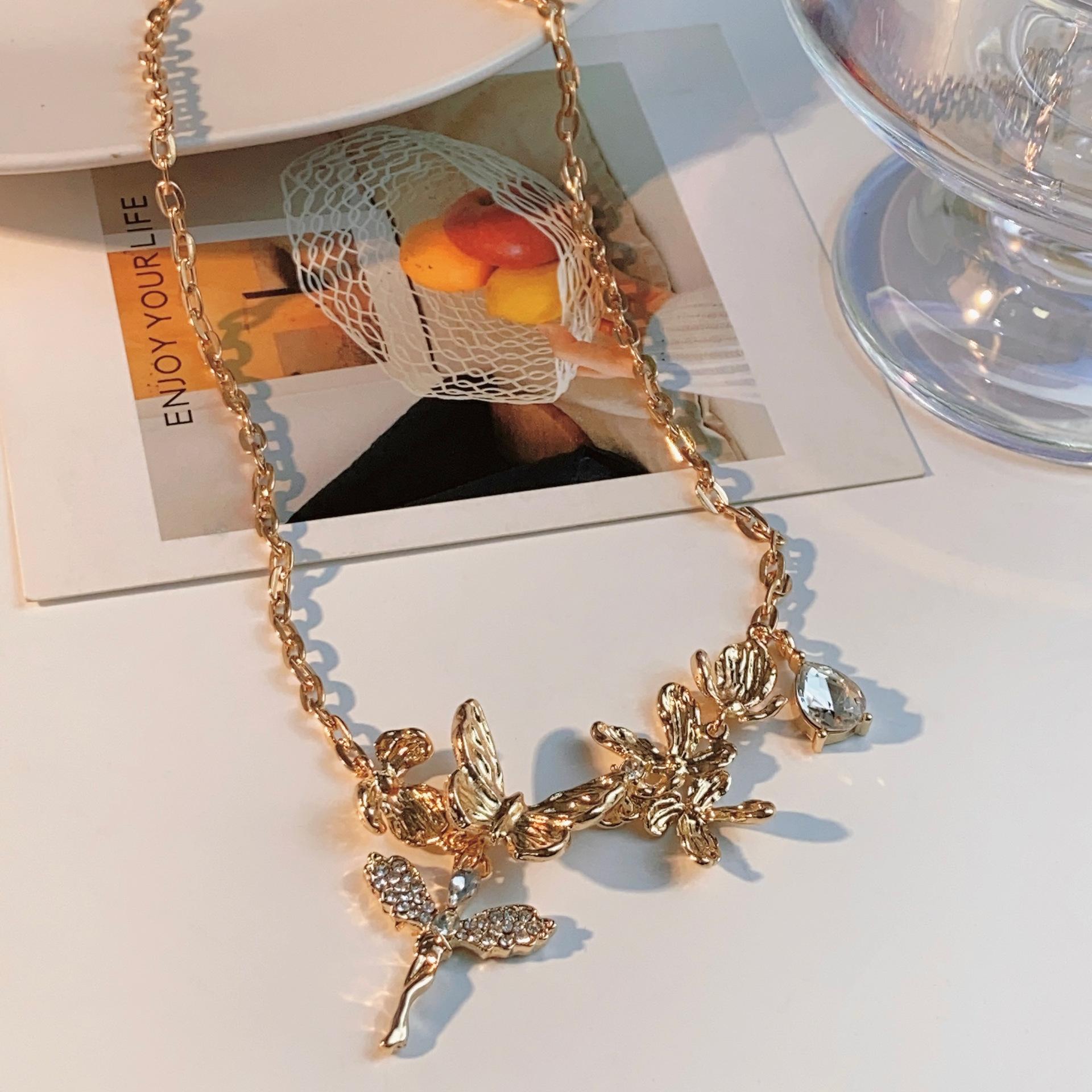 Collar romántico de flores y mariposas para mujer, de verano, de alta gama, nuevo estilo, estilo frío, combina con todo, diseño original de nicho.