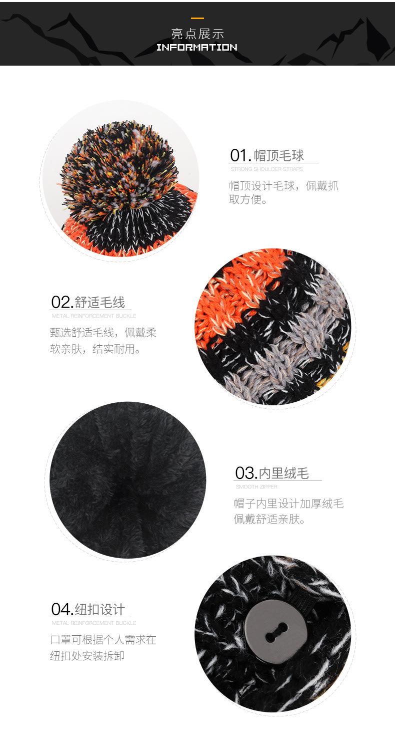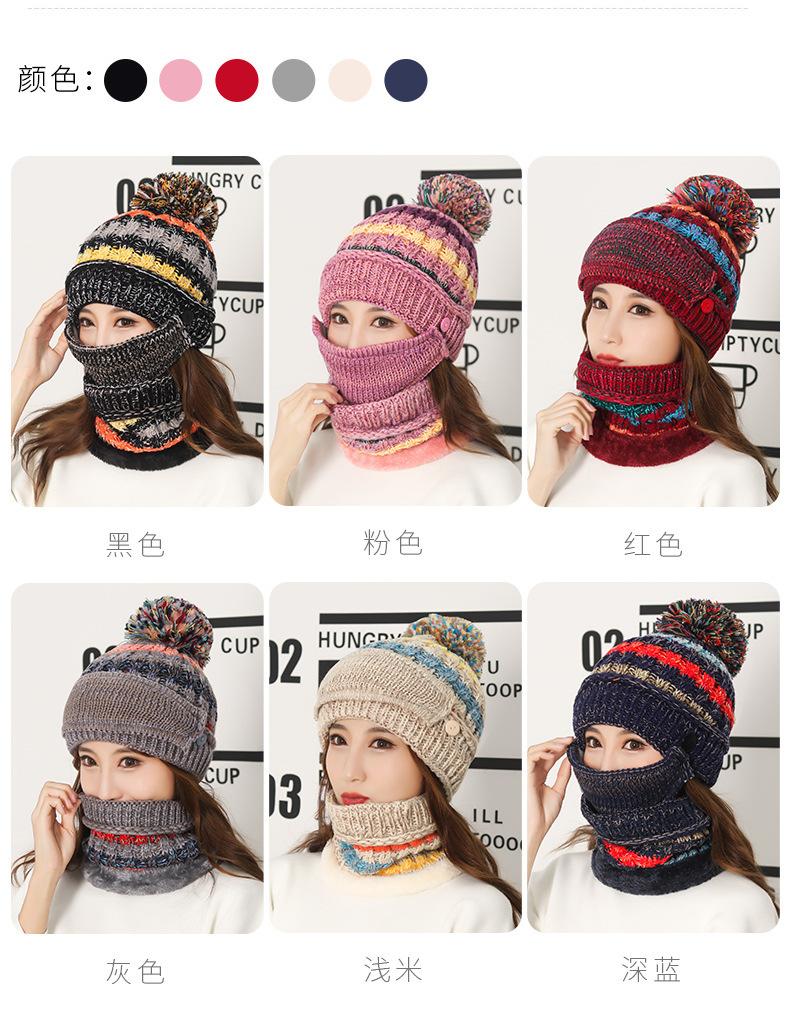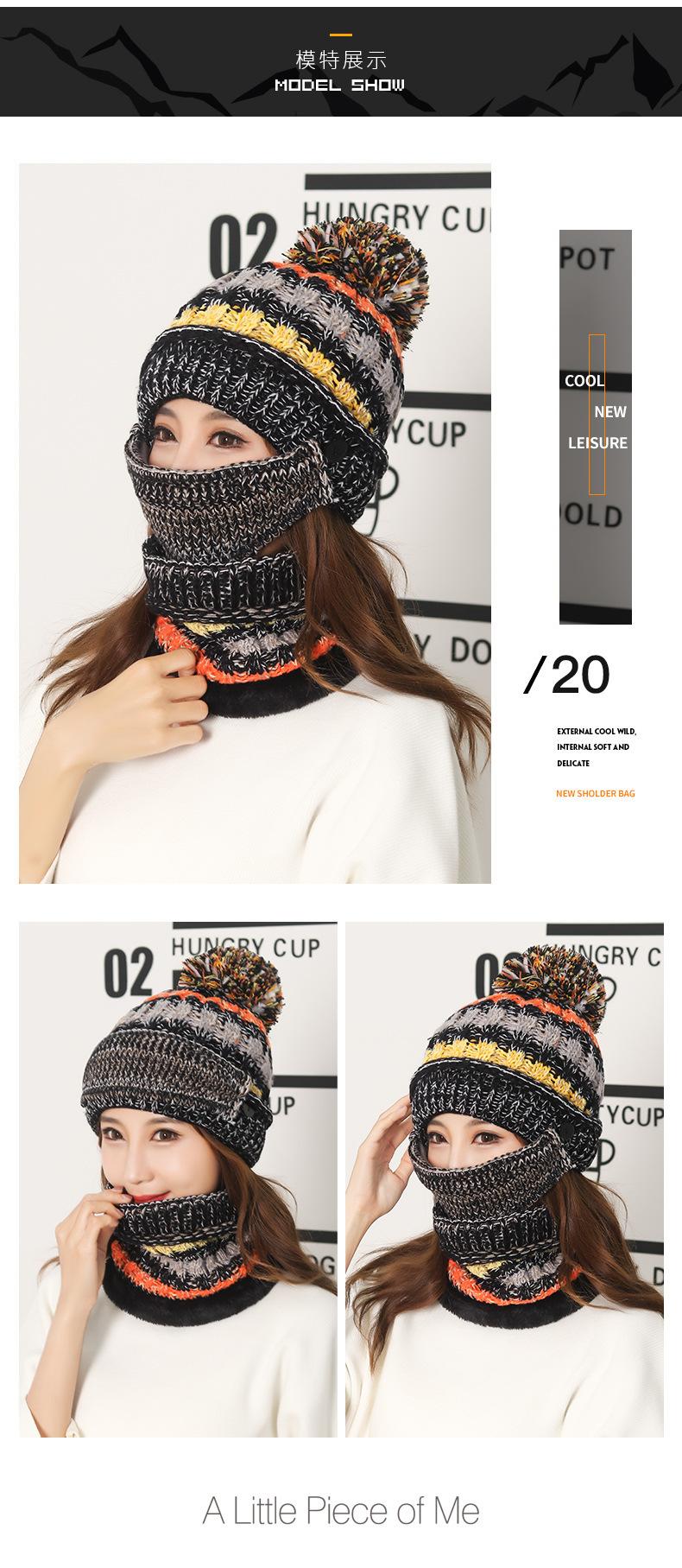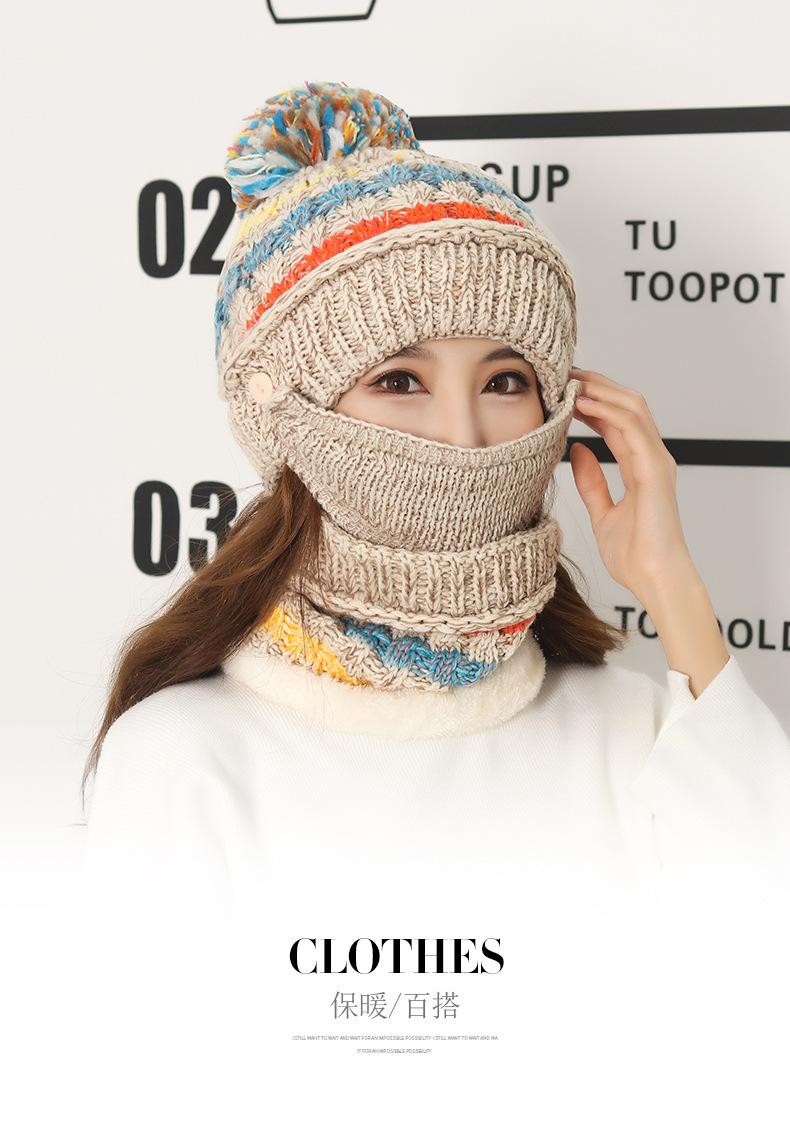 Gorro de Punto de Invierno con Forro Polar Bufanda Máscara Set de Tres Piezas para Montar a Prueba de Viento Protección Facial Protección para las Orejas Gorro de Lana Grueso
