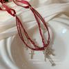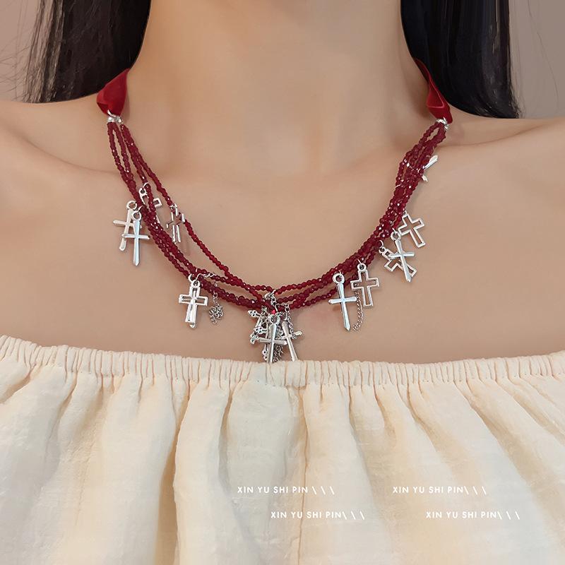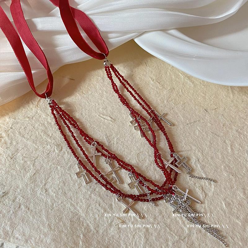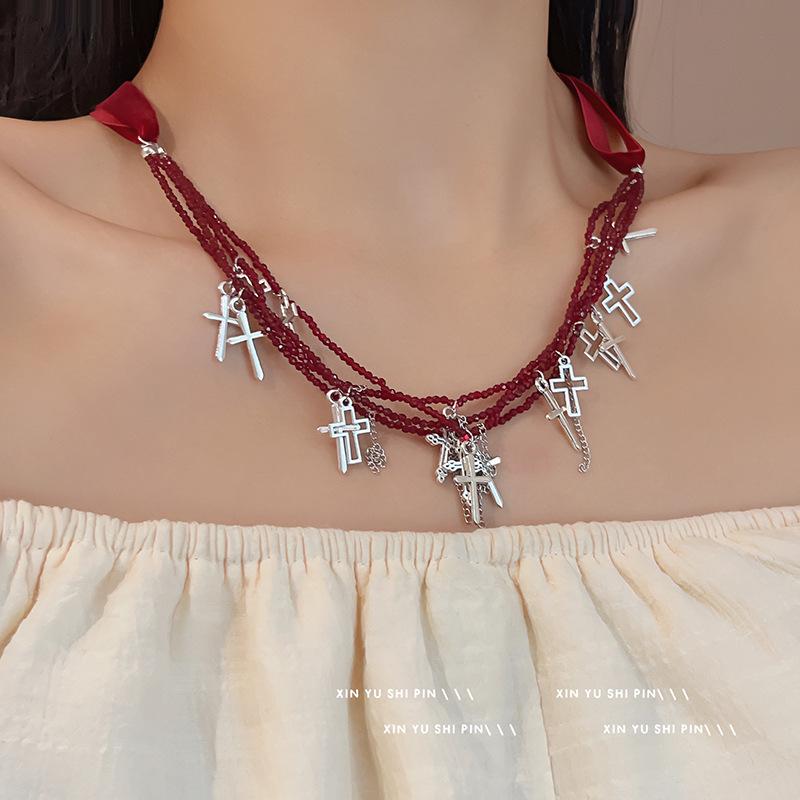 Collar con borlas cruzadas de metal y cuentas multicapa para mujer, novedad de 2024, cadena de especias dulce y fresca, cadena de cuello de verano