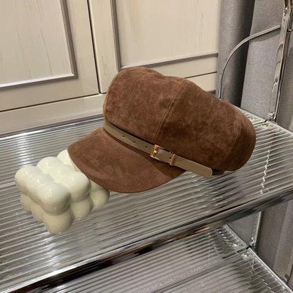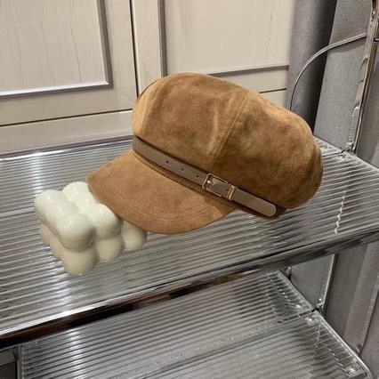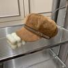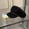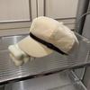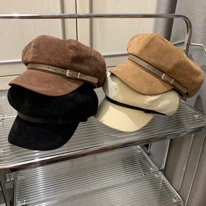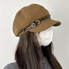 Sombrero octogonal casual retro japonés de otoño e invierno que combina con todo, con cinturón de hebilla pequeña para afinar el rostro, sombrero azul marino, boina de ante moderna