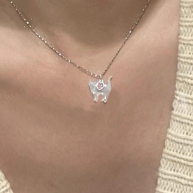 Collar con colgante de gato estilo Ins, nuevo y bonito, cadena exquisita para clavícula, cadena pequeña para mujer