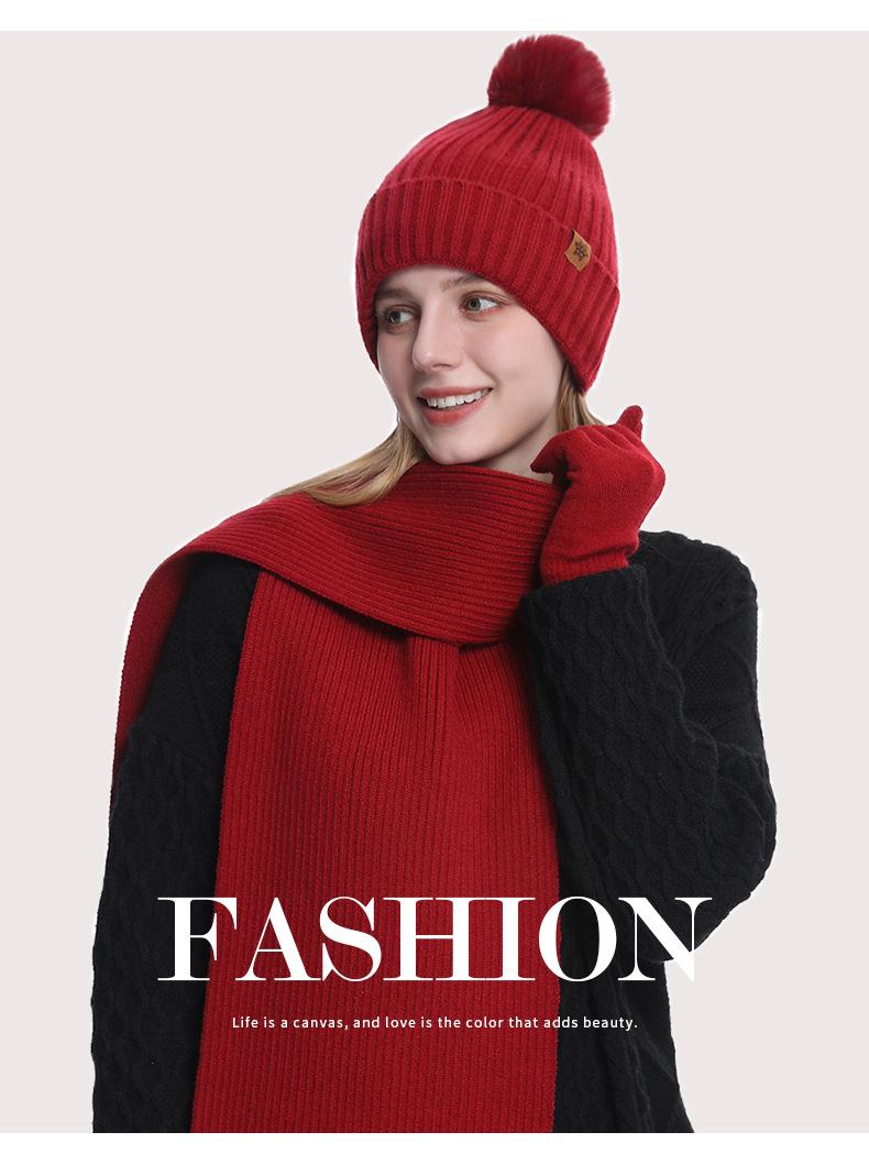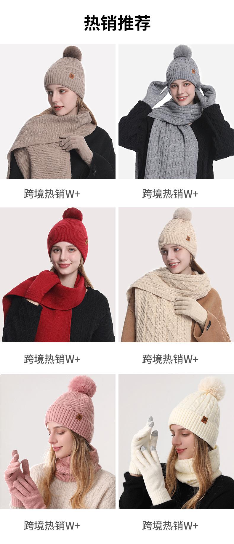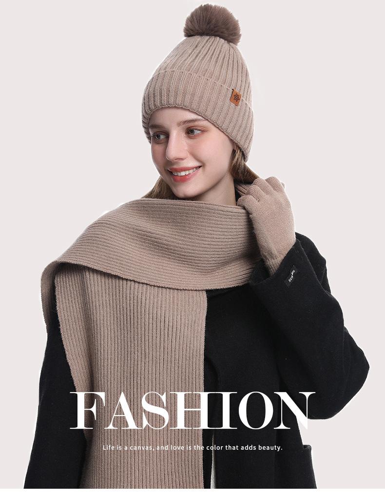 Gorro de punto para mujer, de invierno, de doble capa, con forro polar, grueso, con orejeras, gorro de punto de lana, bufanda, guantes, conjunto de tres piezas