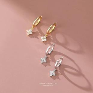 | Pendientes de plata de ley s925 con diseño de flor de cuatro hojas y diamantes, estilo coreano, sencillos y versátiles, venta al por mayor. ¥19.30 | ![]() |