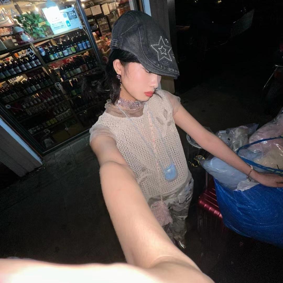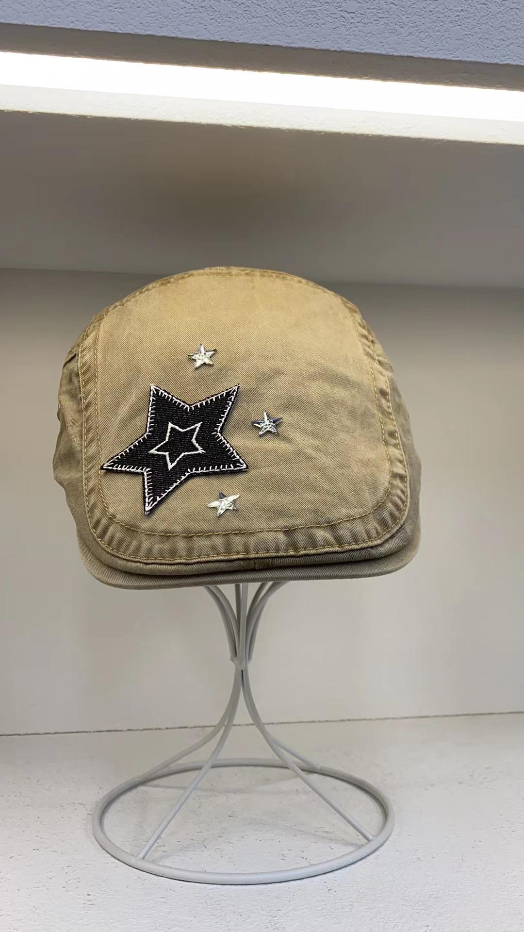 Boina de pintor estilo asiático Y2K 2YK con diseño de estrella de nicho, moderna, con cara visible, estilo vendedor de periódicos para mujer.