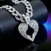 Fábrica de Accesorios de Alta Calidad Colgante de Corazón con Alas de Aleación Full Diamante Estilo Hip-Hop Transfronterizo Europeo y Americano Cadena Cubana