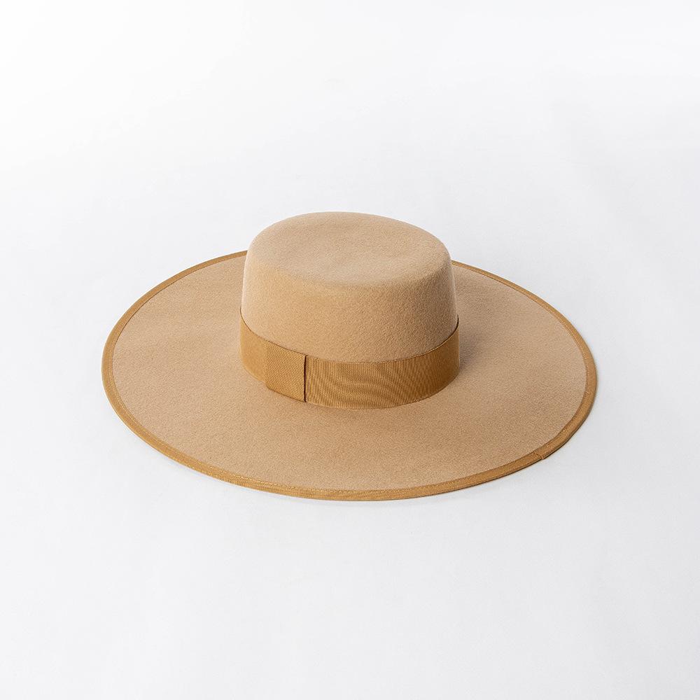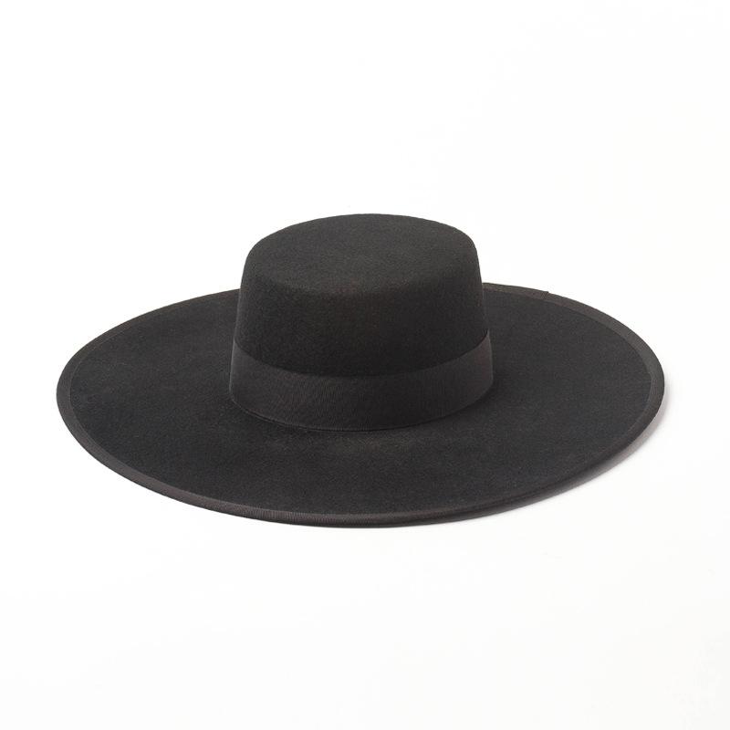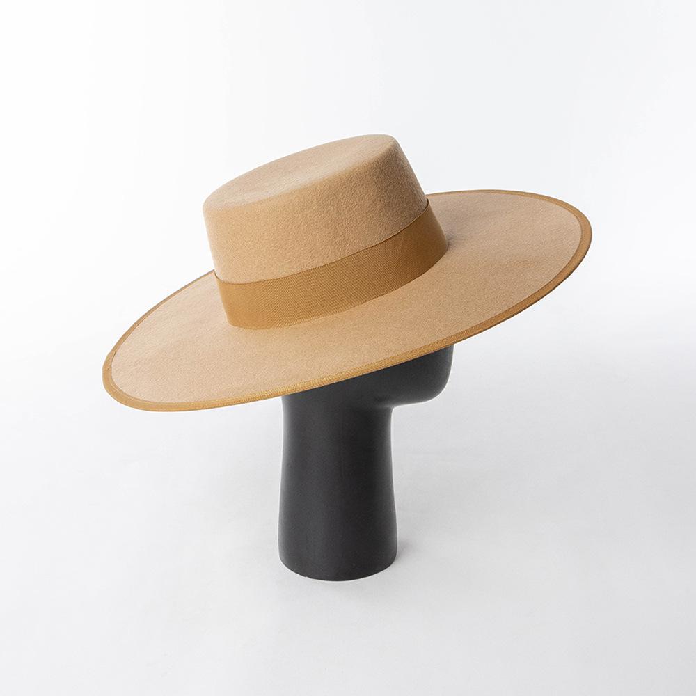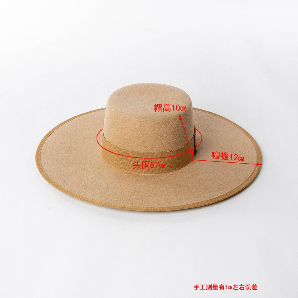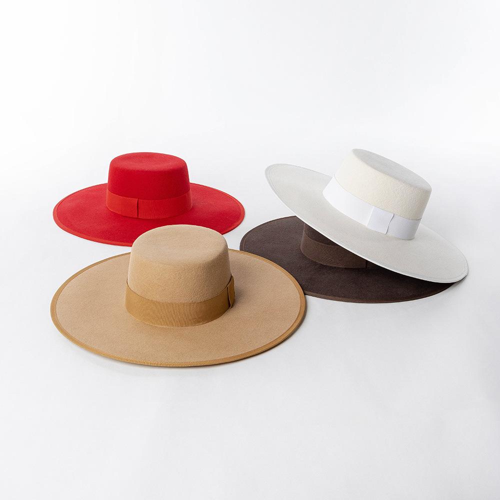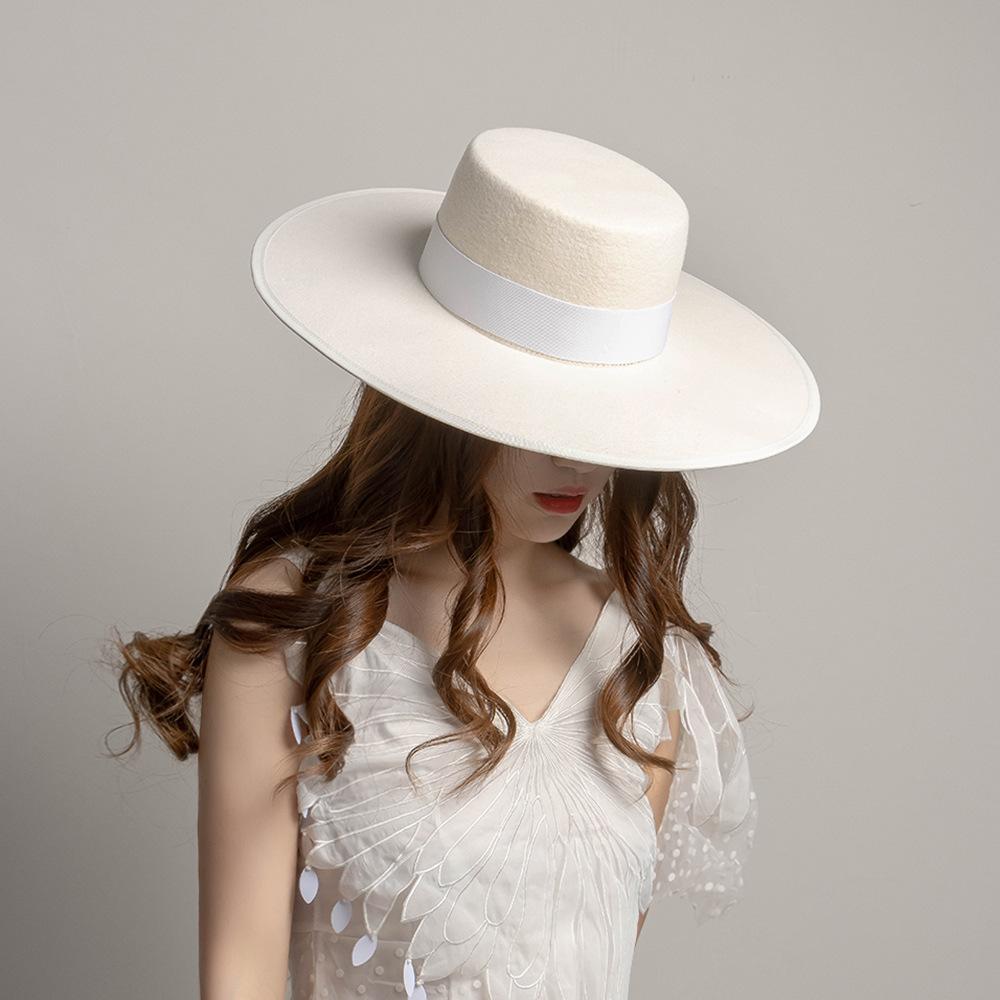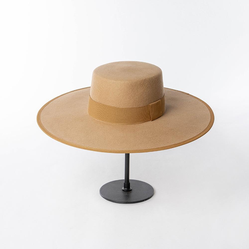 Otoño e Invierno Nuevo Sombrero de Lana de Ala Ancha para Adulto con Cinta de Borde y Copa Plana Elegante y a la Moda Estilo Sombrero de Copa de Fieltro de Lana
